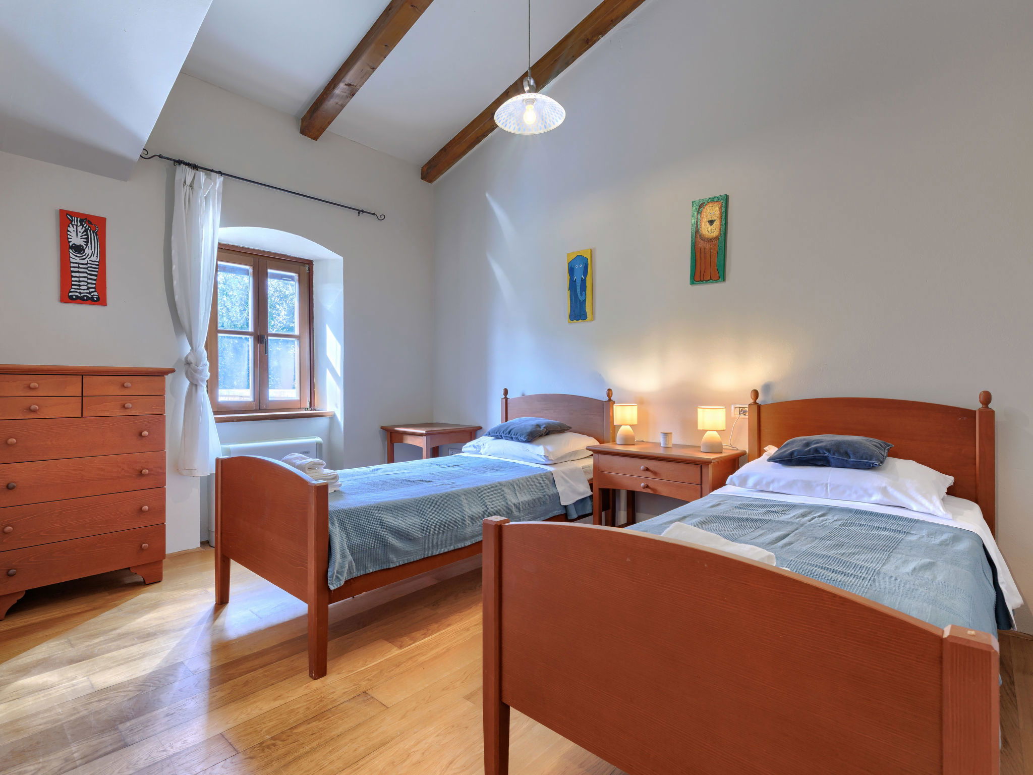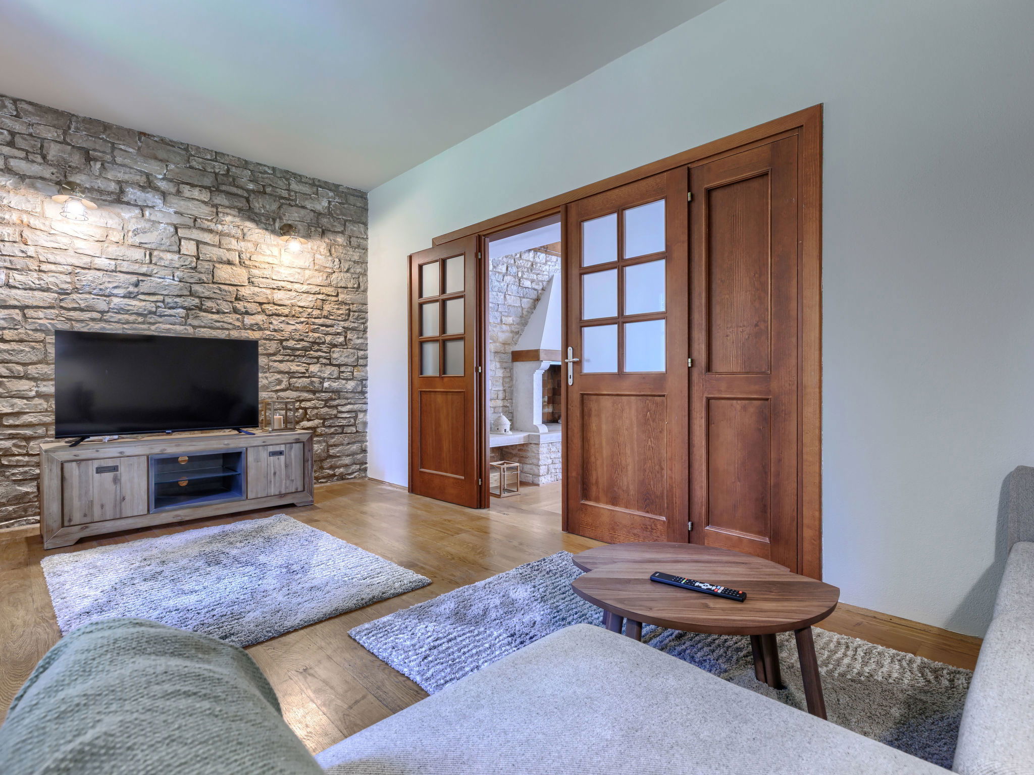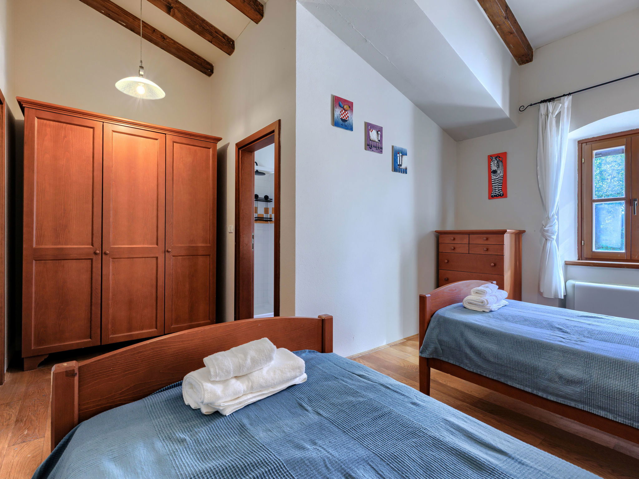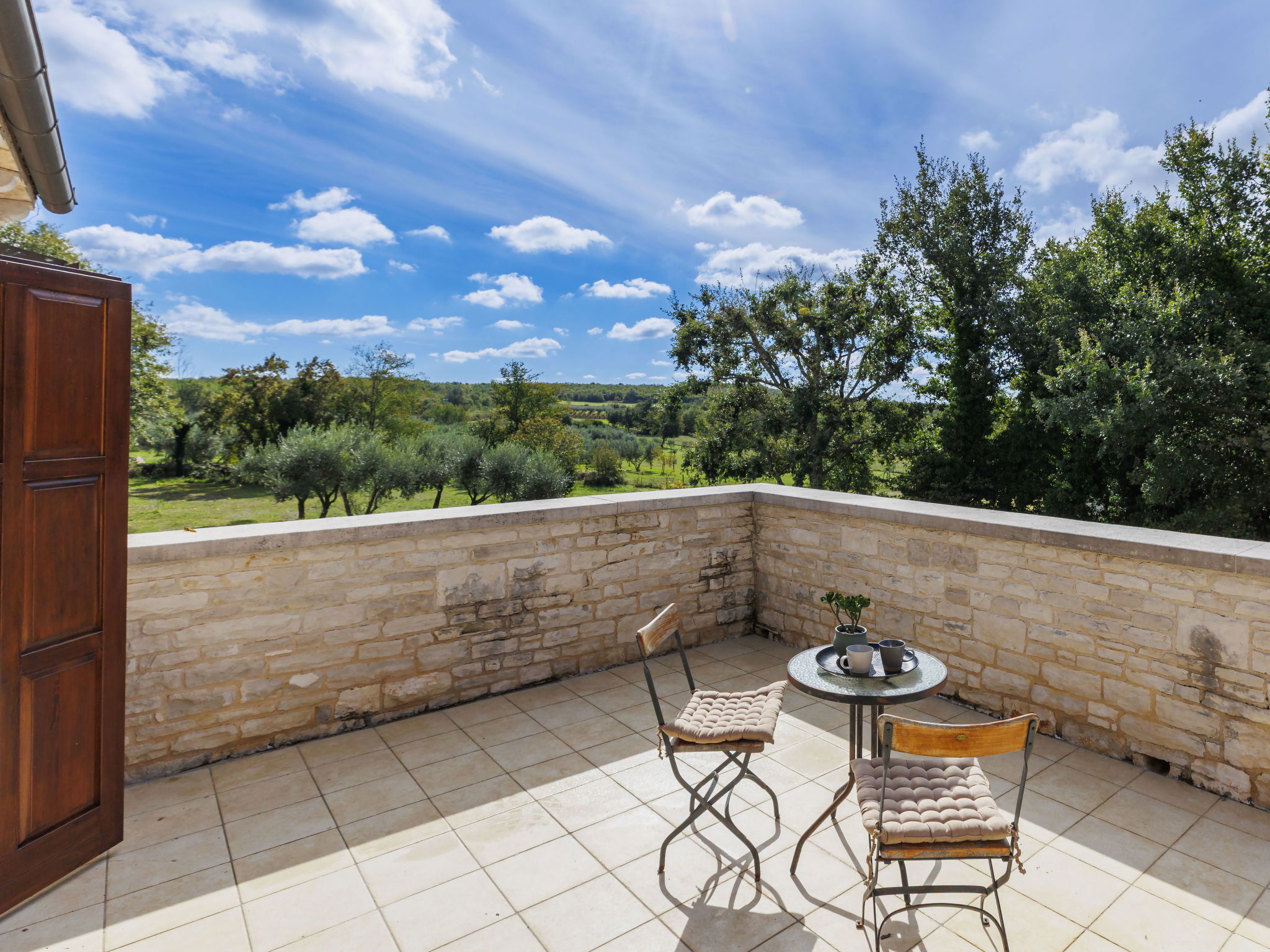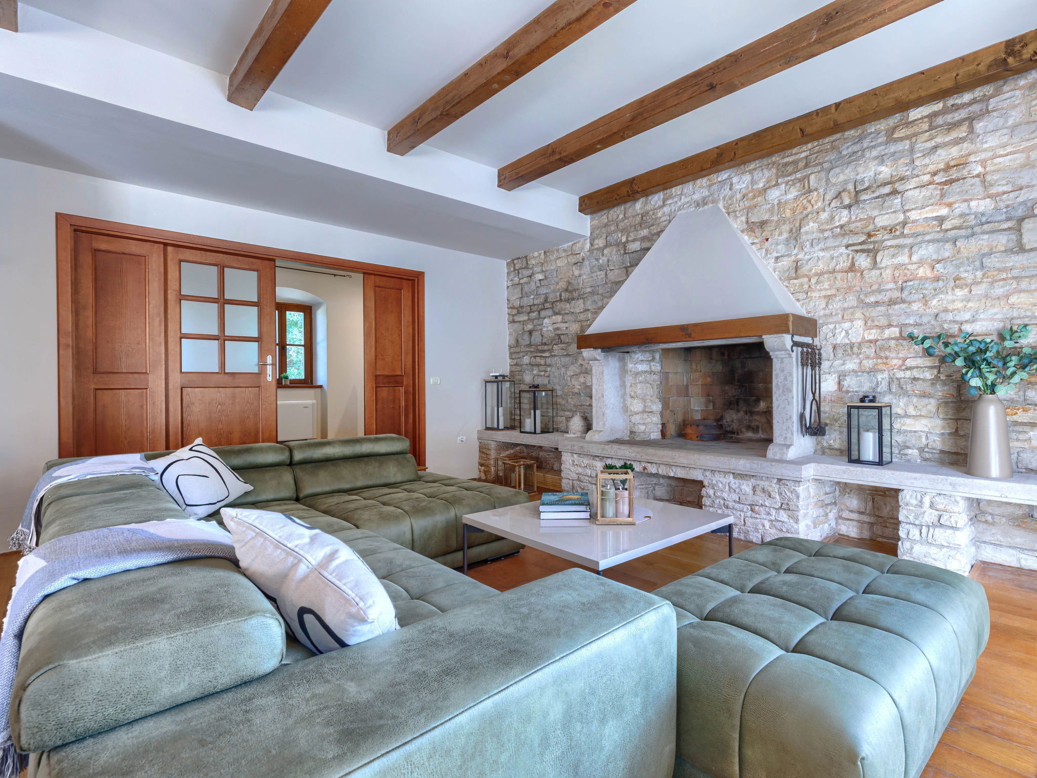 Beautiful villa "Nadua", 2 storeys. In the hamlet Košutići 5.5 km from the centre of Višnjan, in a quiet, sunny position, 15 km from the sea, in a cul-de-sac, in the countryside. Private: property 3'000 m2 with lawn and wildlife garden, swimming pool angular, heated (15 x 4 m, depth 140 - 160 cm, seasonal availability: 01.May. - 30.Sep.) with internal staircase. Outdoor shower, patio, garden furniture, barbecue. In the house: internet access, billiard table, washing machine. Parking (for 4 cars) at the house on the premises. Shop 5.5 km, supermarket 16 km, restaurant 2.5 km, bus stop 5.5 km. Walking paths from the house 50 m, cycle lane 100 m. Nearby attractions: Winery 4 km. Please note: airfield 60 km from the property. Paddling pool (5 m2, depth 40 cm, 01.05.-30.09.).