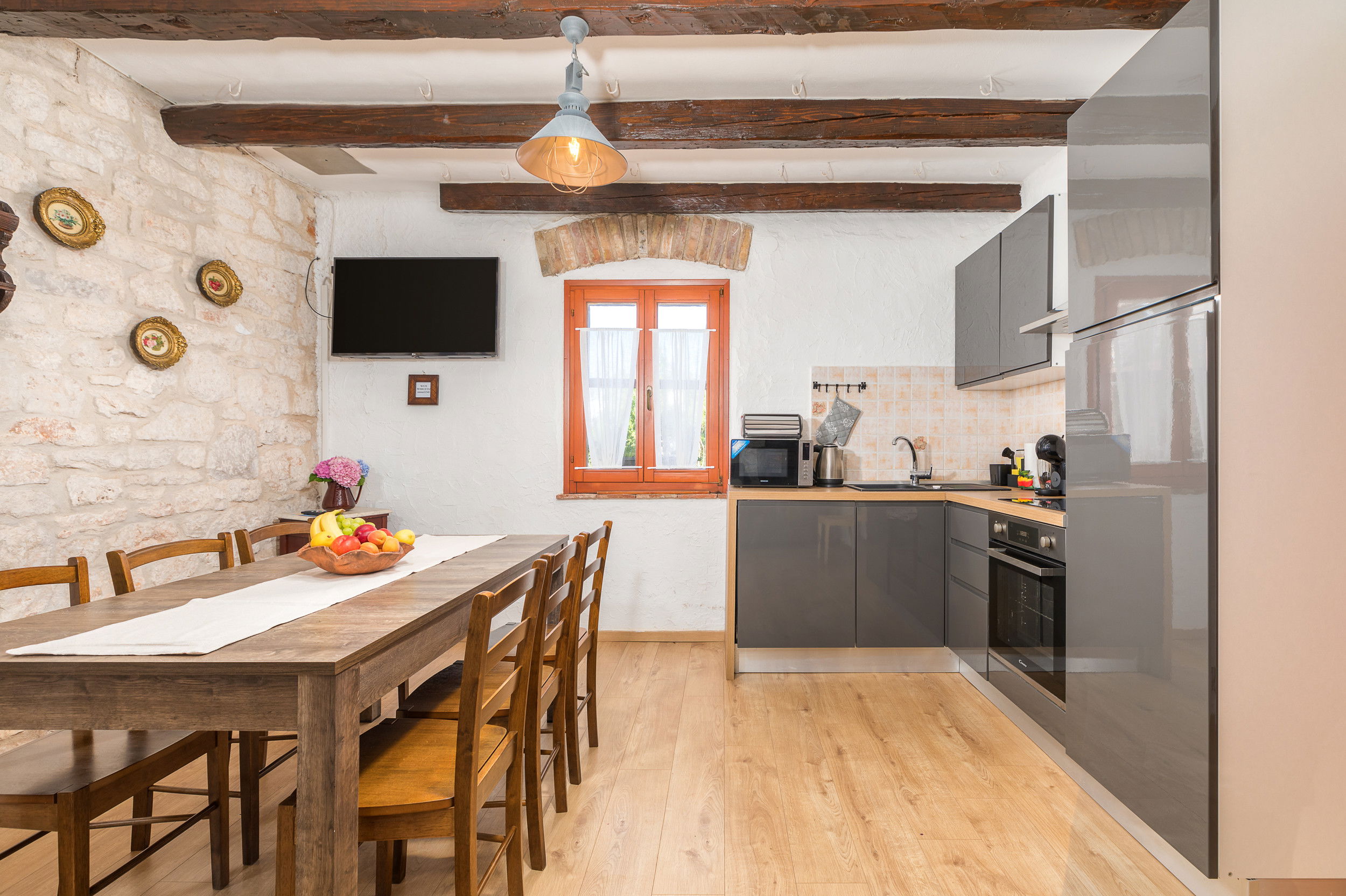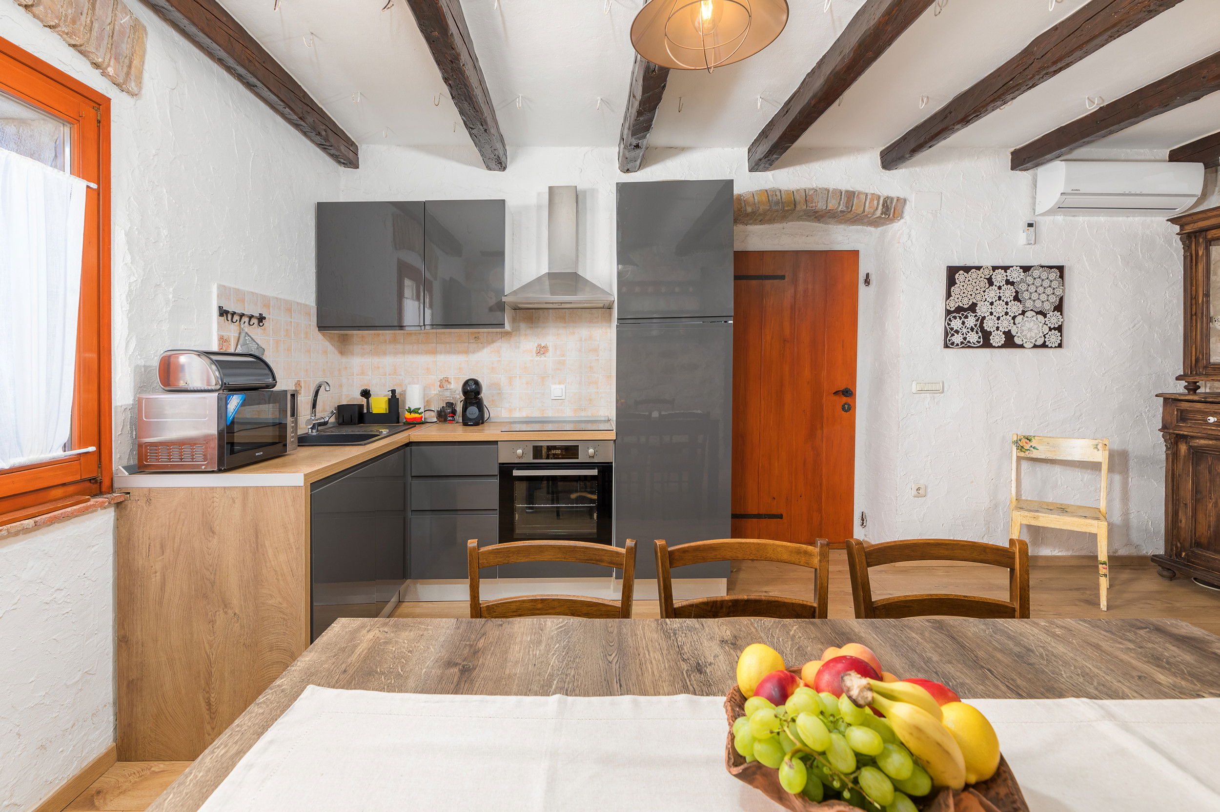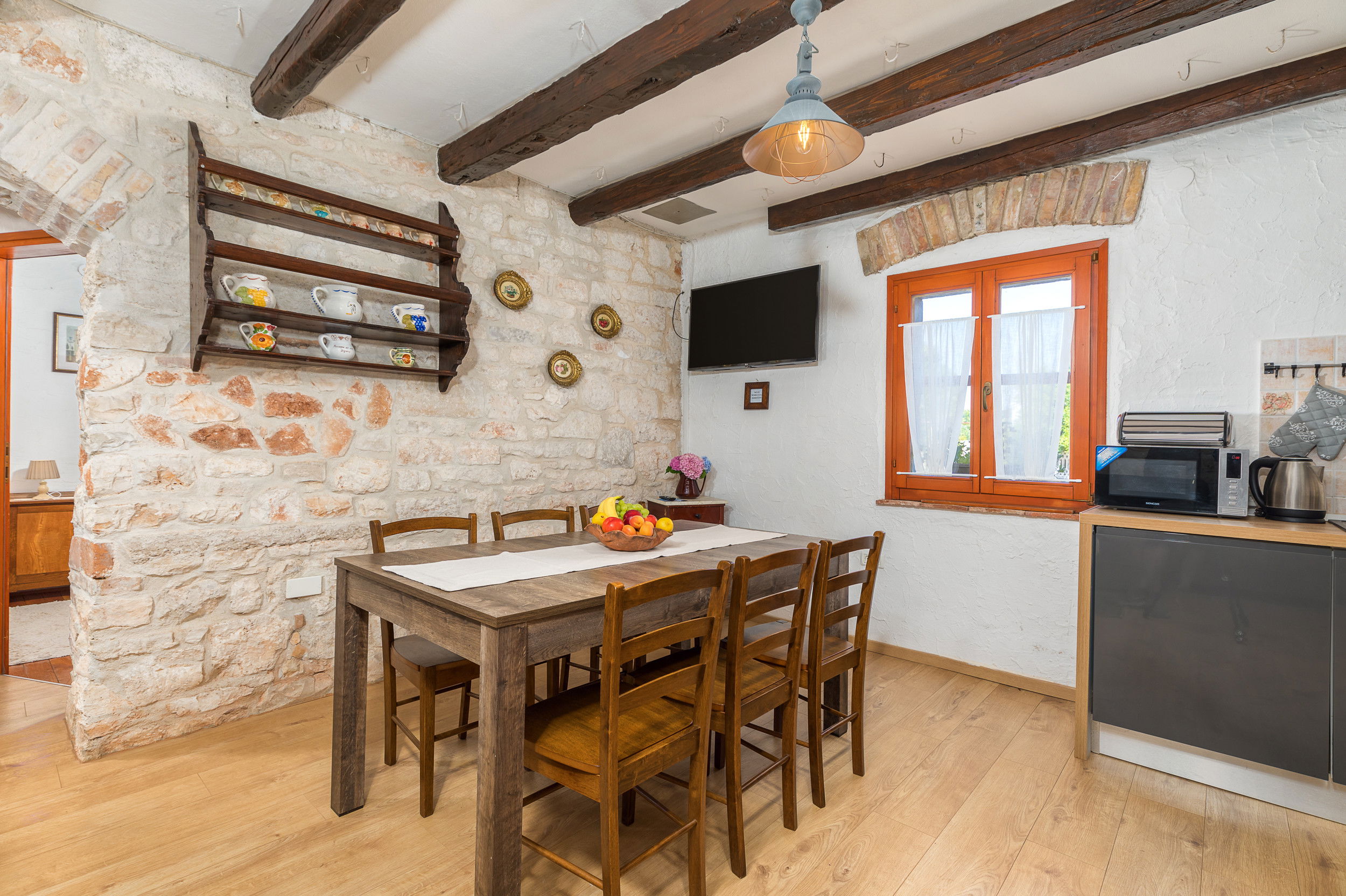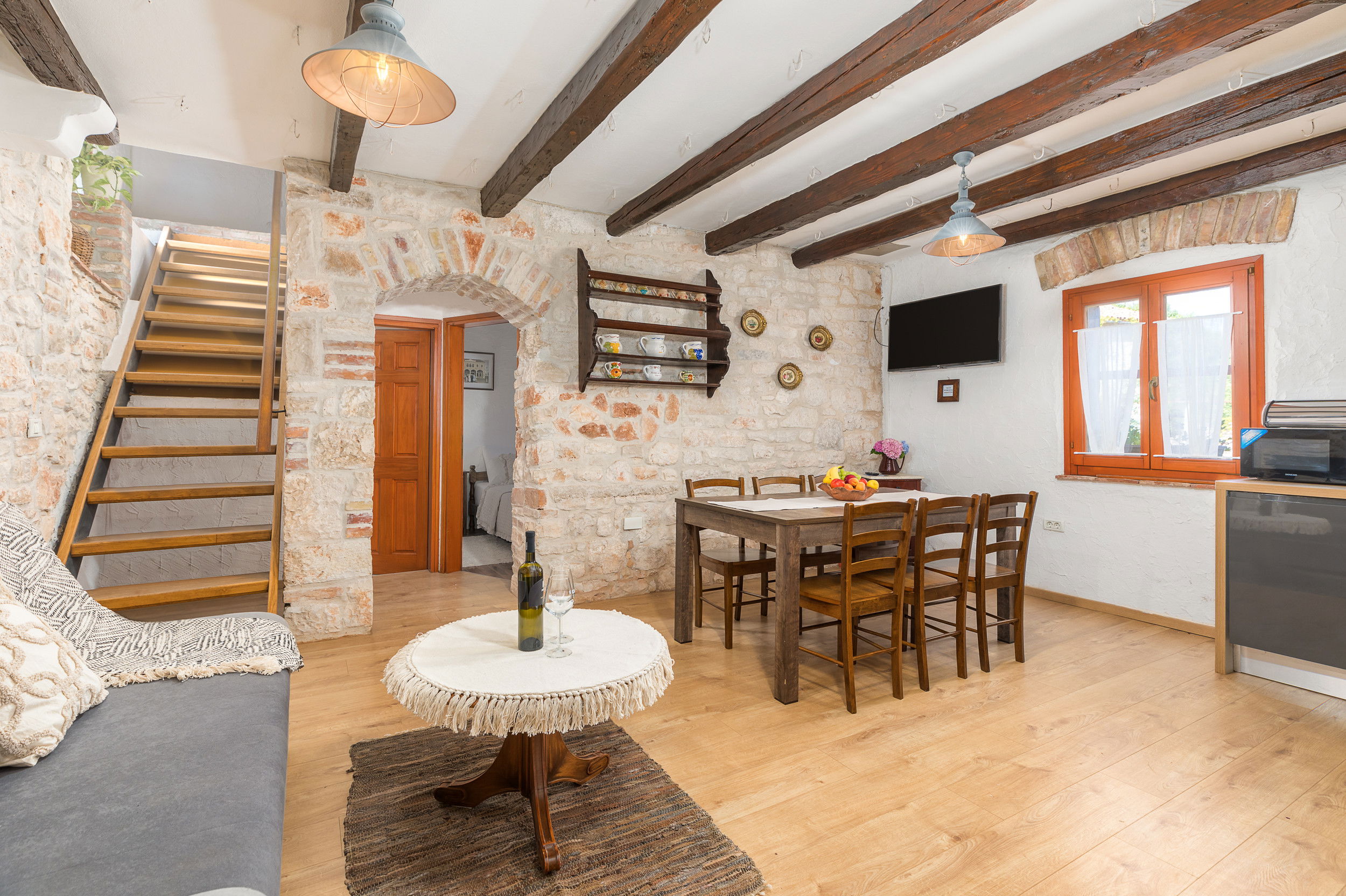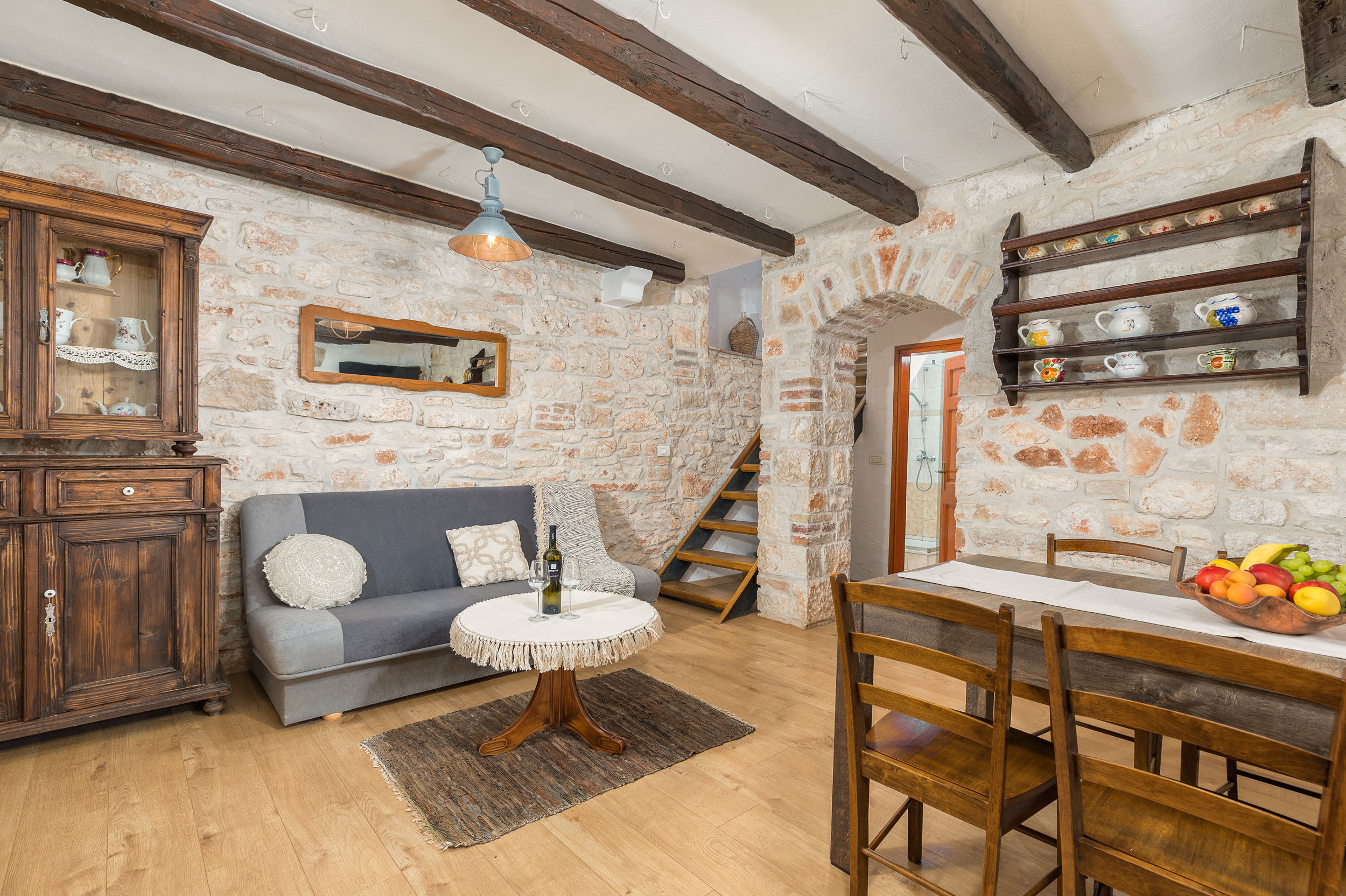 The traditional stone structure of the house offers natural insulation, keeping the interior pleasantly cool even during the hottest summer days.