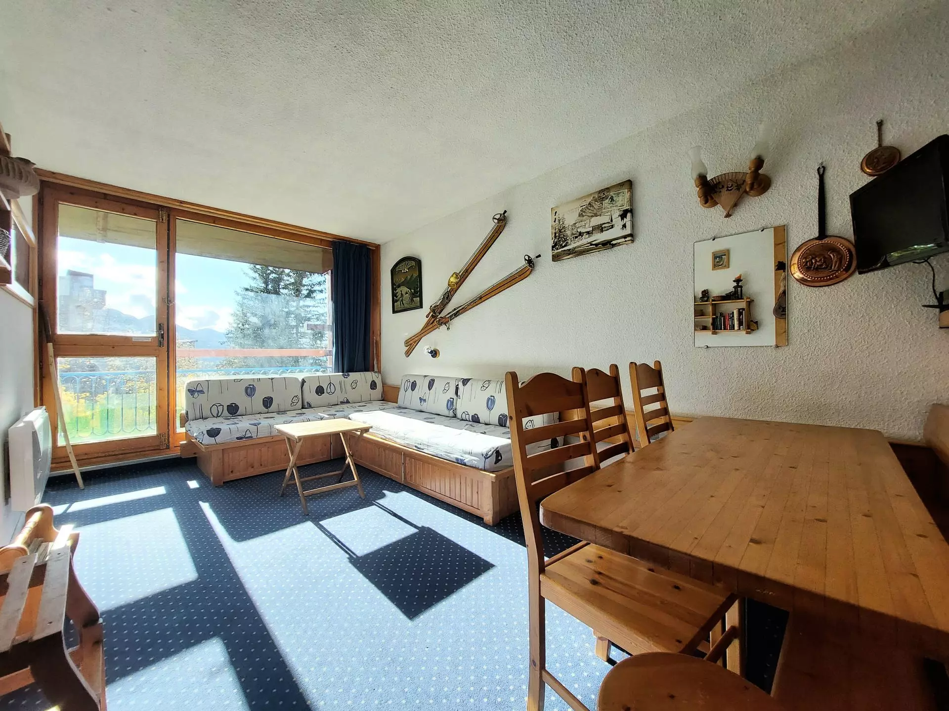 Living room equipped with 2 80cm sofa beds and TV