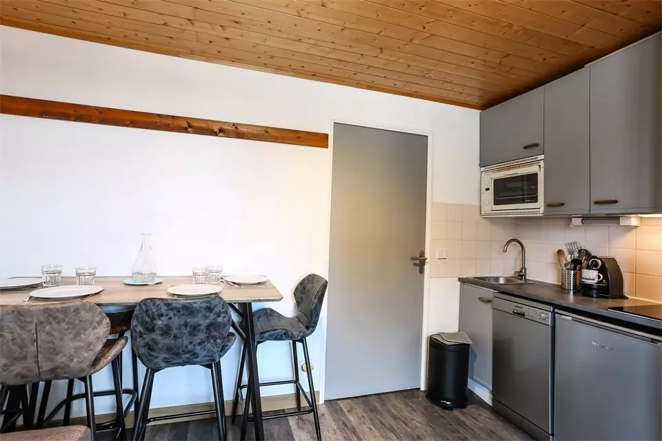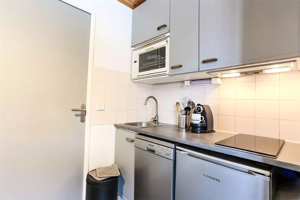 - Equipped kitchenette for 5 people with 2 induction hobs, dishwasher, oven, microwave, refrigerator, coffee maker, Nespresso coffee maker, toaster, kettle.