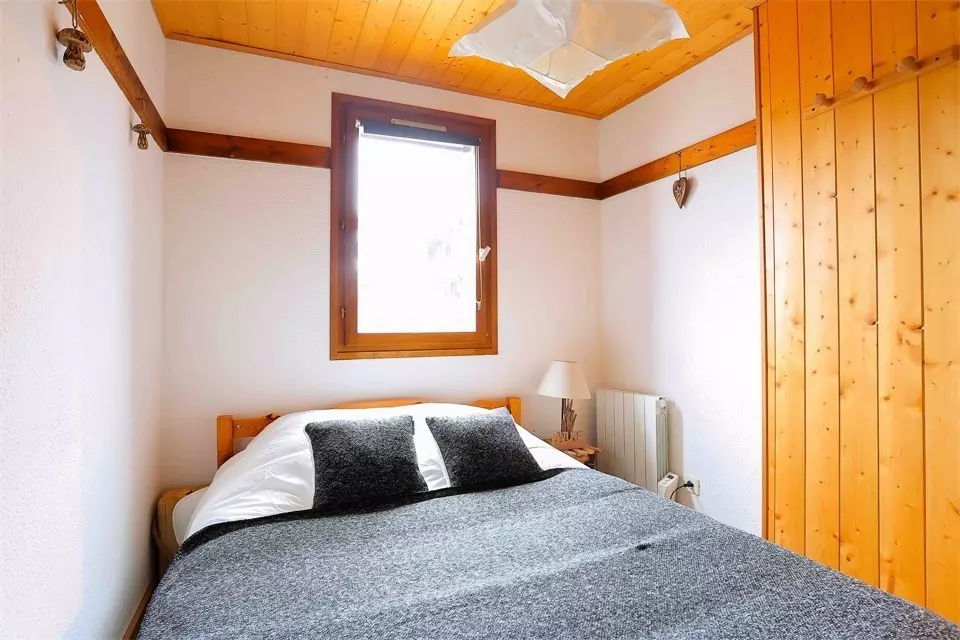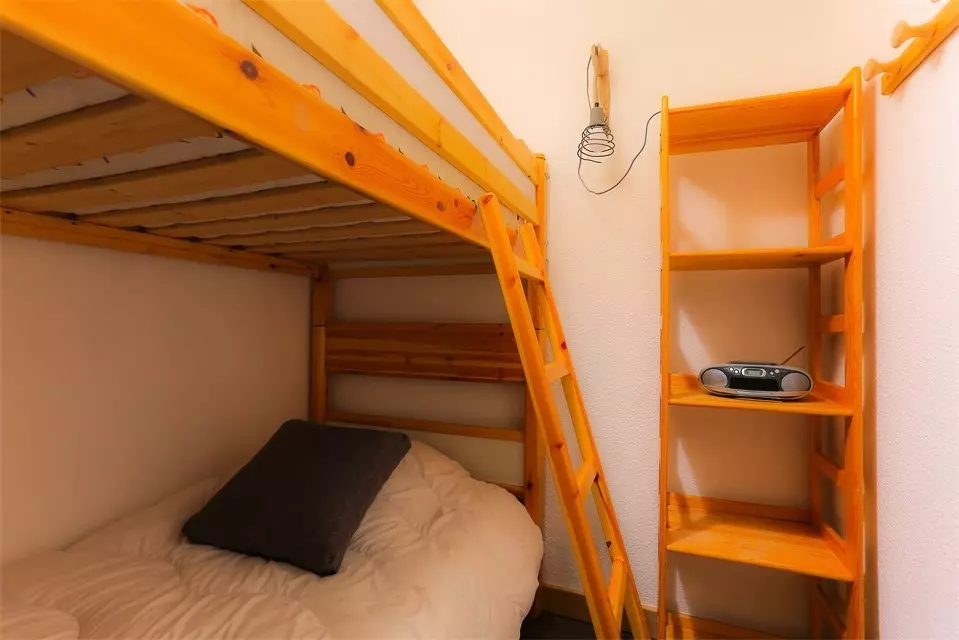 - A bedroom with 1 double bed and a cabin with bunk beds. Equipped with duvets and pillows.