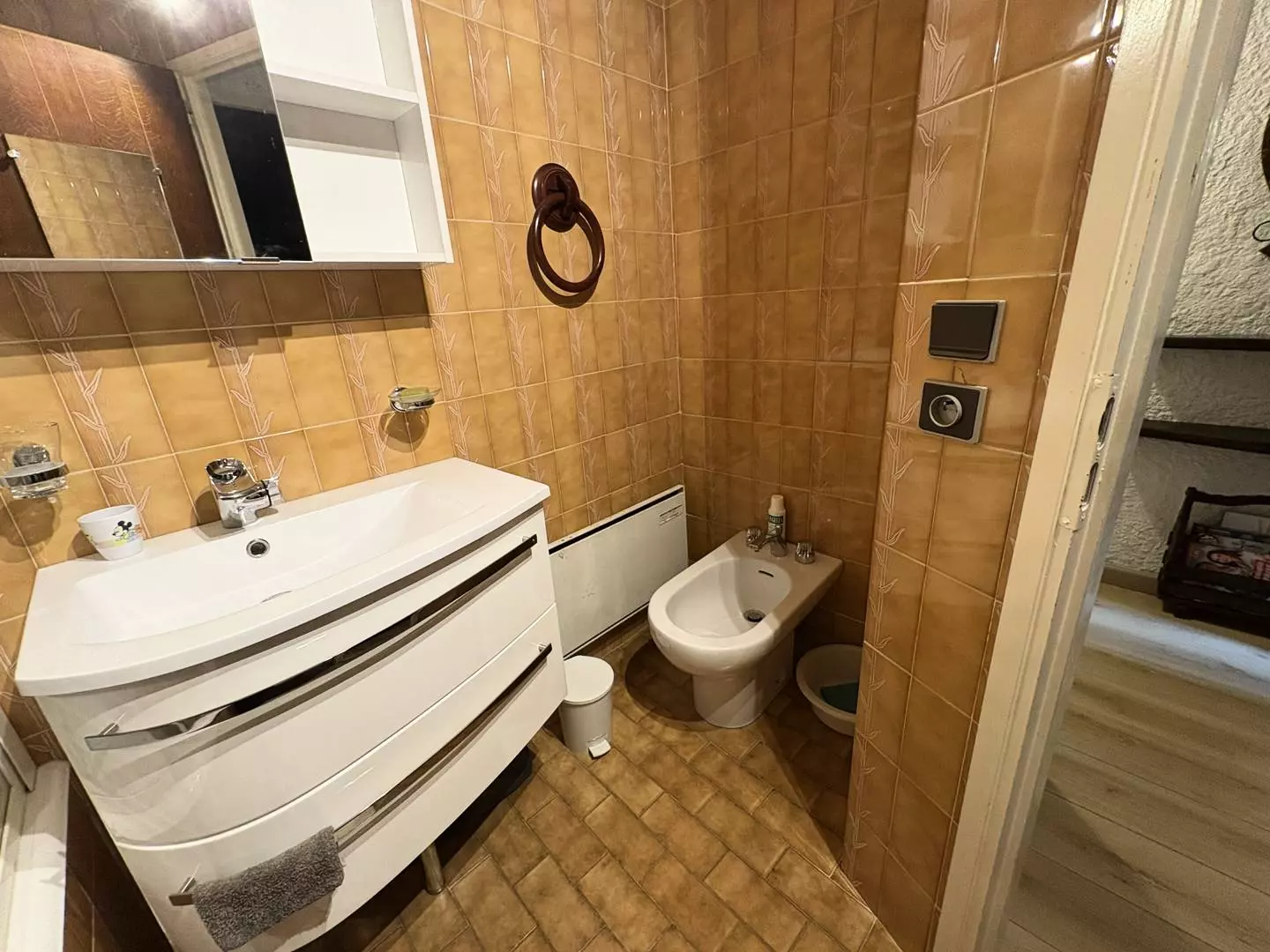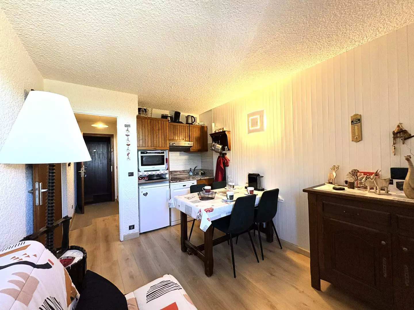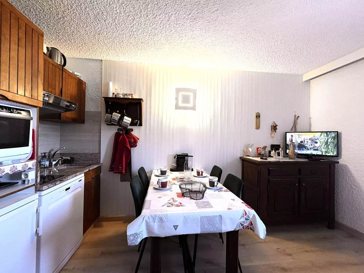 The open kitchenette is functional and well-equipped: 2 ceramic hobs, combined microwave oven, dishwasher and refrigerator with small freezer compartment.