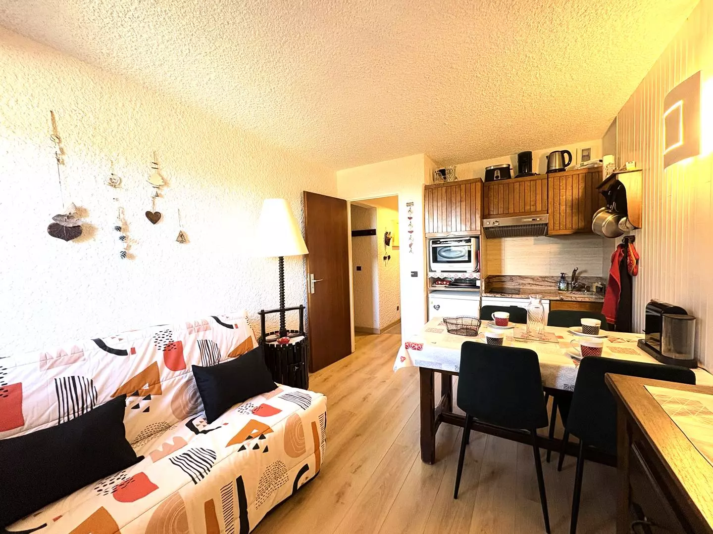 It consists of a living room equipped with a BZ sofa bed (140x180cm), a television, a dining table.