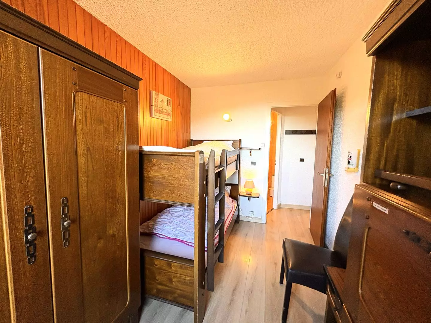 The bedroom has two bunk beds (80x180cm) and two large wardrobes for optimal storage. Access to the balcony is directly from the bedroom.
