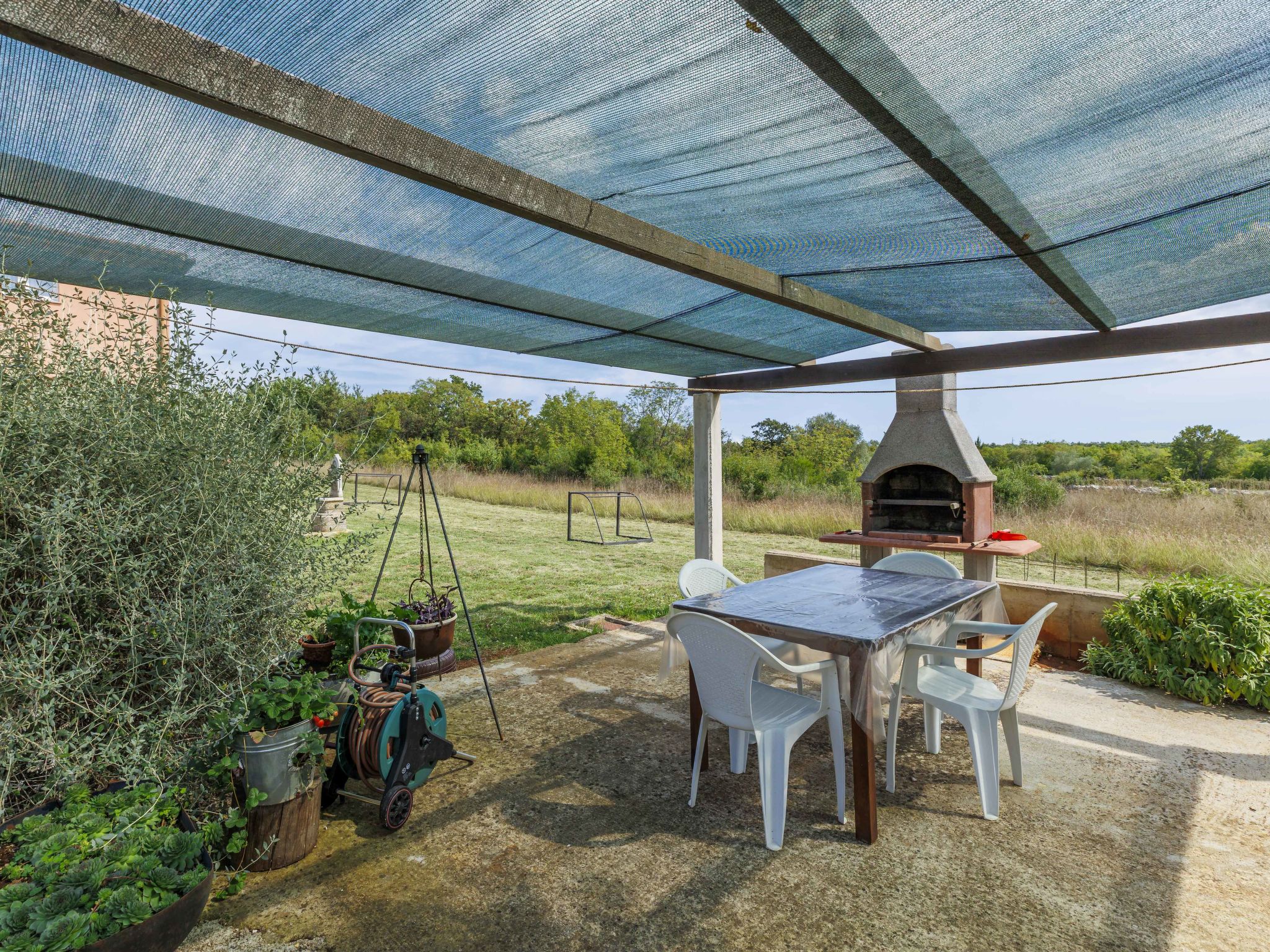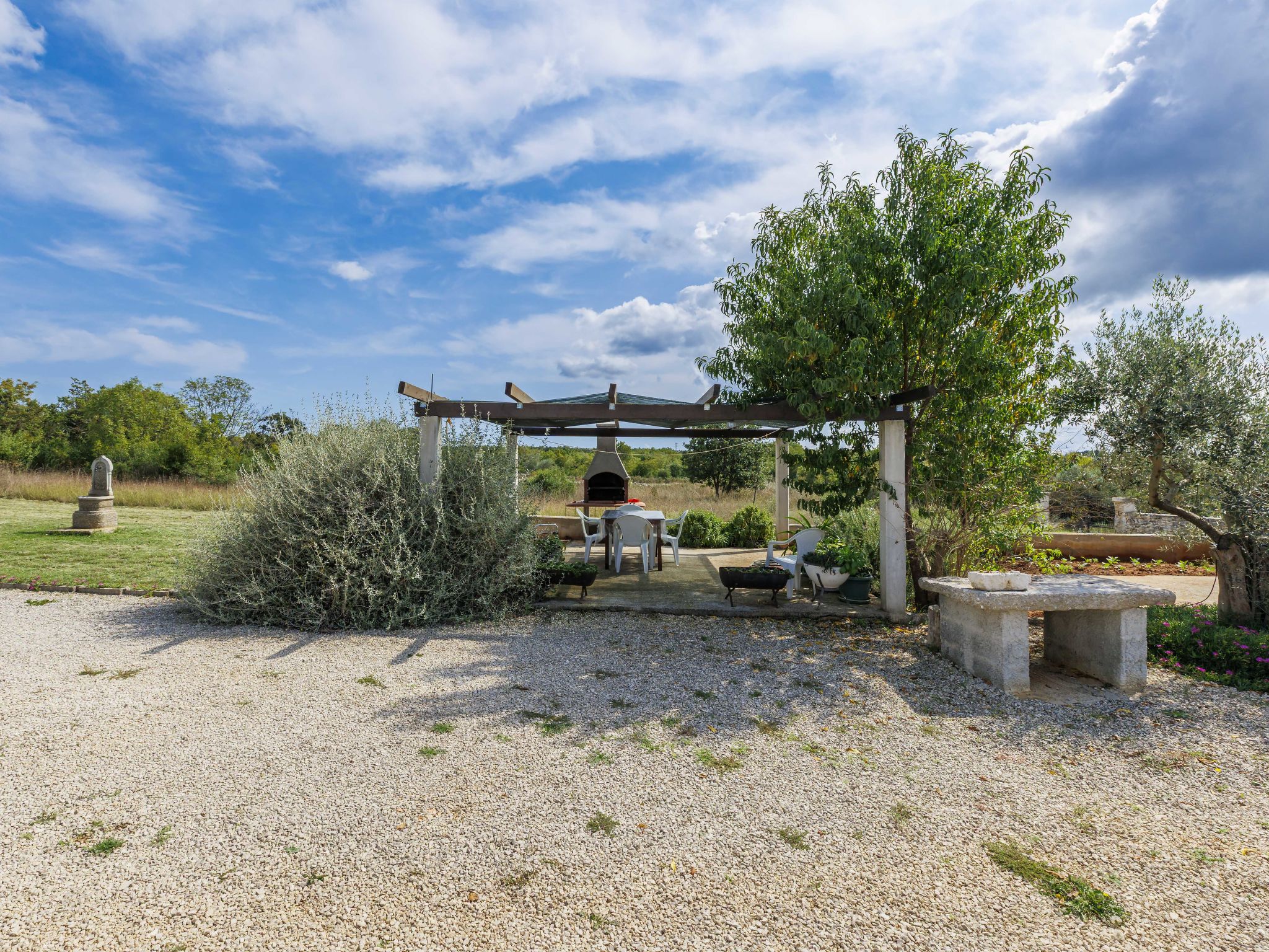 Gajana 6 km from Vodnjan: House "Lidija". 13 km from the centre of Svetvinčenat, 18 km from the centre of Pula, in a sunny position, 8 km from the sea. Private: property 600 m2 with lawn. Terrace (20 m2), garden furniture, barbecue, children's playground. In the house: internet access, washing machine. Parking (for 3 cars) at the house on the premises. Shop 6 km, supermarket 6 km, restaurant 6 km, bus stop 6 km, pebble beach 10 km.
