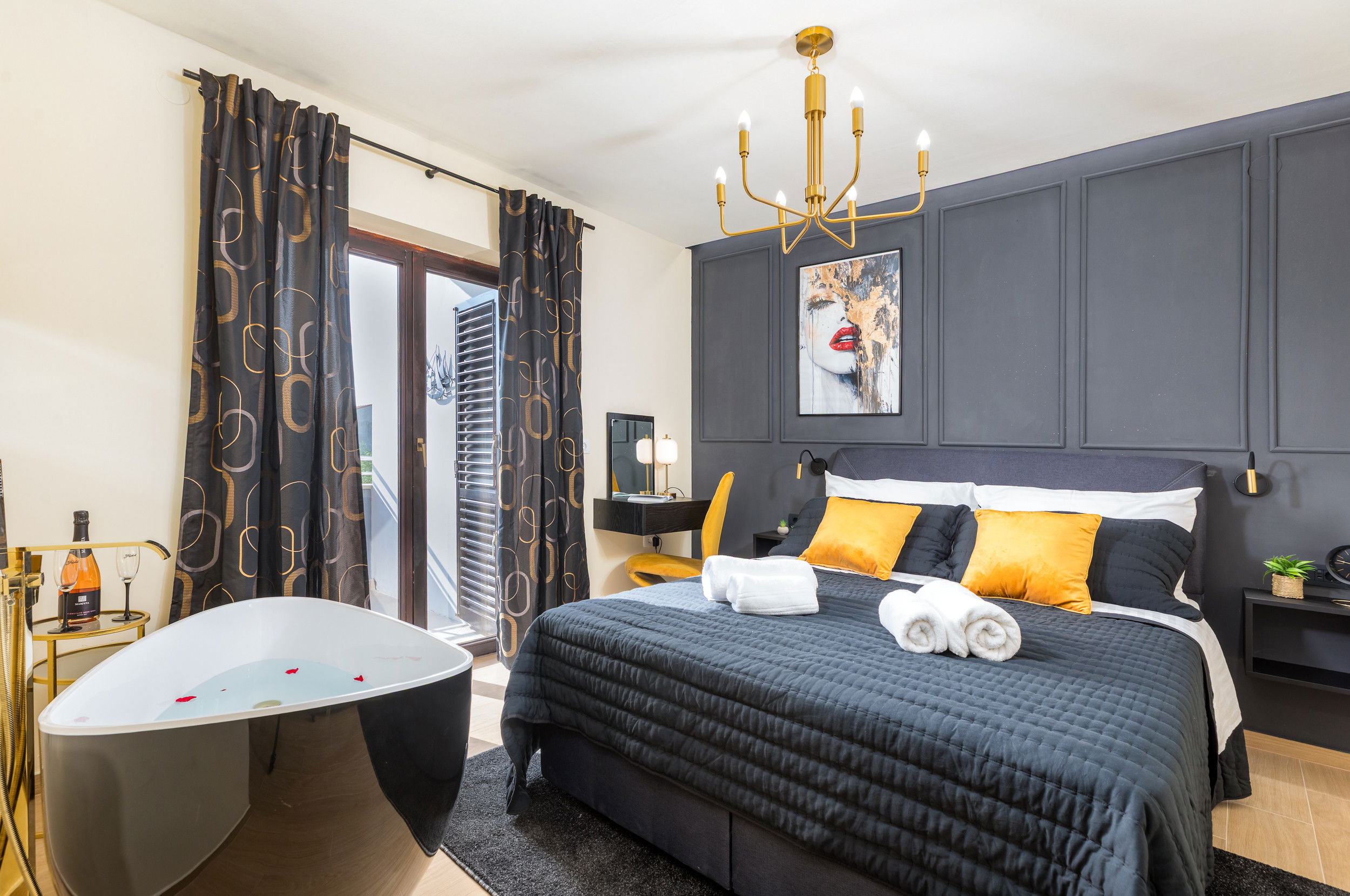 This beautifully designed love nest offers unforgettable moments, whether you're relaxing on the charming balcony or unwinding together in the spacious in-room bathtub, made just for two.