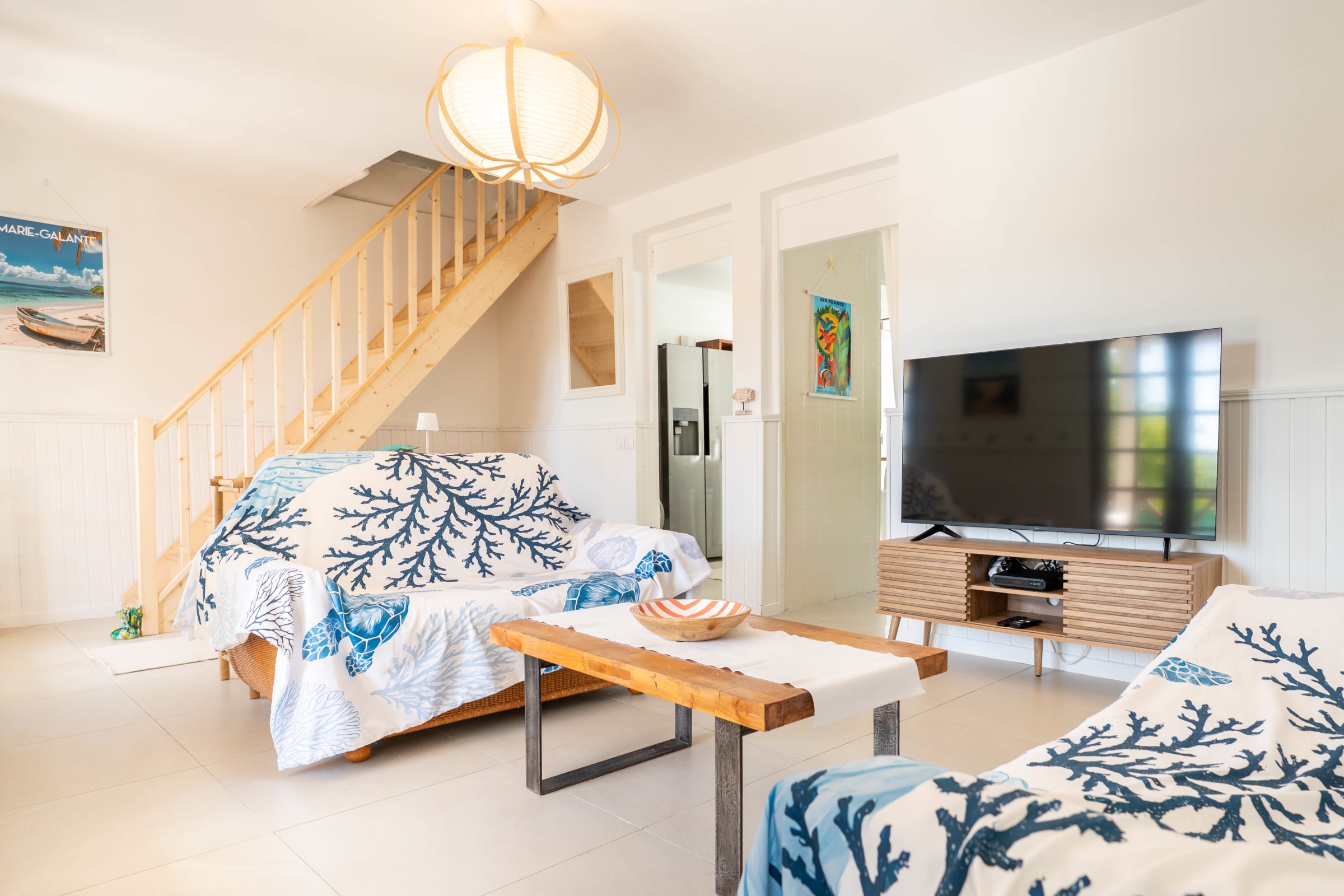 The villa is located in Grand Bourg, on the picturesque island of Marie Galante. Just a 5-minute drive away, discover the heart of Grand Bourg with its shops and local markets. In less than 5 minutes on foot, you can reach the white sandy beaches, ideal for swimming and sunbathing. Explore the island by car to discover its renowned distilleries and breathtaking landscapes. Take advantage of the ideal location of the villa during the Terres de Blues festival.