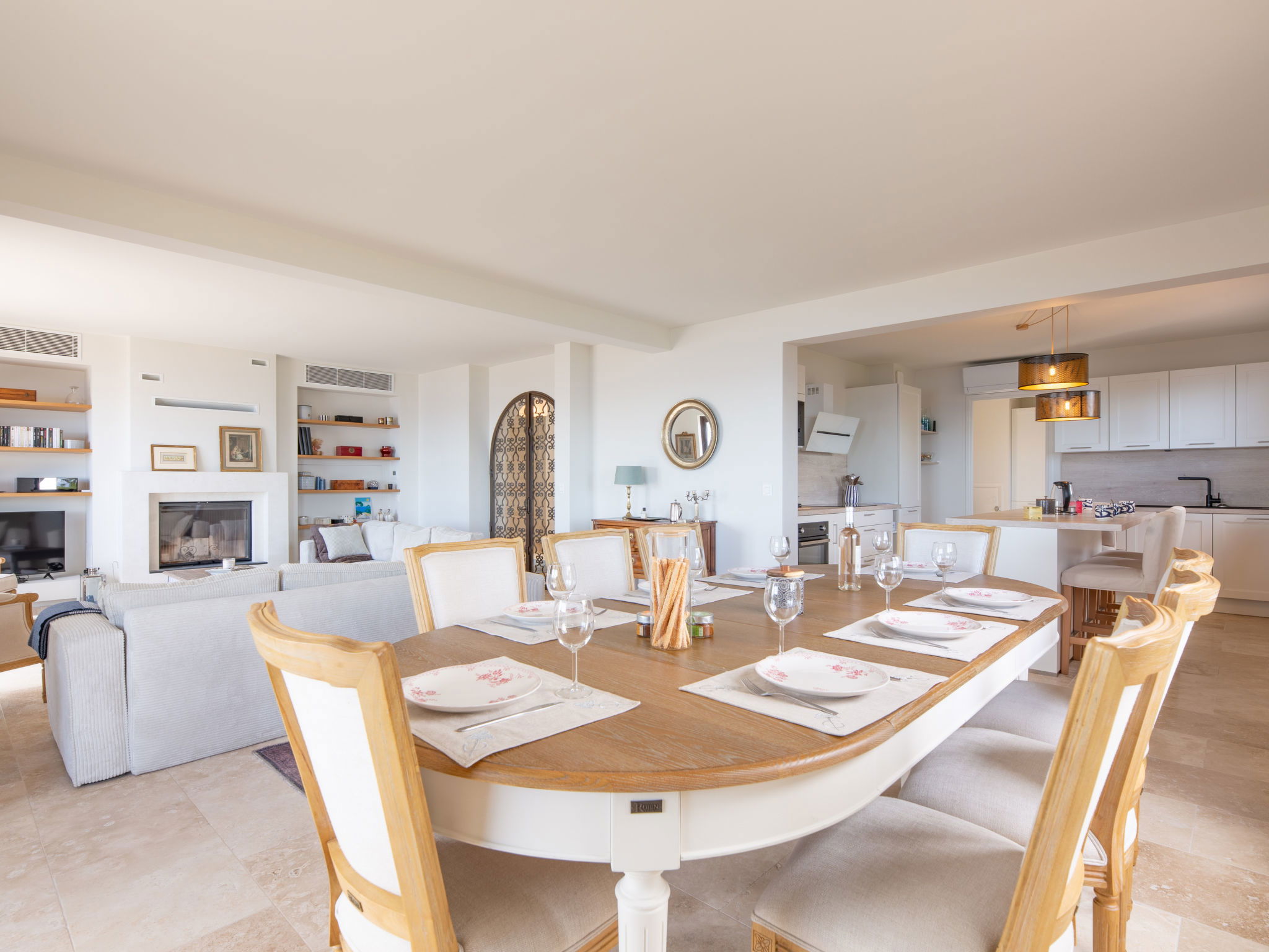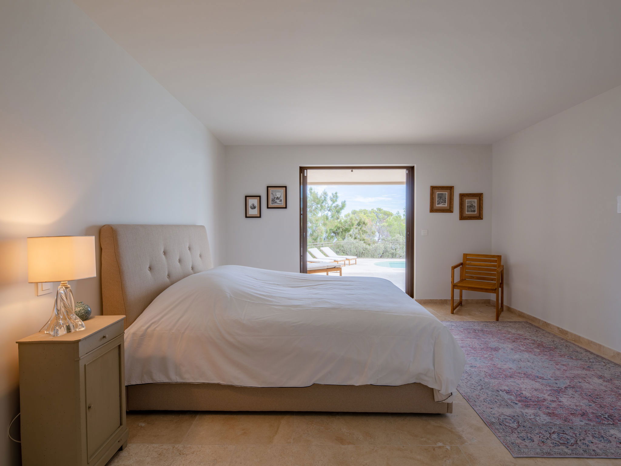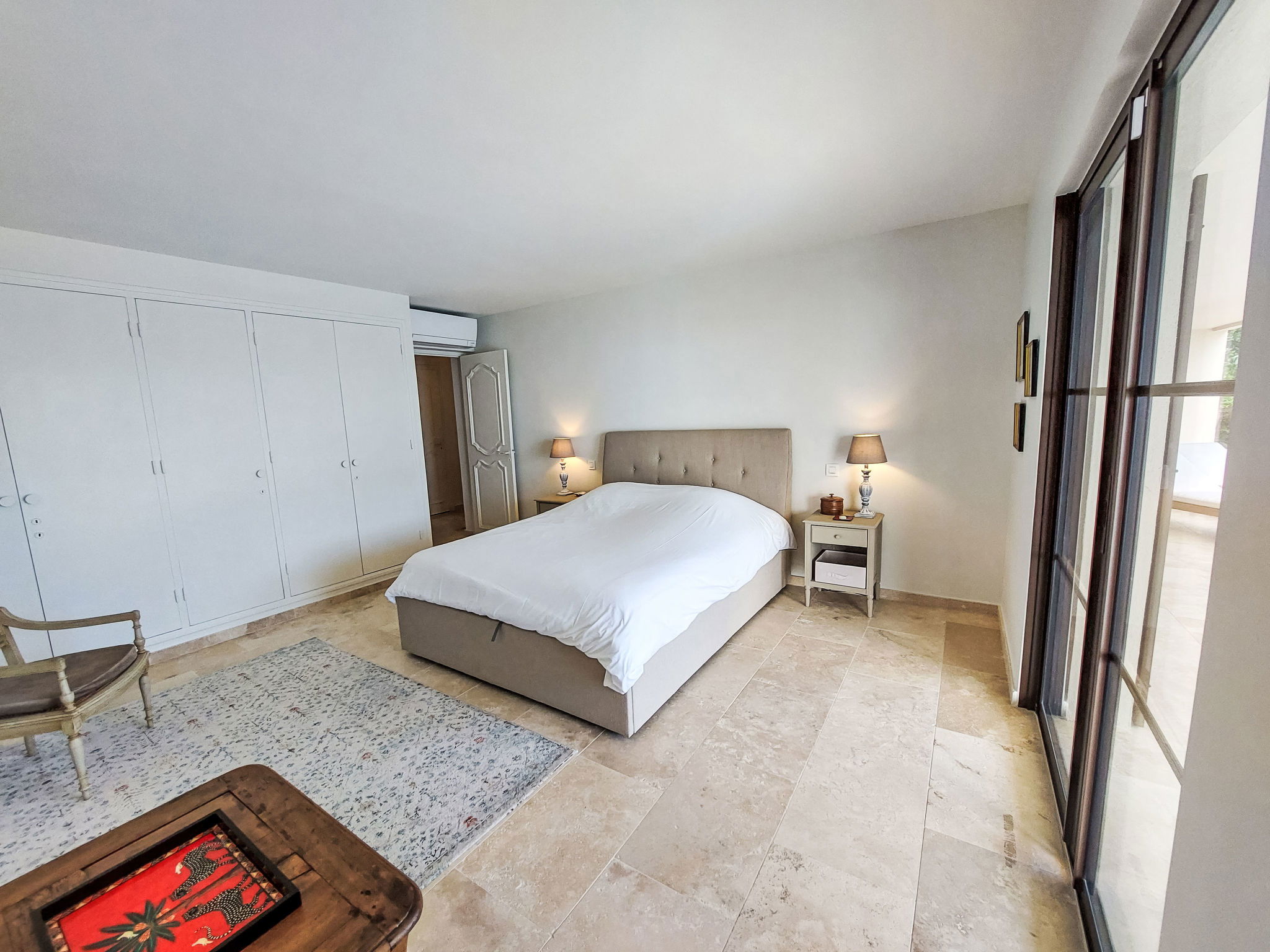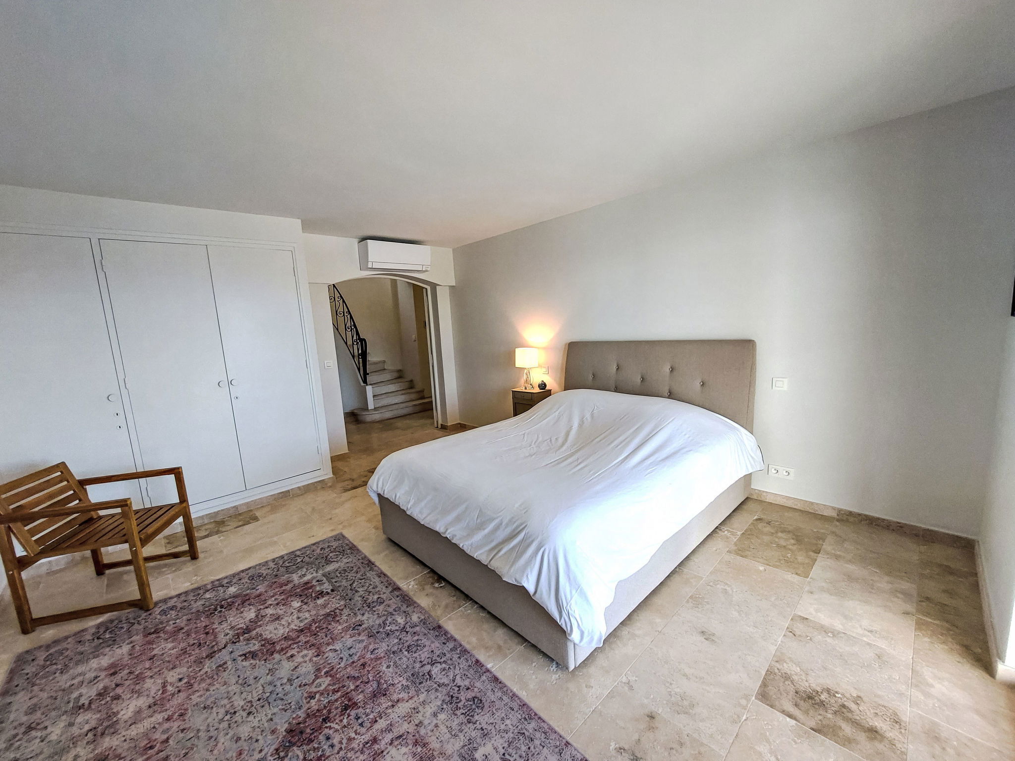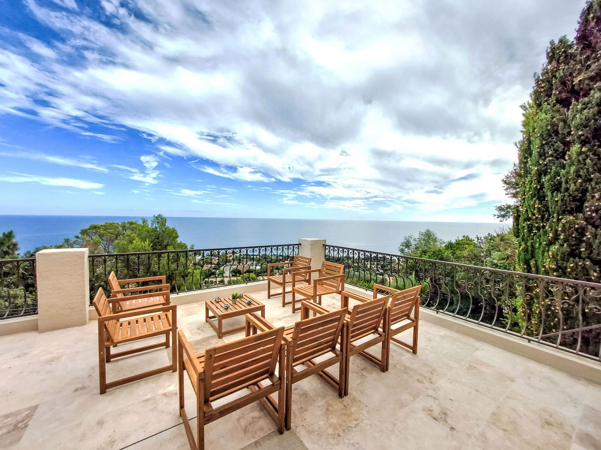 5-room villa 220 m2 on 2 levels. Modern furnishings: large living/dining room with panoramic window with TV (flat screen). Exit to the terrace. 1 large room with 1 french bed (160 cm, length 200 cm), bath/shower/WC and double hand-basin. Exit to the terrace. Large, open kitchen (oven, dishwasher, 4 induction hot plates, toaster, kettle, microwave, freezer, electric coffee machine, Capsules for coffee machine (Nespresso) extra) with bar. Sep. WC. Electric heating. On the lower ground floor: 1 large room with 1 french bed (160 cm, length 200 cm). Exit to the terrace, to the swimming pool. 1 large room with 1 french bed (1 x 160 cm, length 200 cm), hand-basin. Exit to the terrace, to the swimming pool. 1 large room with 1 french bed (1 x 160 cm, length 200 cm), bath/shower. Exit to the terrace, to the swimming pool. Shower/WC. Electric heating. Large terrace 300 m2, south facing position. Terrace furniture, balcony furniture, deck chairs (8). Panoramic view of the sea. Facilities: washing machine, iron, children's high chair, baby cot (extra), hair dryer. Internet (WiFi, free). Parking (1 car). Please note: non-smoking house. Smoke alarm. Offer by a private individual according to Art. 155, IV of CGI. 83107002726FM