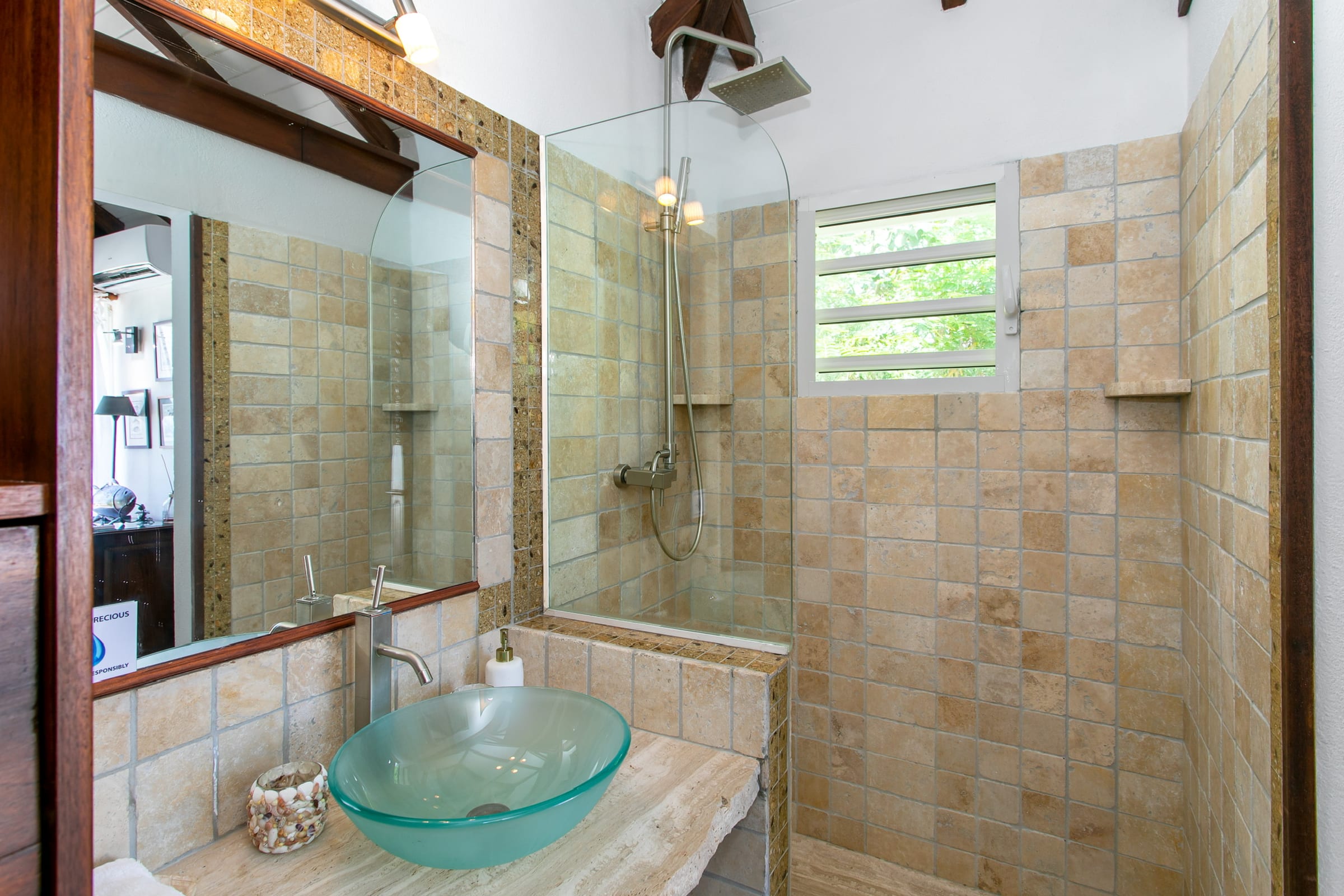 Designed with a blend of modernity and Caribbean collections, Villa Mango features four spacious bedrooms and four bathrooms, making it an ideal destination for families and groups of friends. Three of the bedrooms are located in the main villa and have en-suite bathrooms that open onto the interior of the house. The fourth bedroom, although slightly smaller, is located separately and has its own entrance, dressing room and private terrace with views.