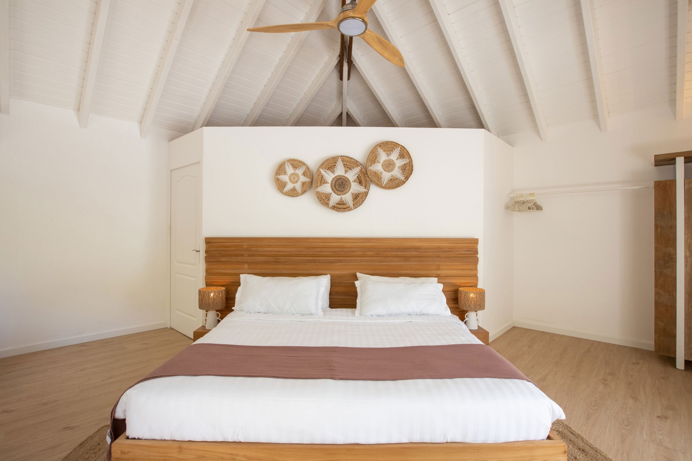 For an extra touch of seclusion and romance, the second master bedroom is housed in an individual bungalow. Surrounded by verdant gardens and swaying palm trees, this standalone retreat creates an intimate sanctuary for couples to savor each moment. The ensuite bathroom is a haven of luxury, providing a lavish space for unwinding after a day of sun-soaked adventures.