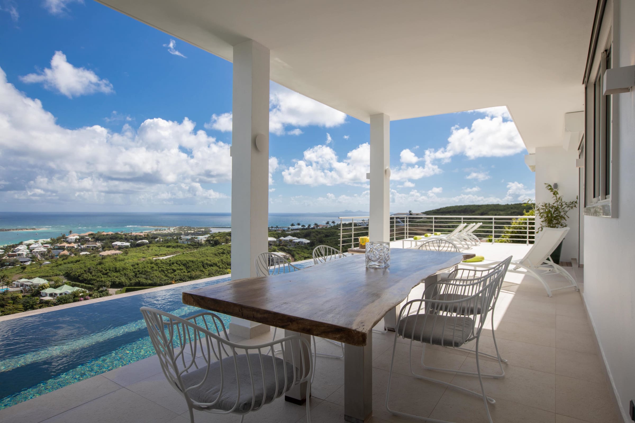 Villa Sunrise is an amazing place to stay! Perched on a mountainside, it offer breathtaking views of the surrounding area. Being able to see the sunrise over the ocean and the nearby islands of Pinel, Tintamarre, and St Barths in the distance is an unforgettable experience.