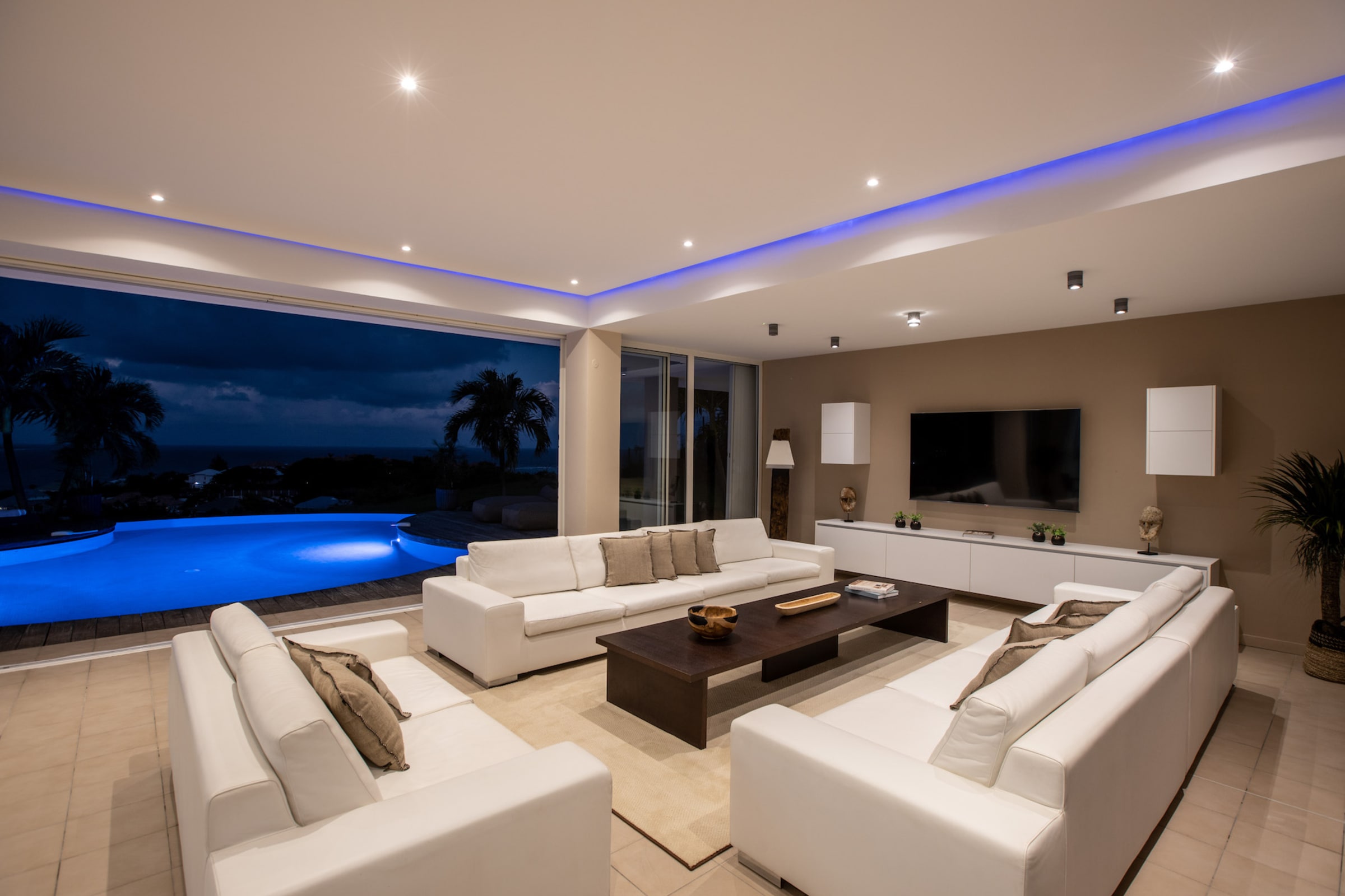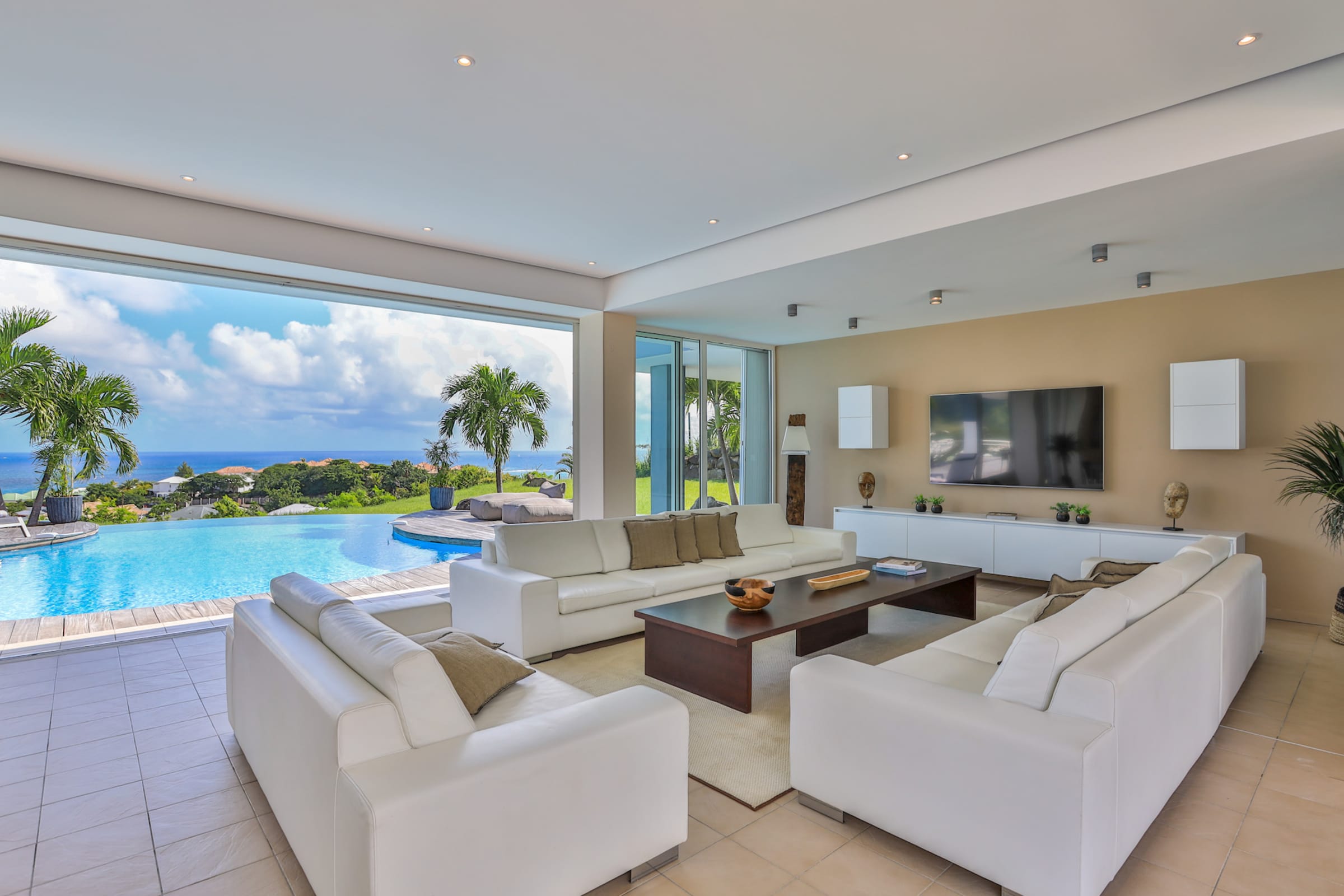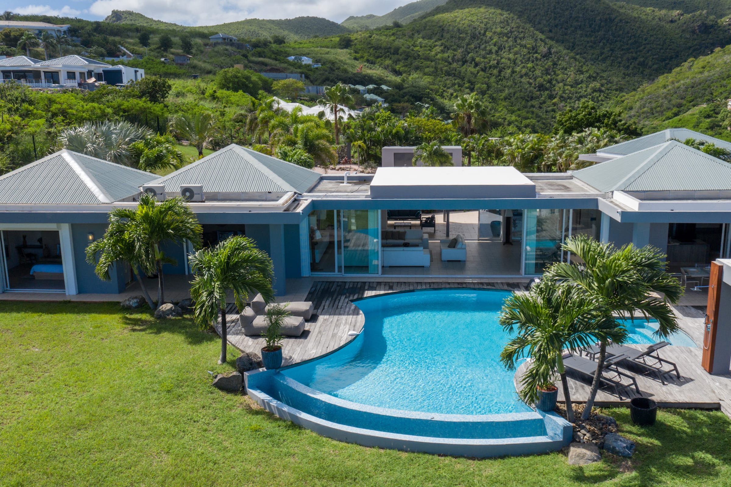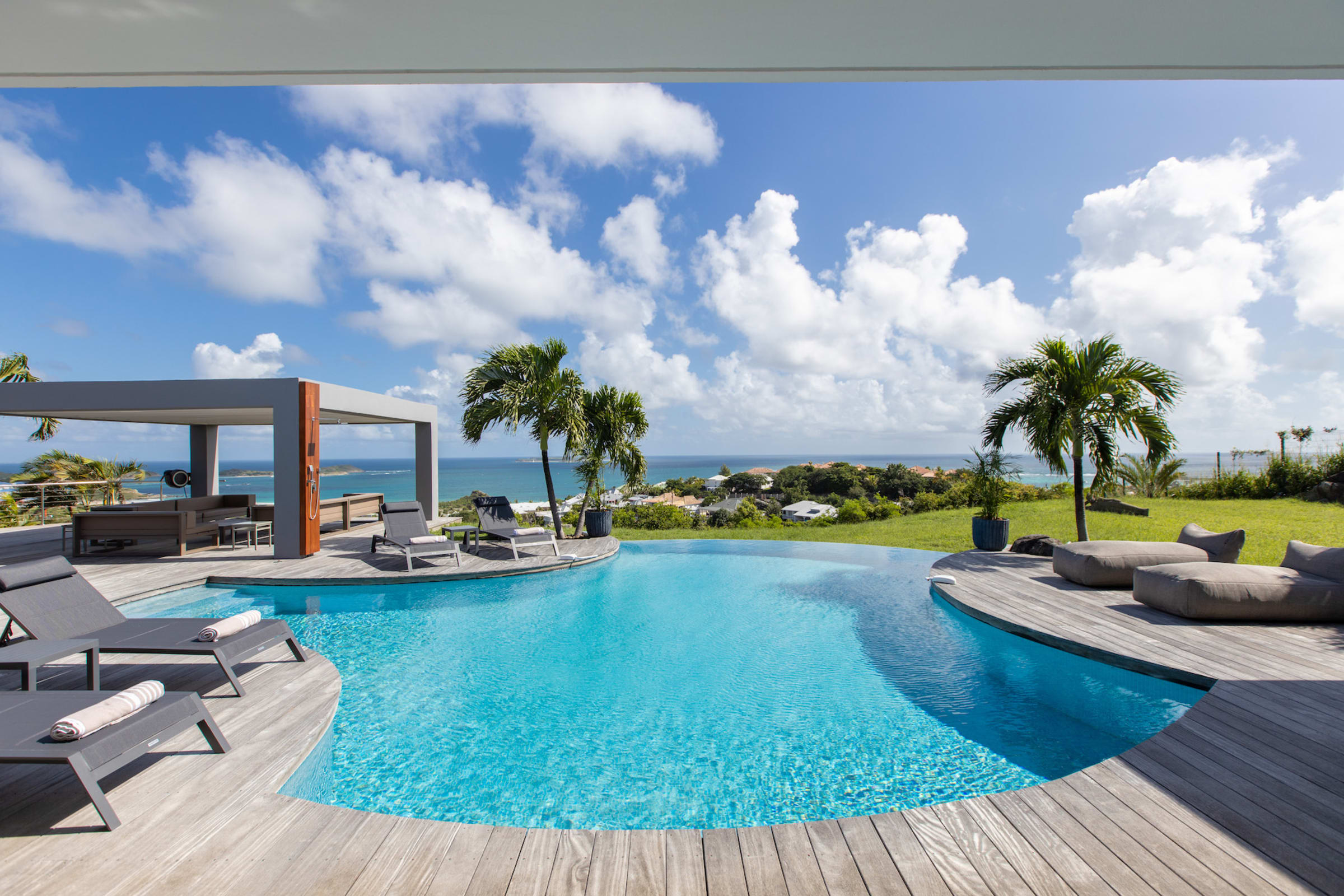 This beautiful, recently renovated, contemporary 4 bedroom villa is the perfect place to vacation in St. Martin and enjoy the island life. Upon entering the villa, the incredible panoramic view dazzles with tropical mountains and the endless blue sea and sky.