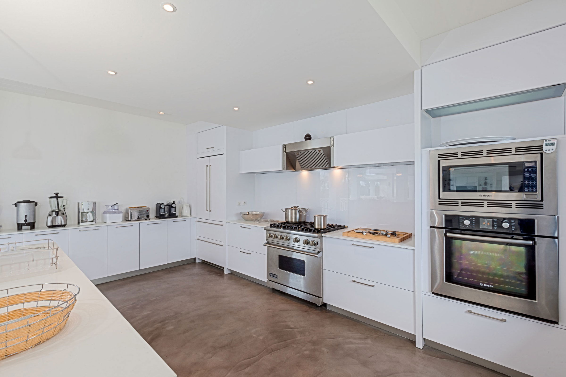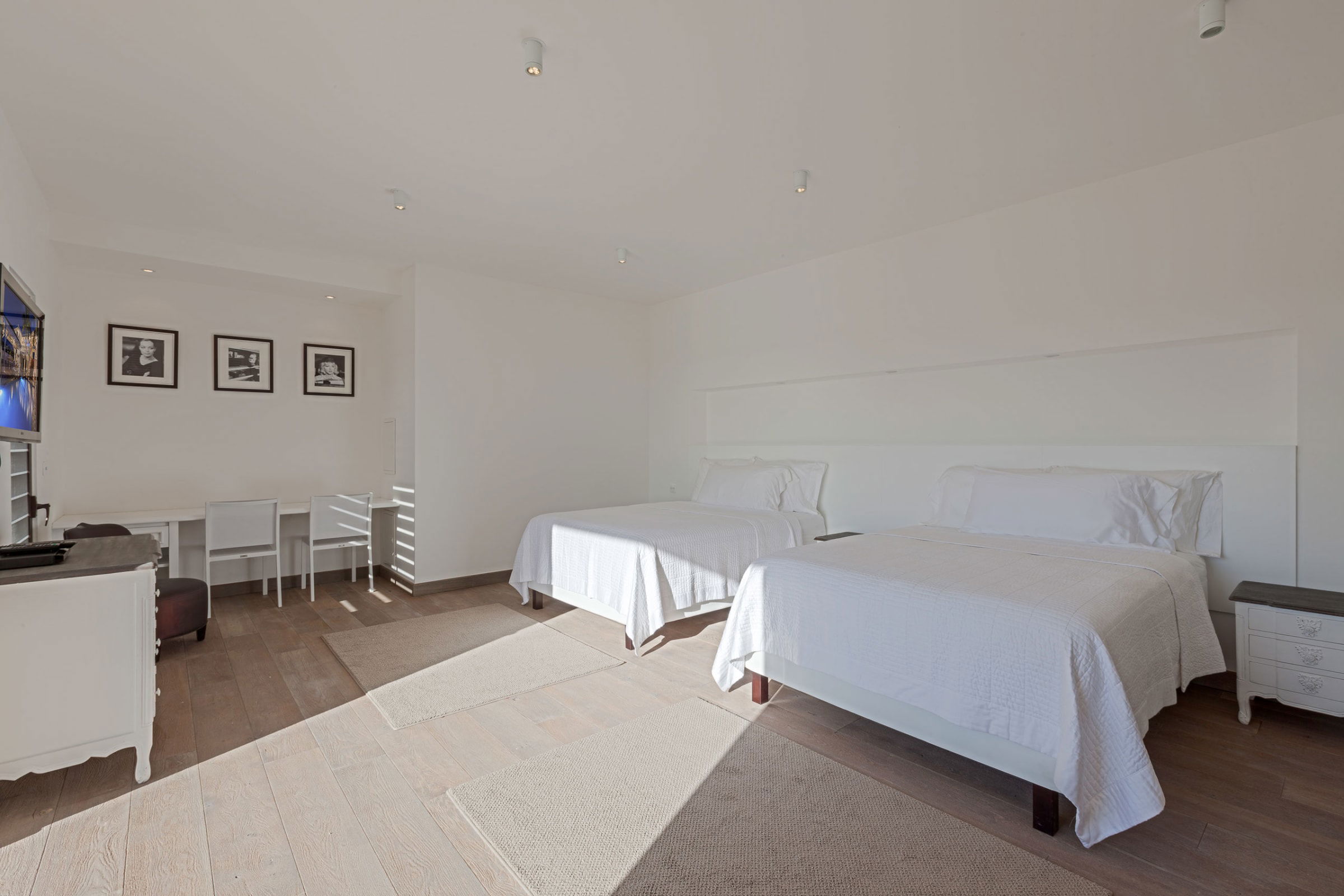 The villa is built on two levels, with four of the bedrooms boasting king-size beds. Two of the bedrooms are located on the same level as the kitchen and living area, while the remaining four bedrooms are situated on the same level as the terrace and infinity pool.