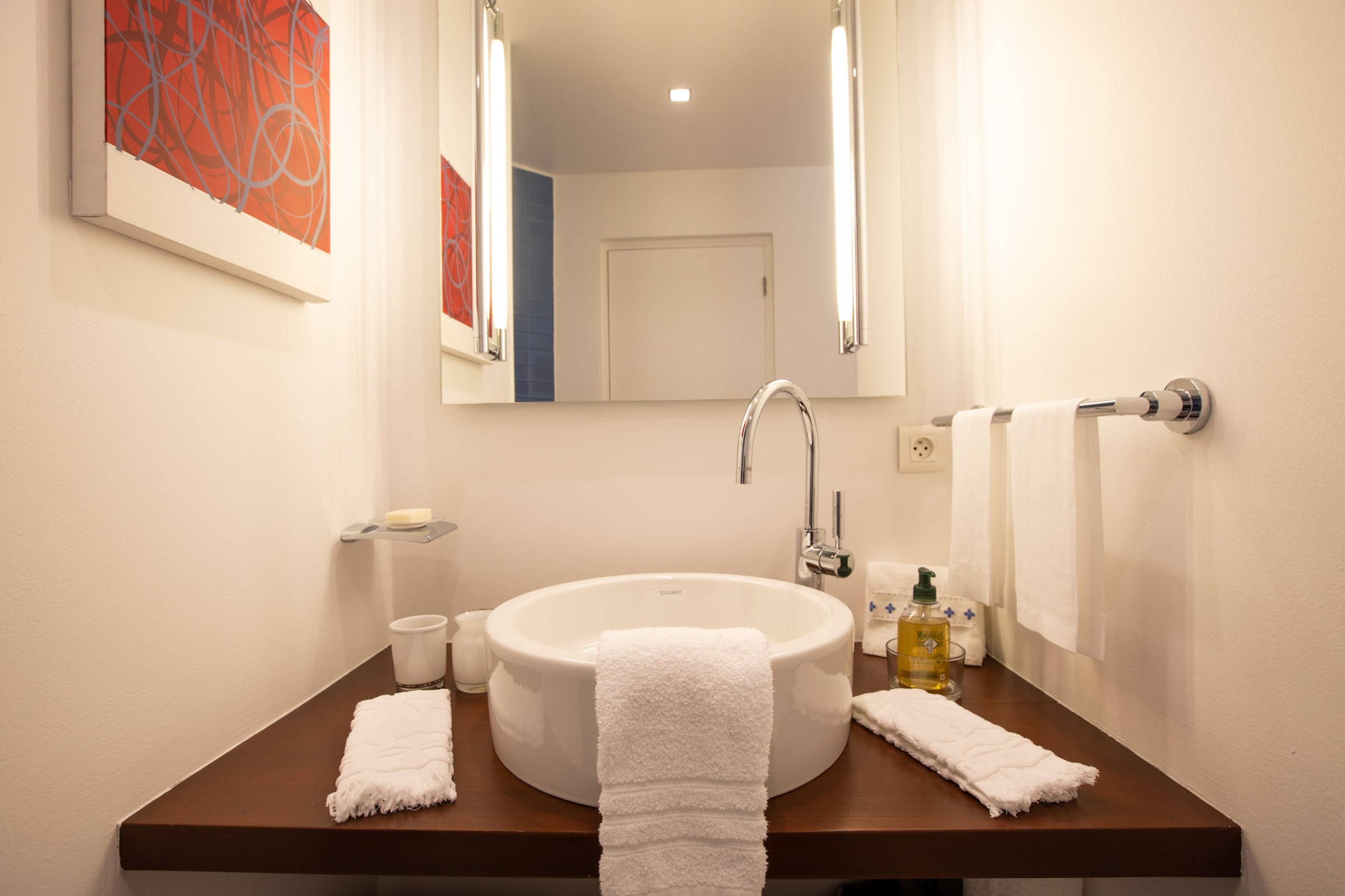 The two bedrooms boast ensuite bathrooms and overlook the terrace, living room, and dining room, providing a seamless connection to the main living spaces. Two additional bedrooms, one of which features two single beds, are situated on the lower level and also offer their own ensuite bathrooms.