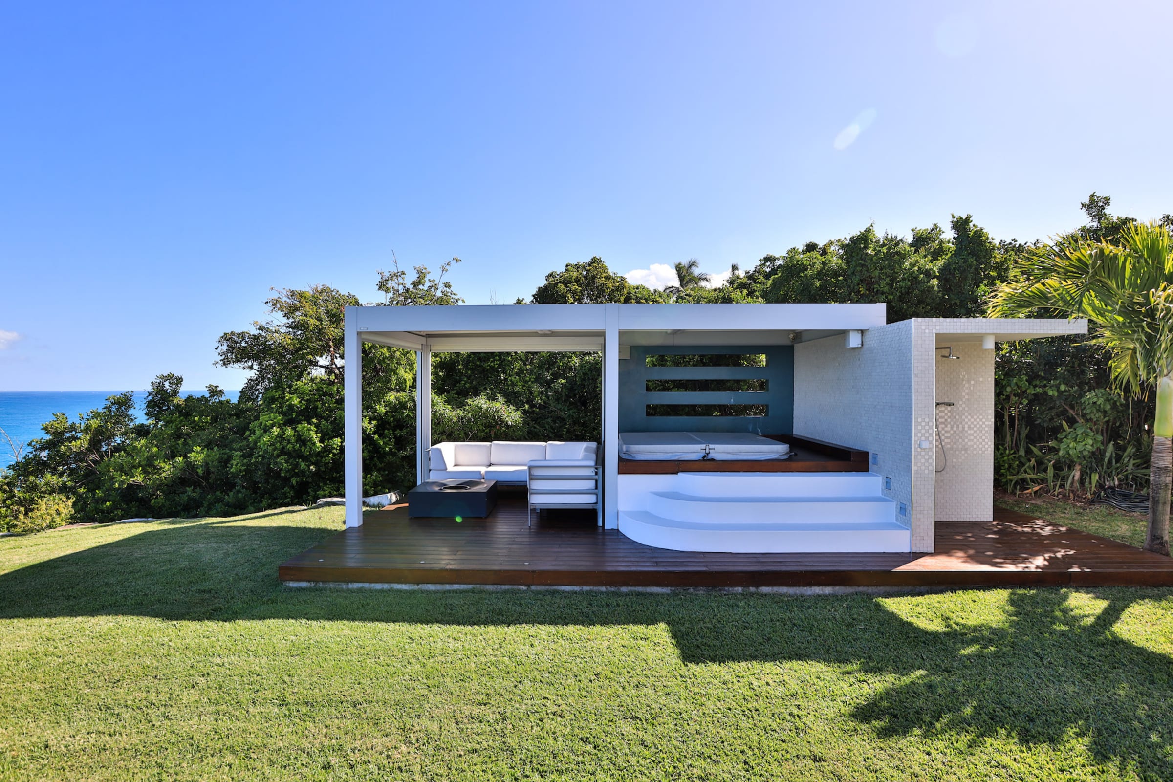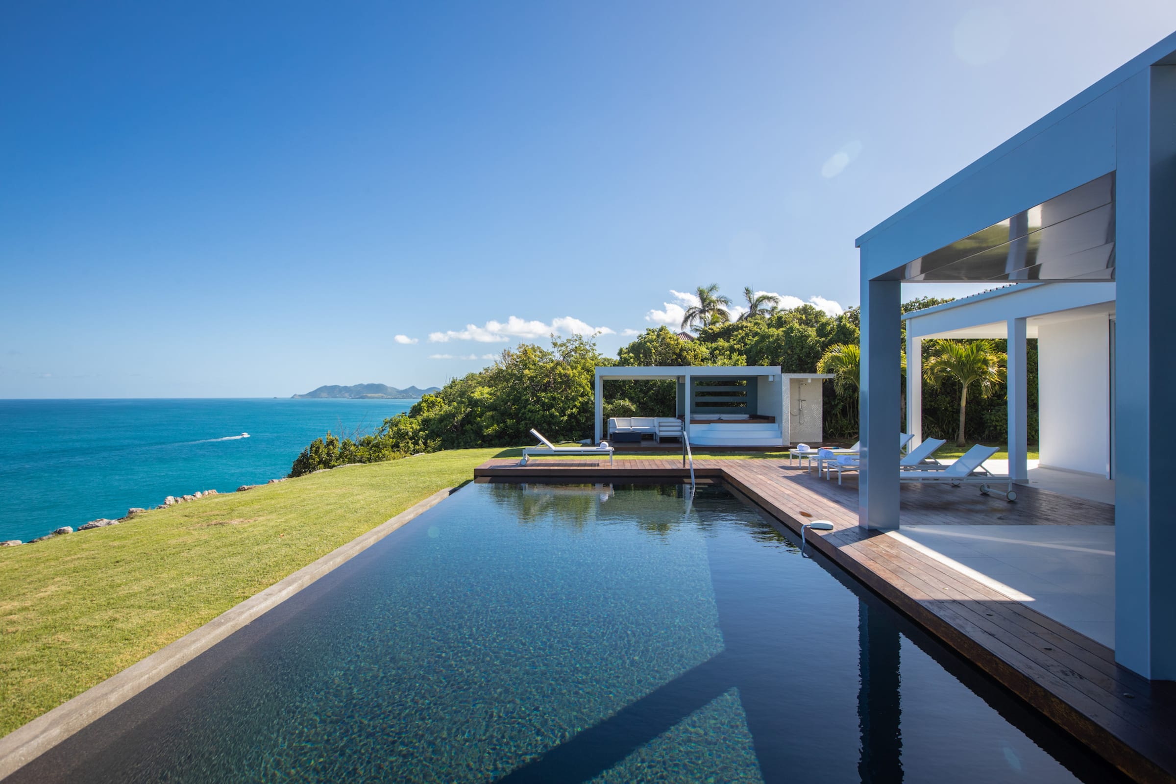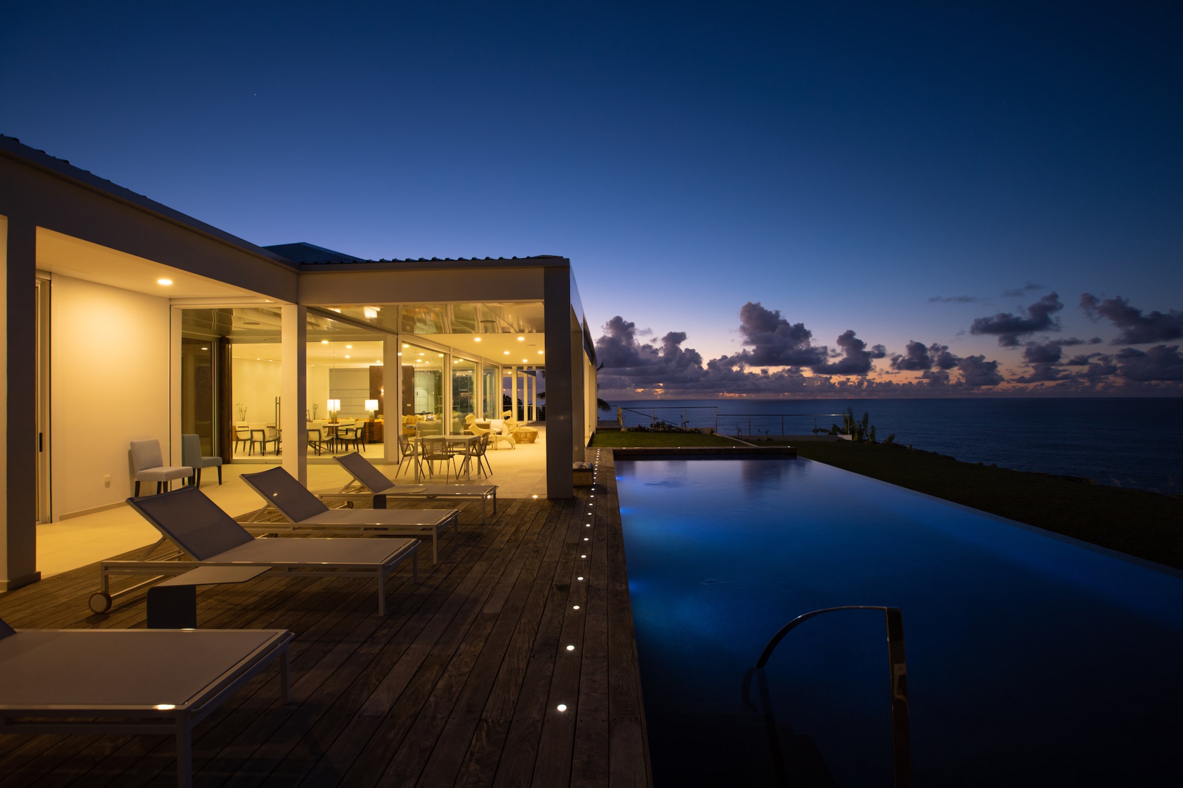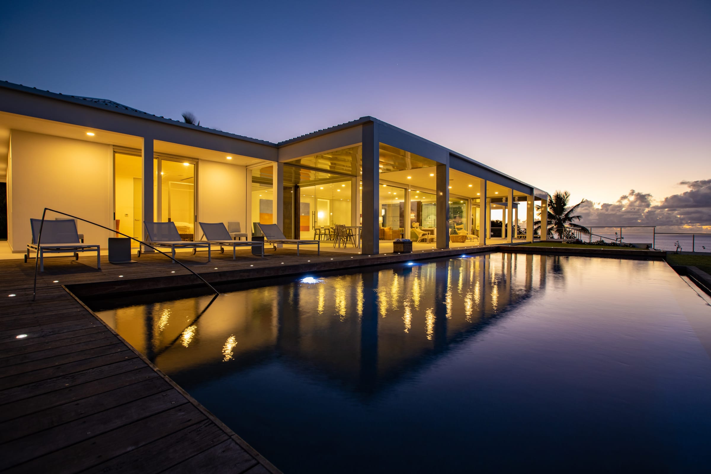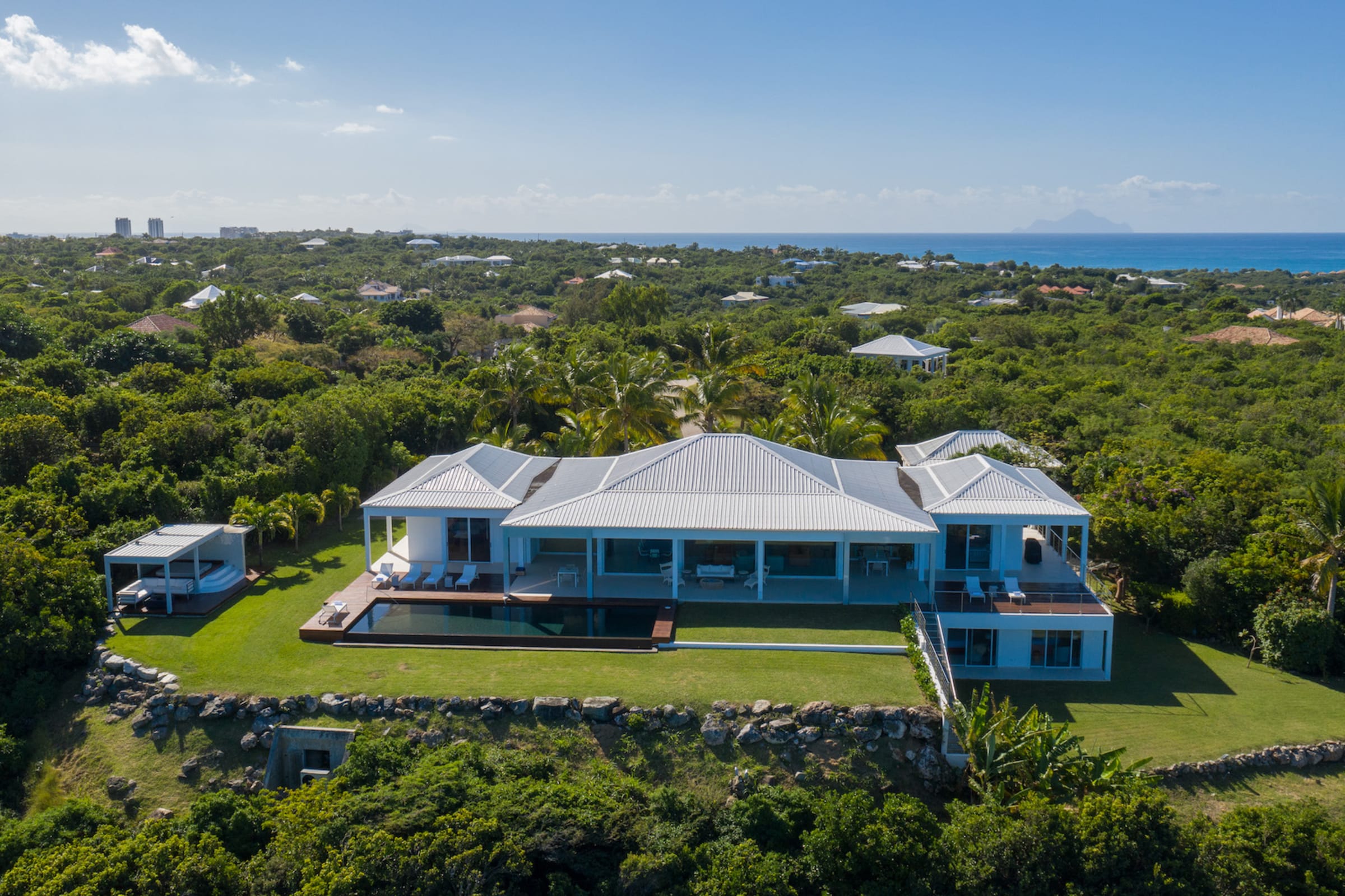 Villa Truffle, a luxurious retreat nestled within a meticulously maintained tropical garden. This exceptional property is perched on a clifftop, offering breathtaking views of the Caribbean Sea, Anguilla, and stunning sunsets.
