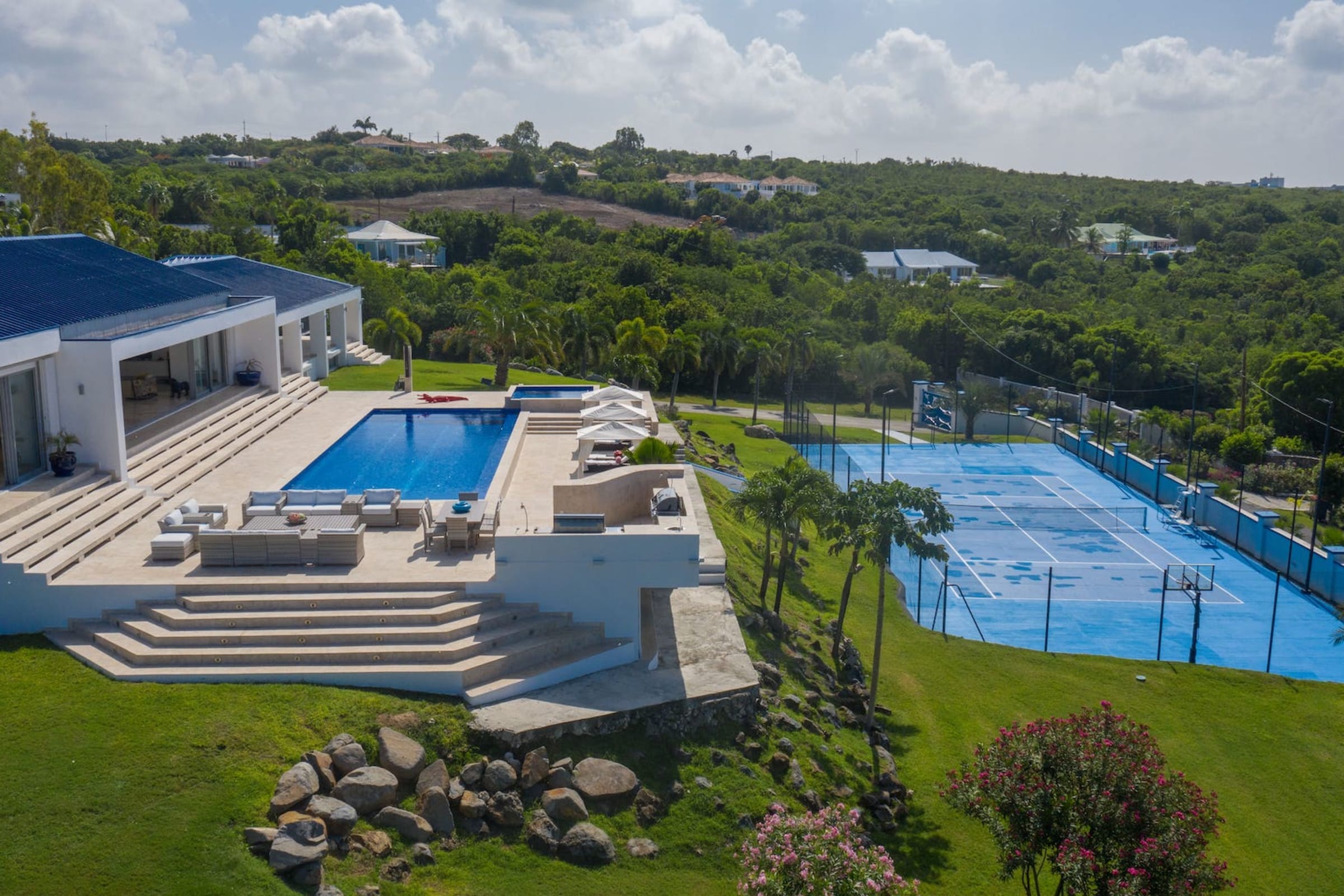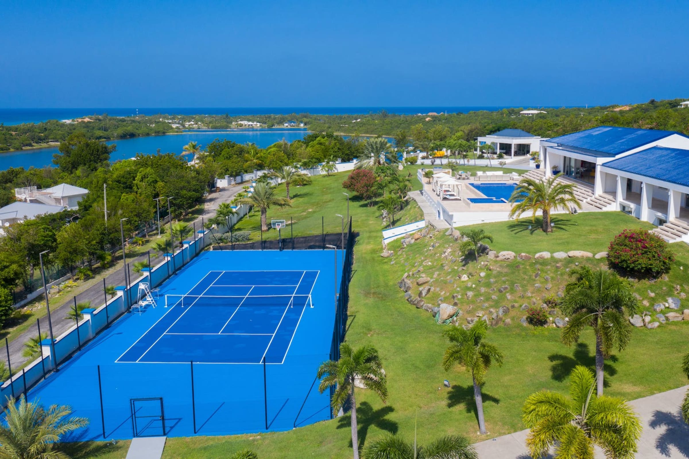 In addition to the beautiful accommodations, Villa El Grande Azure also provides a gym and a tennis court on the property. These amenities offer guests the opportunity to stay active and enjoy various activities during their stay.