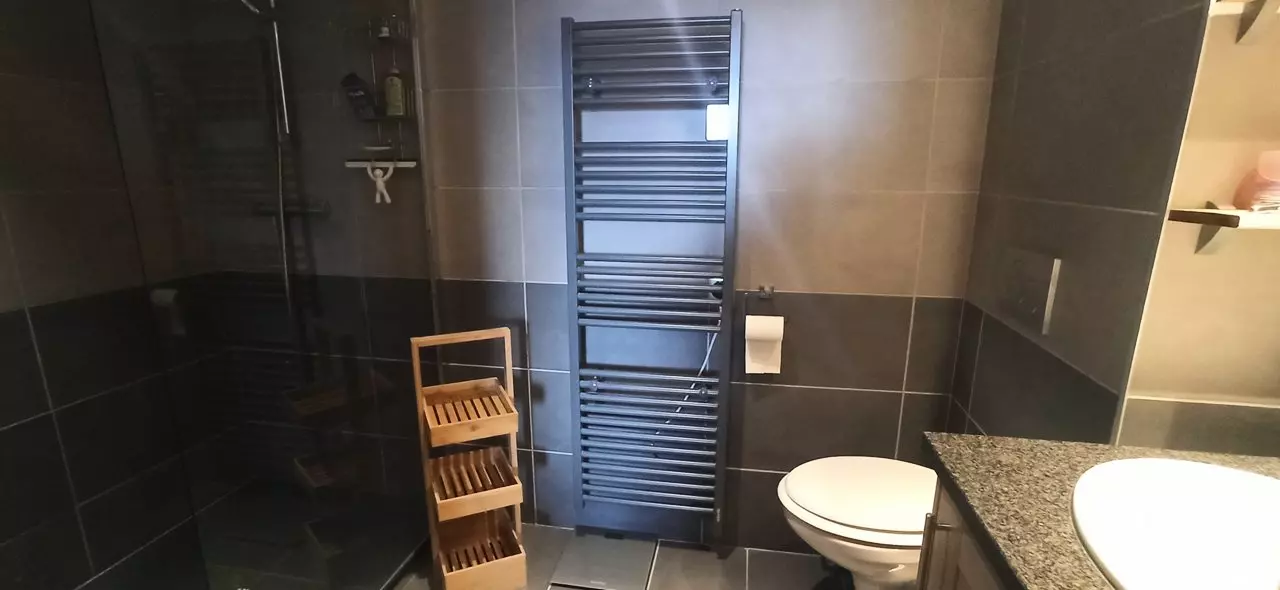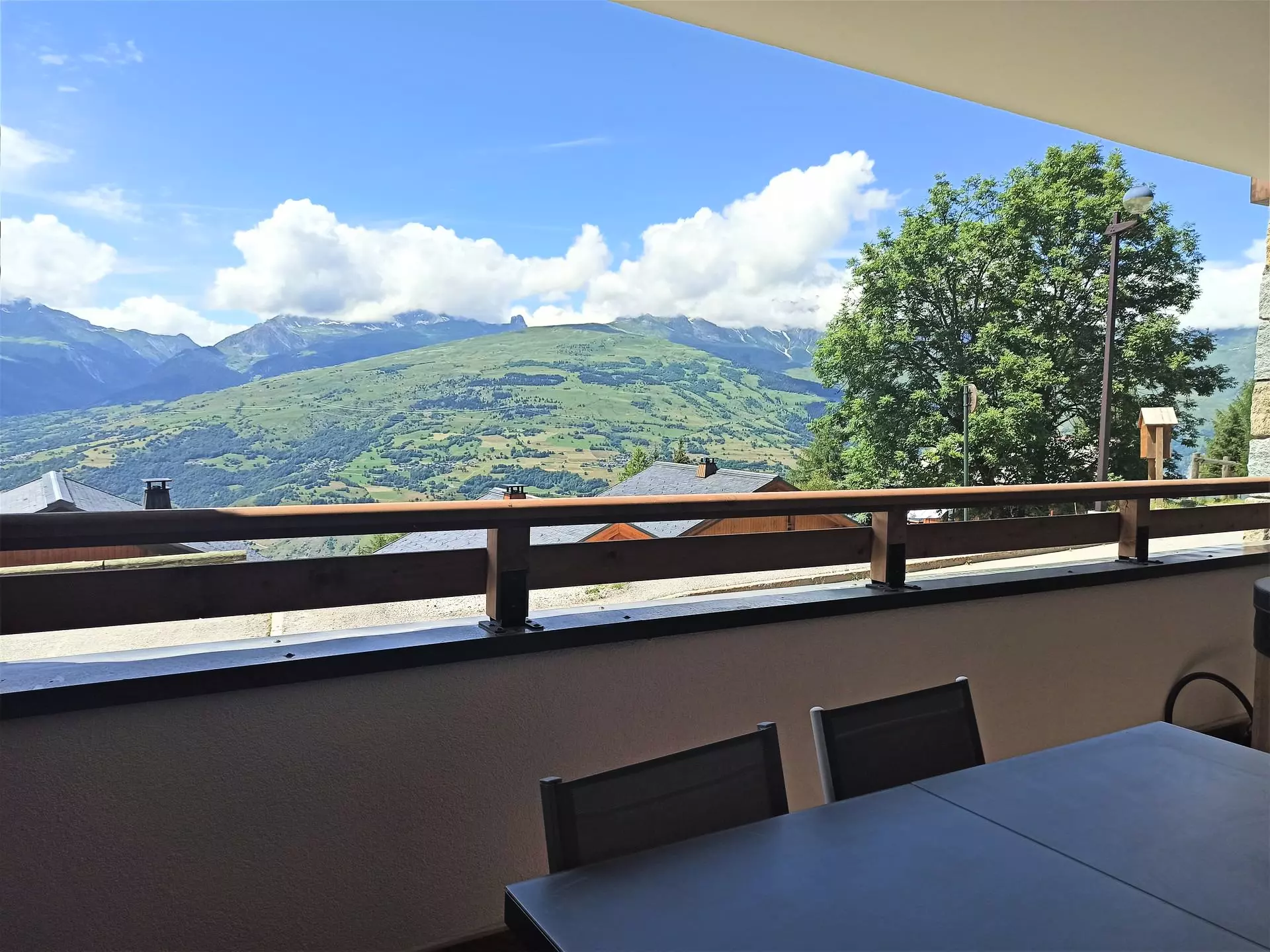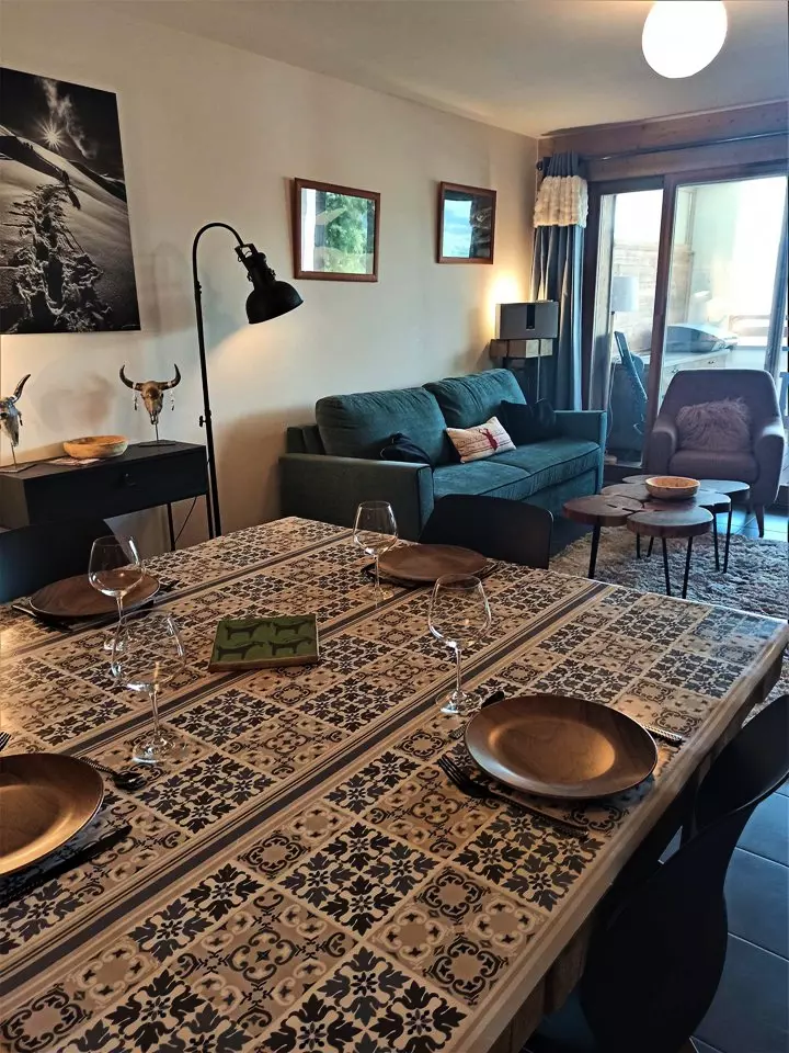 This high-end apartment is rented for 6 people. It is composed of a bedroom with a double bed and a shower room with WC and a 2nd bedroom with 2 single beds that can be pushed together, a bathroom, 1 separate WC and a fully equipped kitchen open to the living room opening onto a large 19.6m2 terrace facing West with a beautiful view of our mountains and valley.