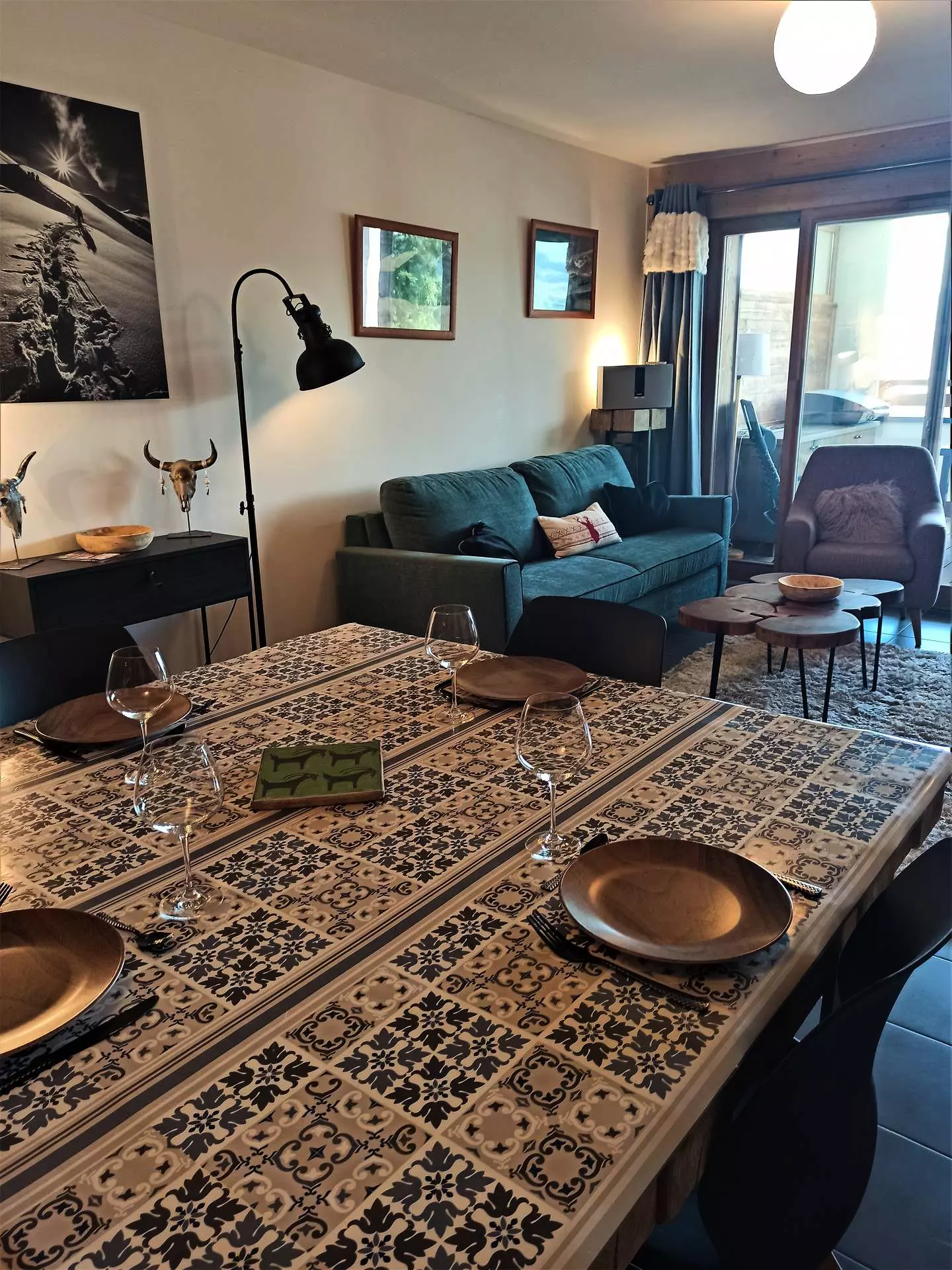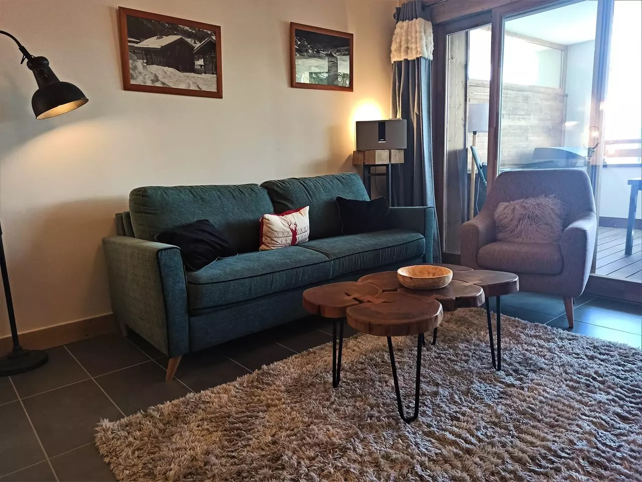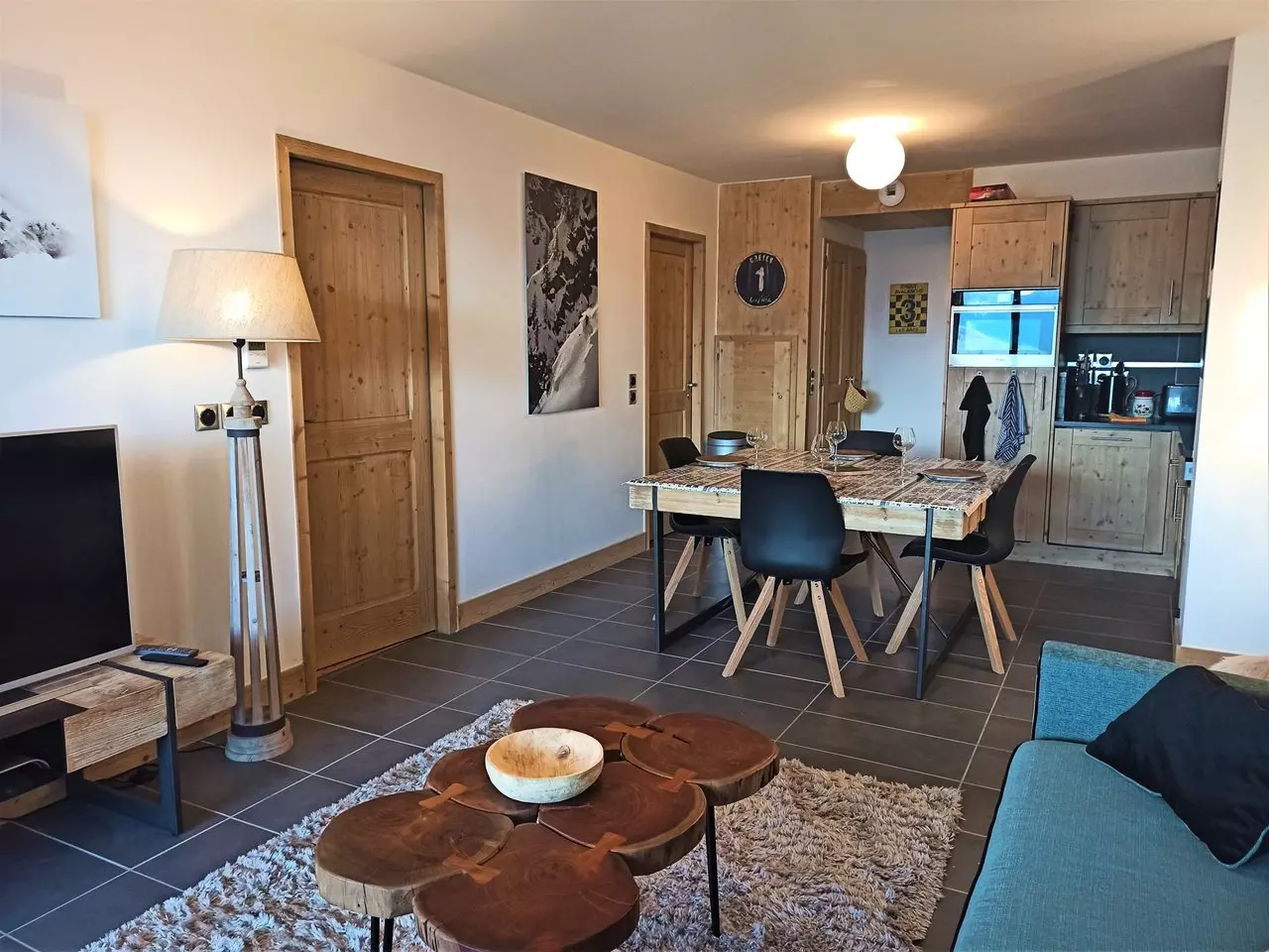 This high-end apartment is rented for 6 people. It is composed of a bedroom with a double bed and a shower room with WC and a 2nd bedroom with 2 single beds that can be pushed together, a bathroom, 1 separate WC and a fully equipped kitchen open to the living room opening onto a large 19.6m2 terrace facing West with a beautiful view of our mountains and valley.