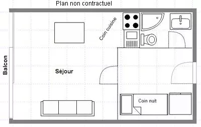 Small, standard studio of 18.50m², close to the slopes and shops. STANDARD.