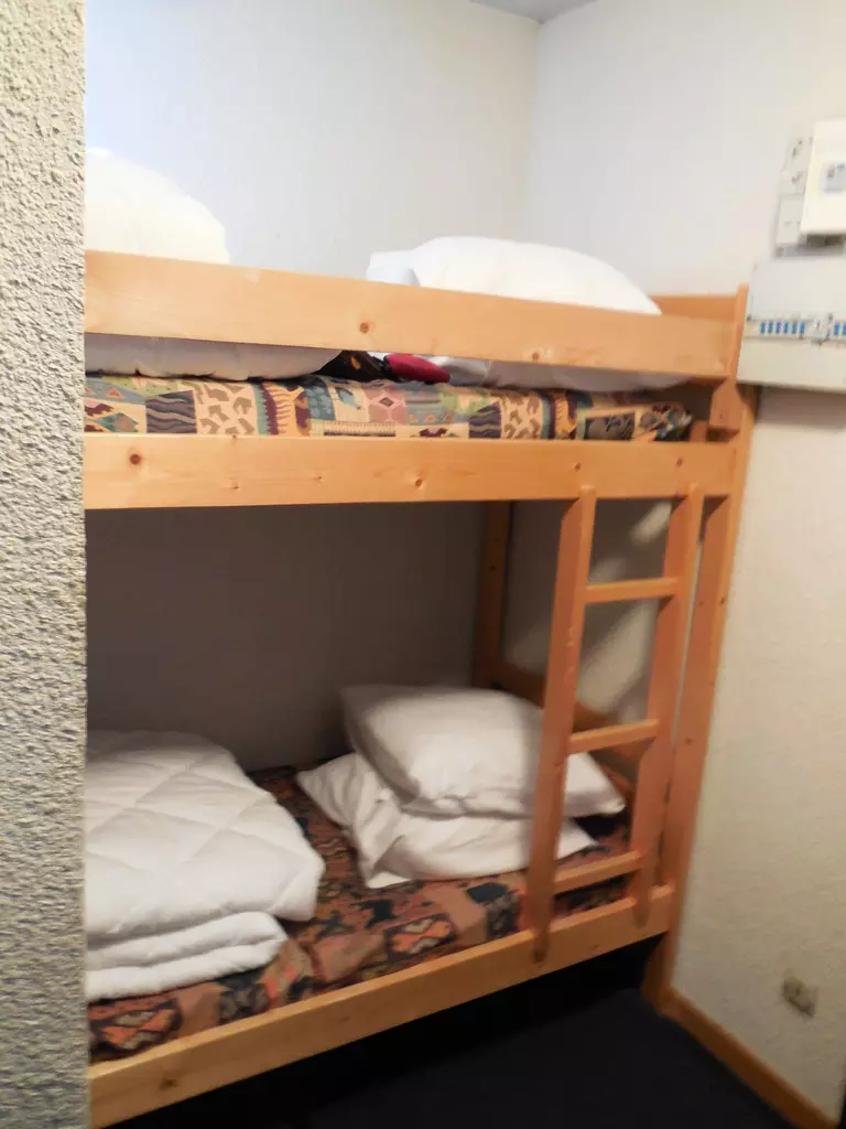 Rented for 2 to 4 people, the apartment is equipped with an entrance with two bunk beds, a kitchen area opening onto a living room with a bench seat + pull-out bed and a shower room with toilet.