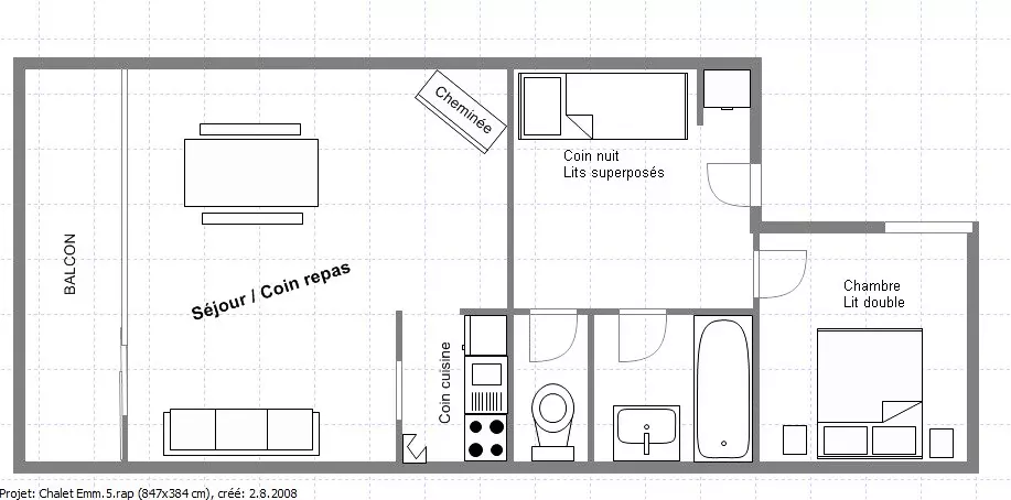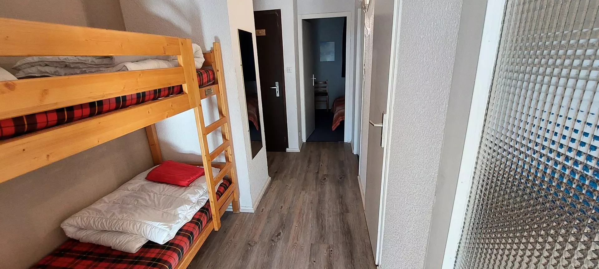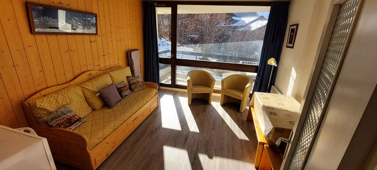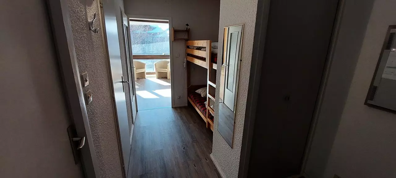 ** 33m² apartment, south-facing, located in a residence close to the slopes and shops as well as the Vanoise Express (connection to LA PLAGNE). The apartment is composed of a sleeping area with two bunk beds, a bedroom with a double bed, a bathroom with a bathtub and separate toilet, a kitchen area opening onto a living room with a sofa + trundle bed.