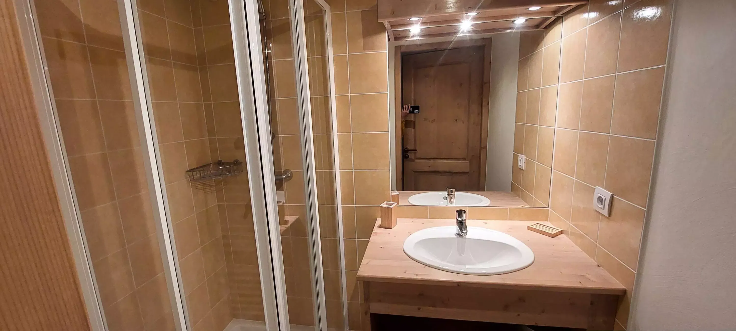 Beautiful 70m² apartment composed of a bedroom with a set of bunk beds, a second with a double bed and a mountain corner with a set of bunk beds, a bathroom with washing machine and a shower room with separate toilet, a fully equipped kitchen open to the living room with a sofa bed for 2 people. The living room gives access to a large terrace with a view of the valley