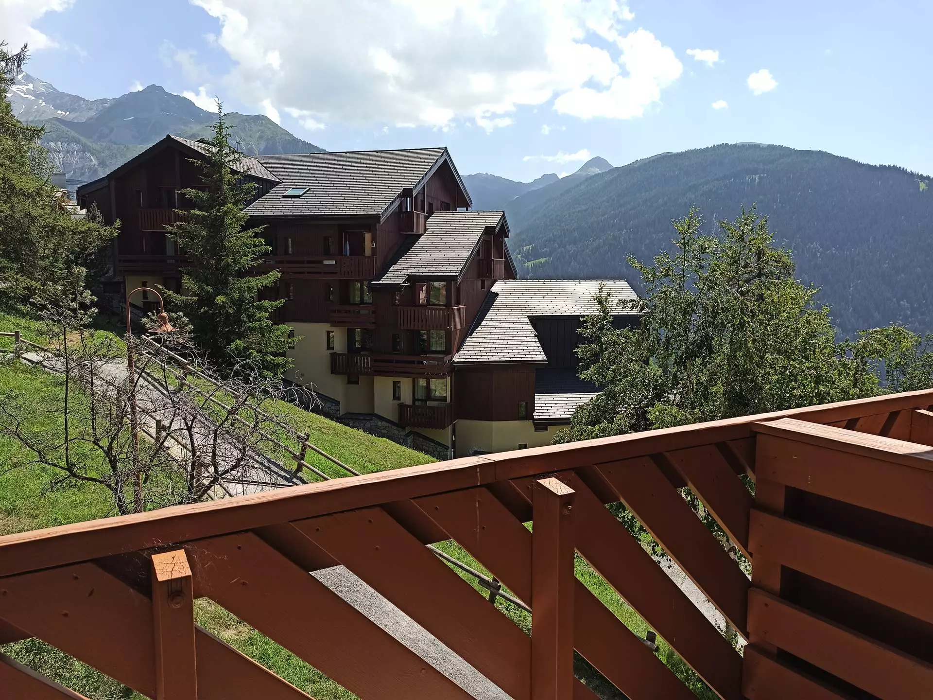 This residence, located less than a 5-minute walk from the shops and on the edge of the slopes, offers apartments with beautiful views. Access is by car for unloading luggage, and there is free, covered communal parking less than 100 meters away.