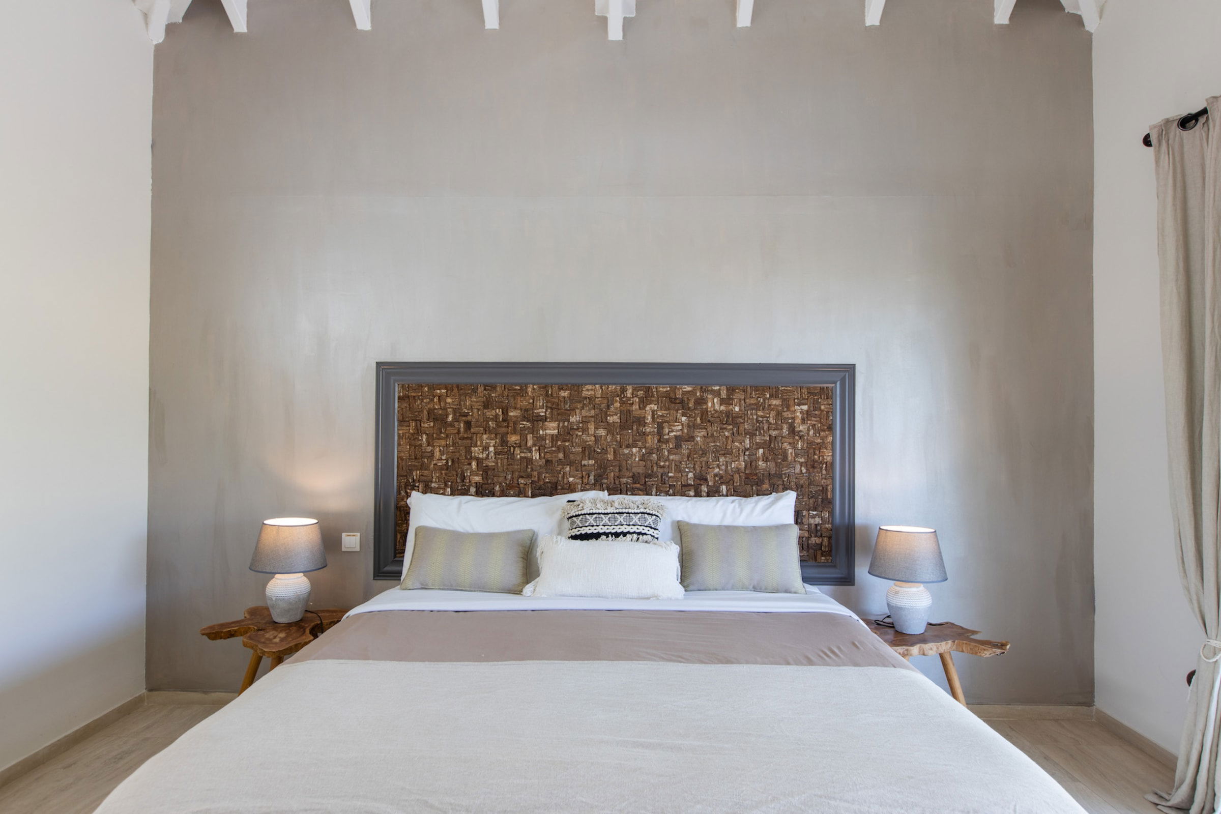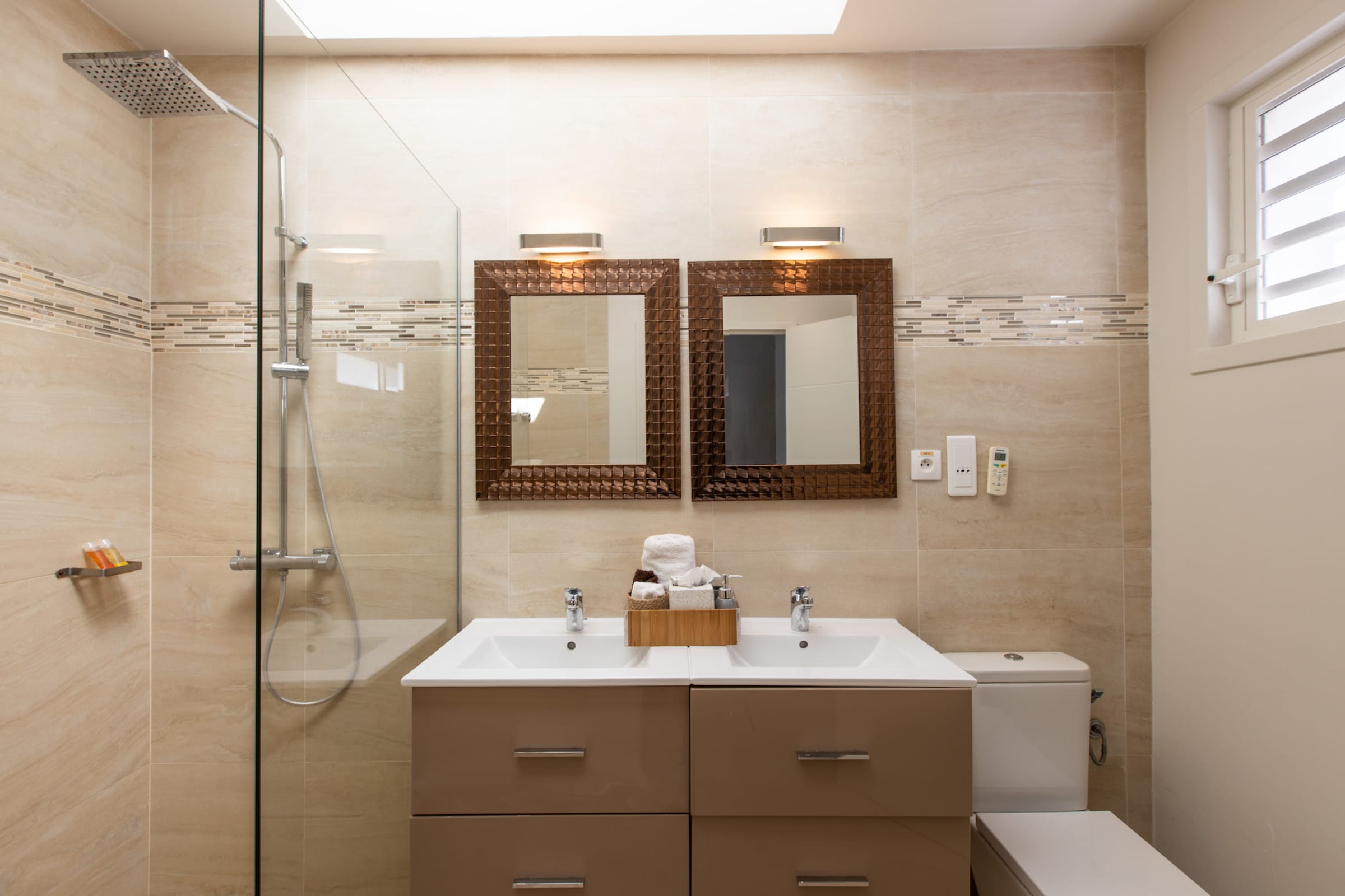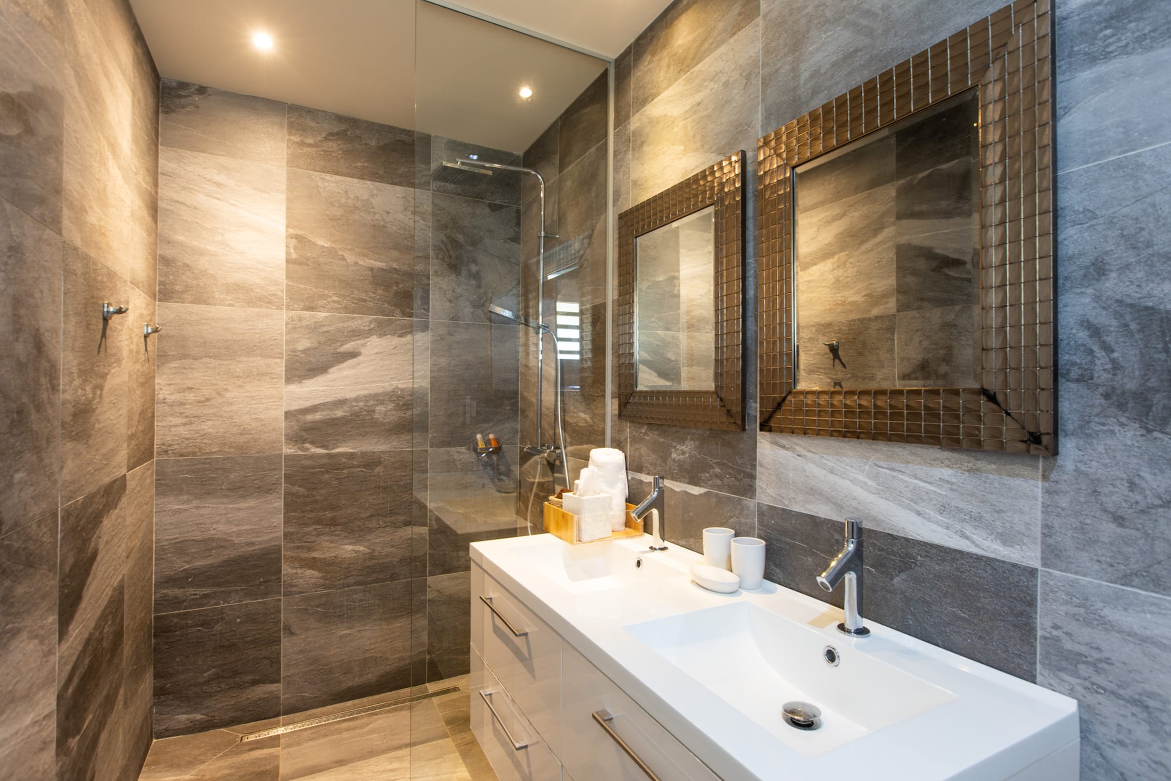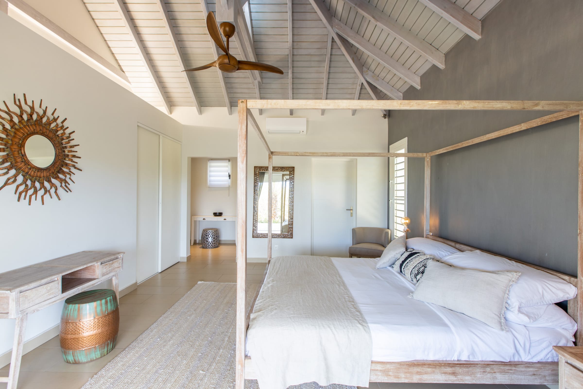 The four bedrooms are of equal size, one of which has an outdoor shower on its private terrace. Two bedrooms are accessible from the inside and offer a view of the garden. From the living room, a few steps provide access from the outside to the other two bedrooms, located on the lower pool level.