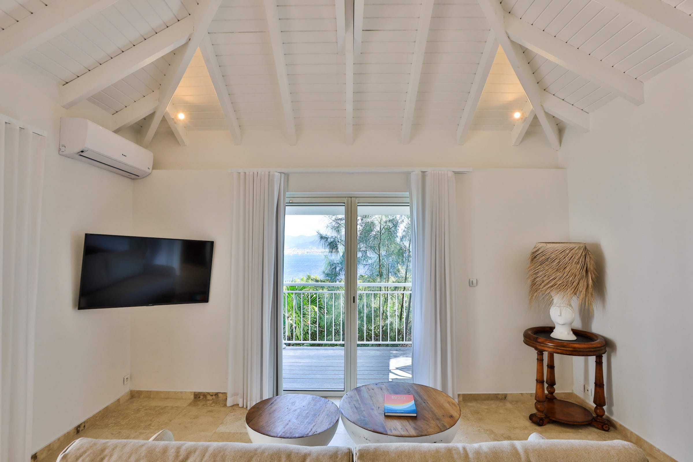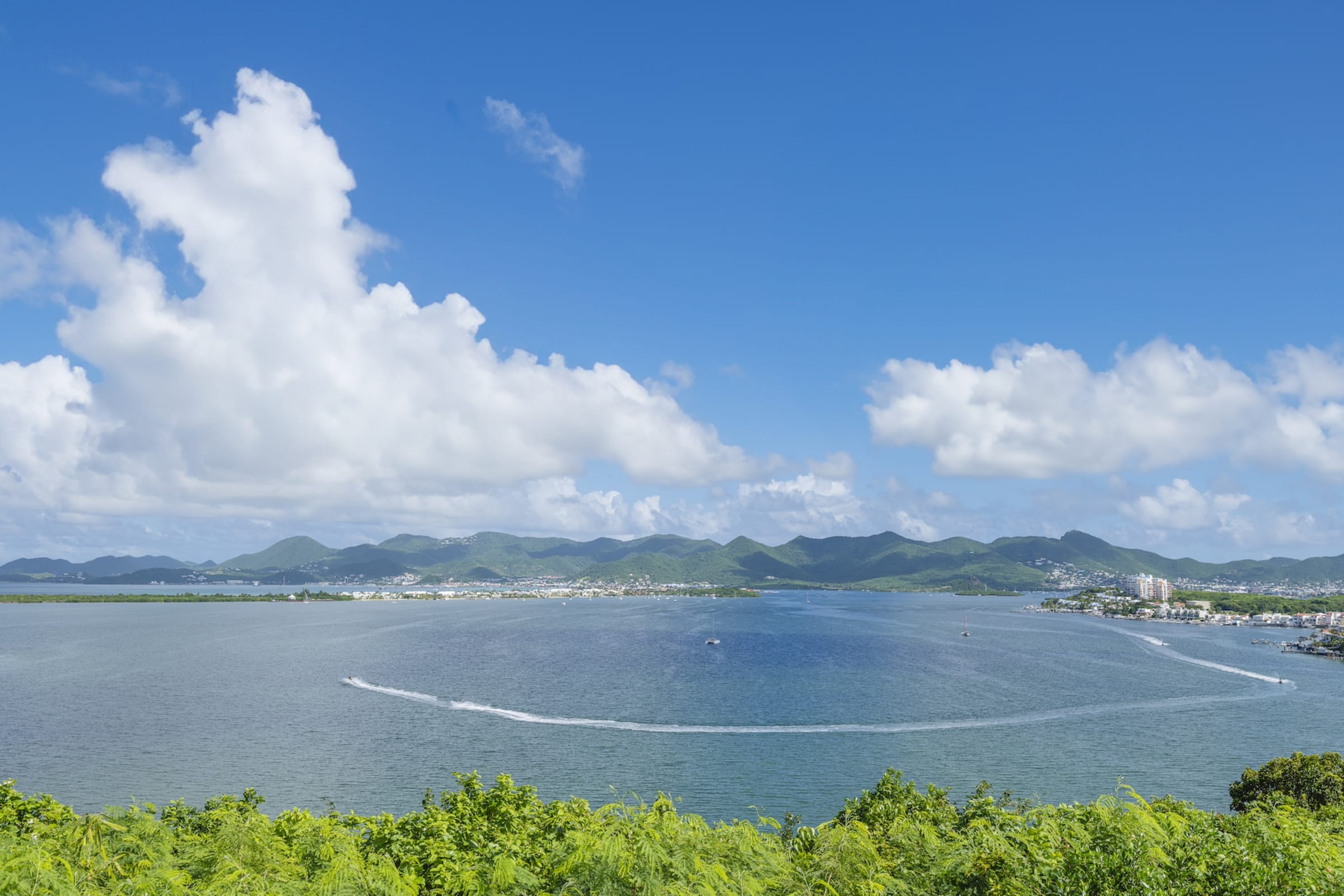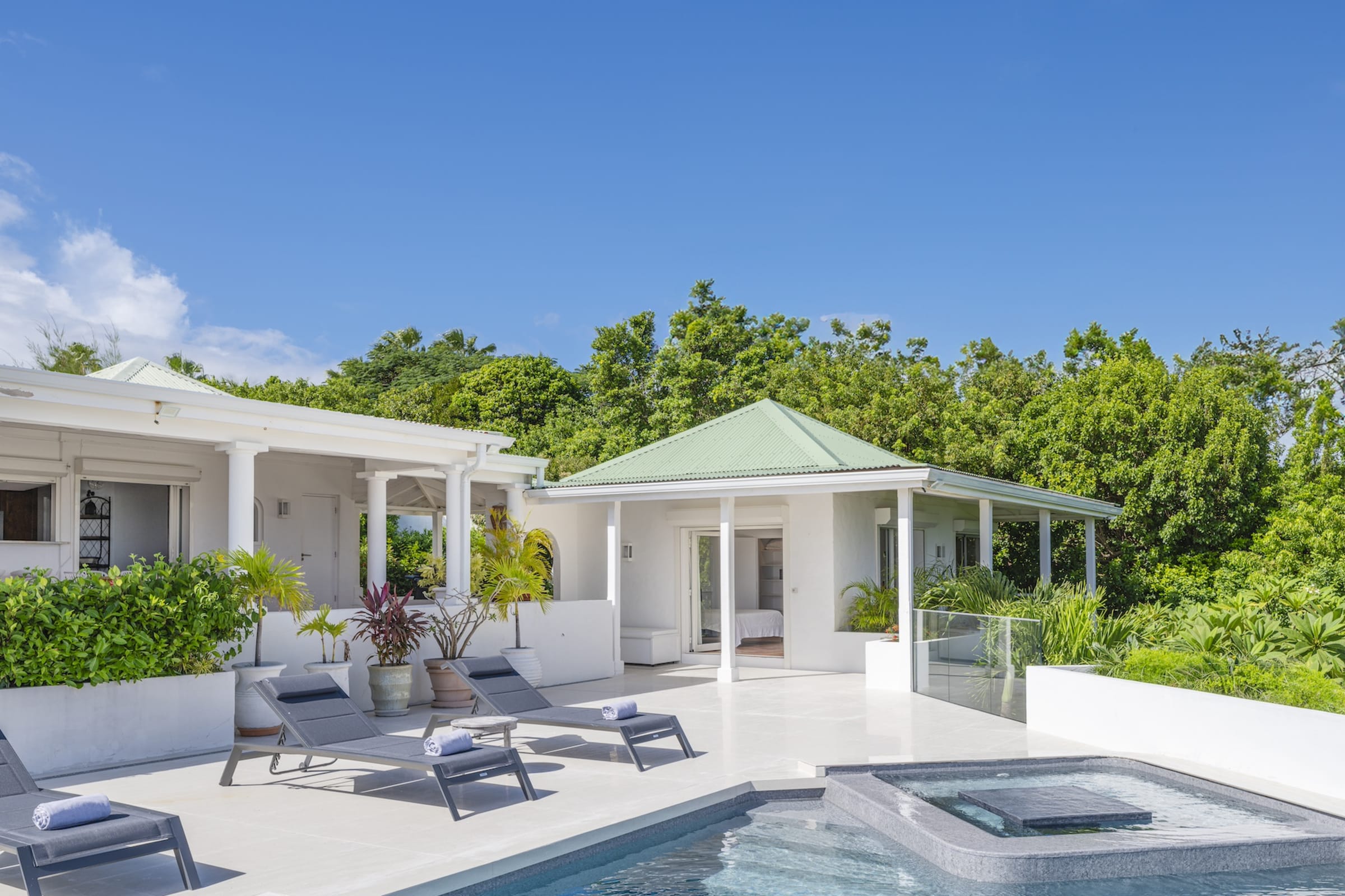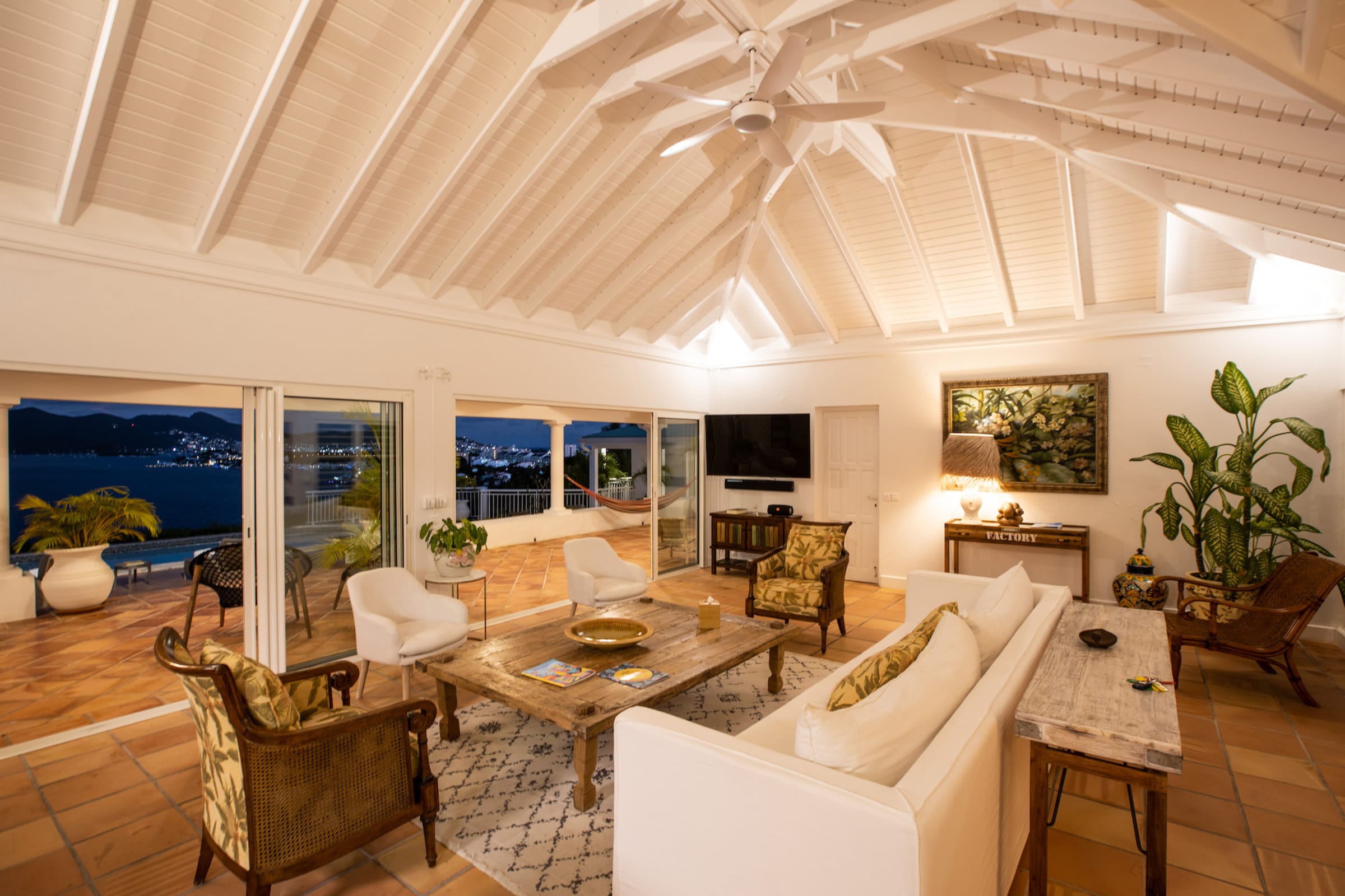 This cliff-side villa offers amazing views of the Lagoon and the gorgeous verdant mountains of St. Martin.