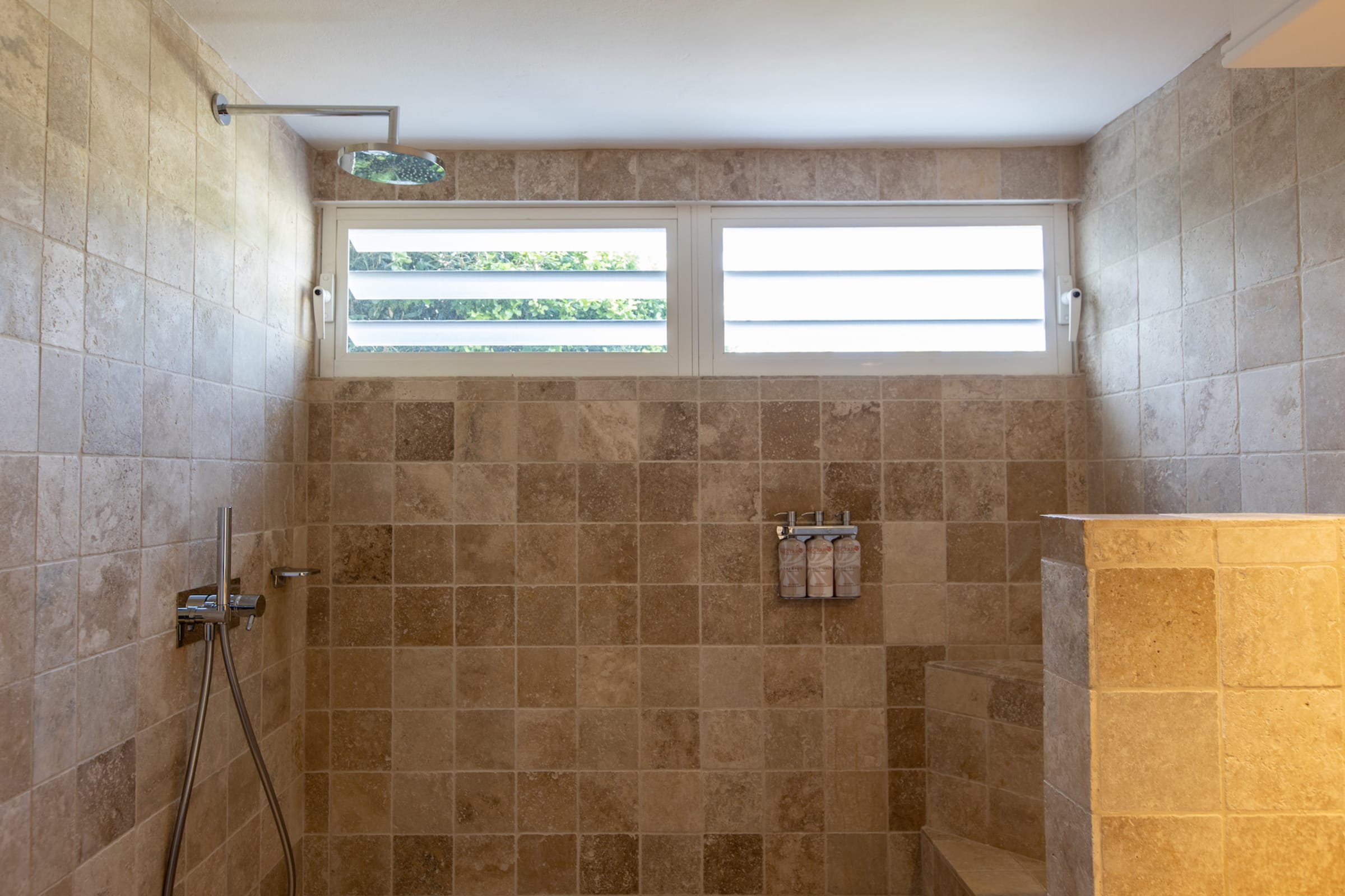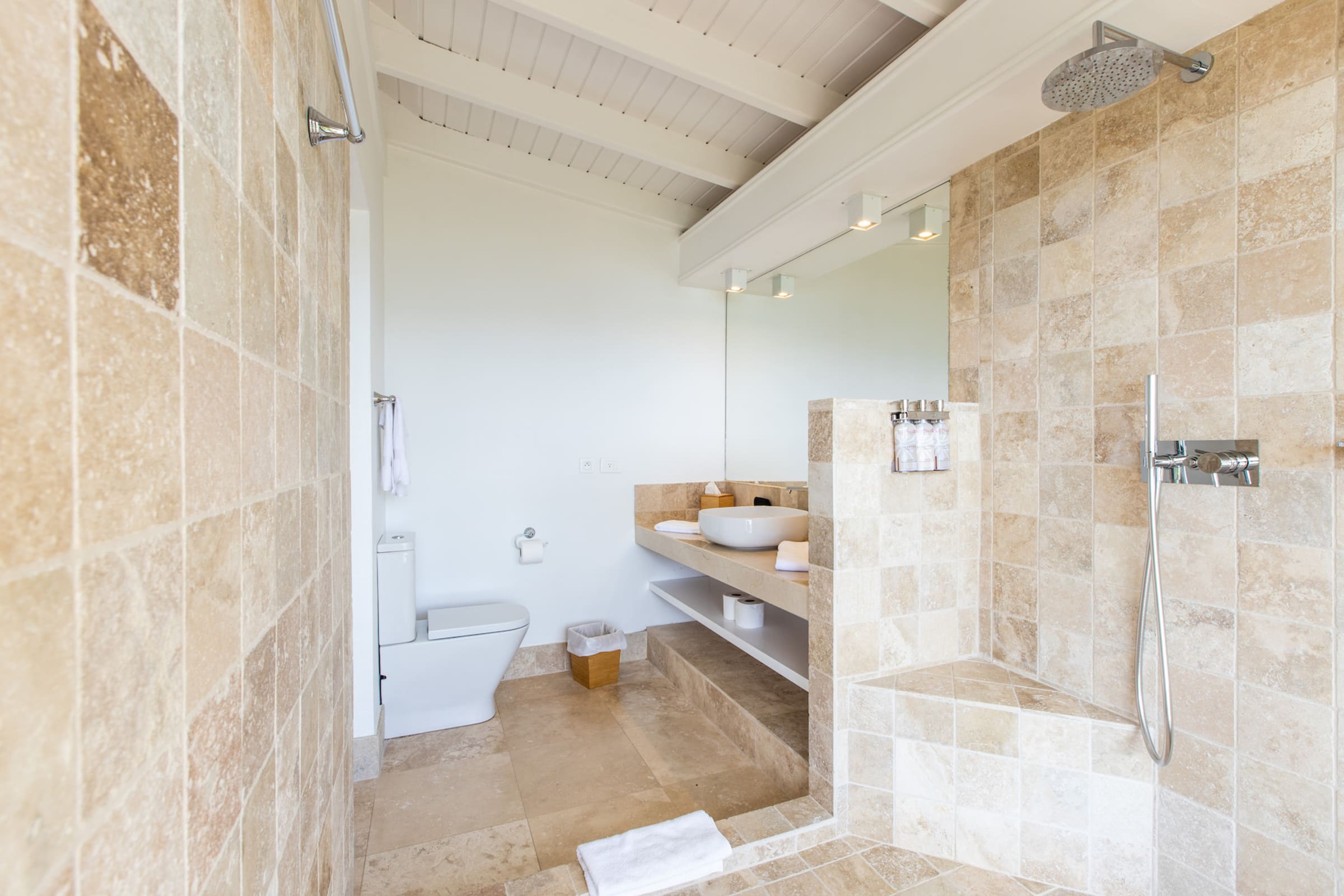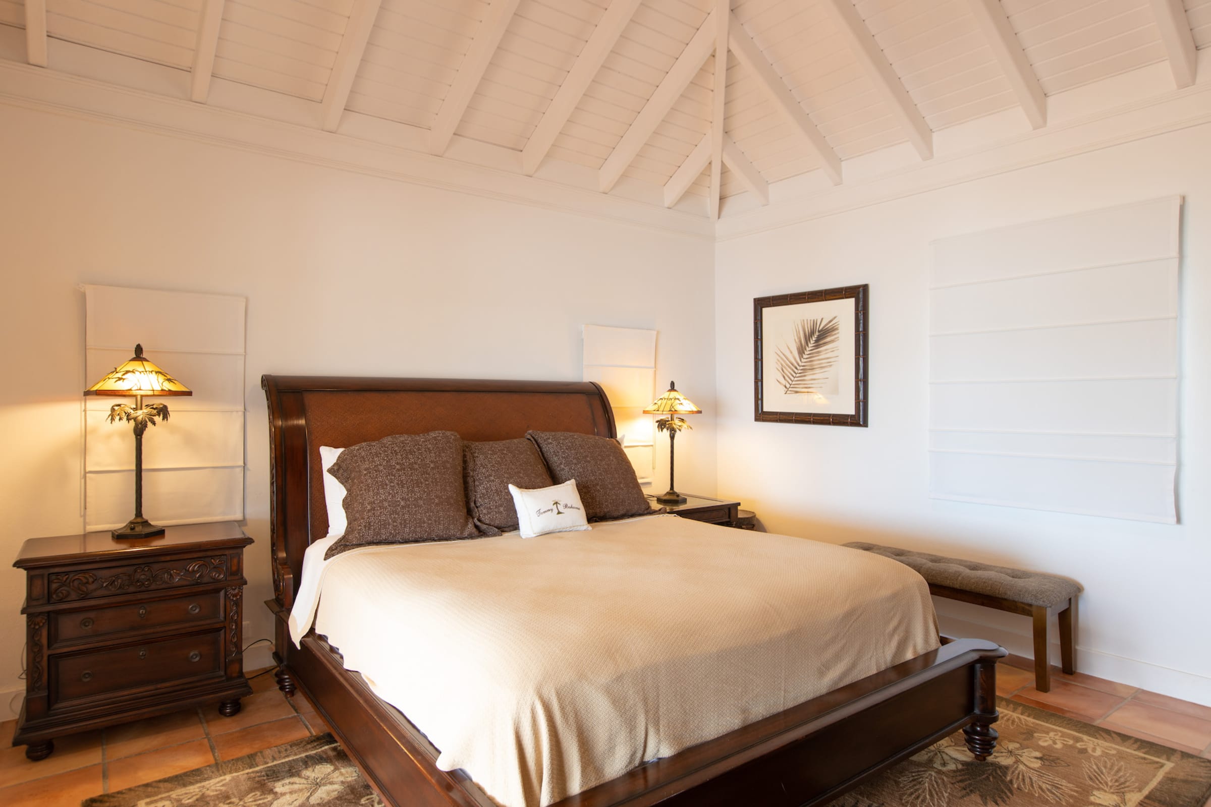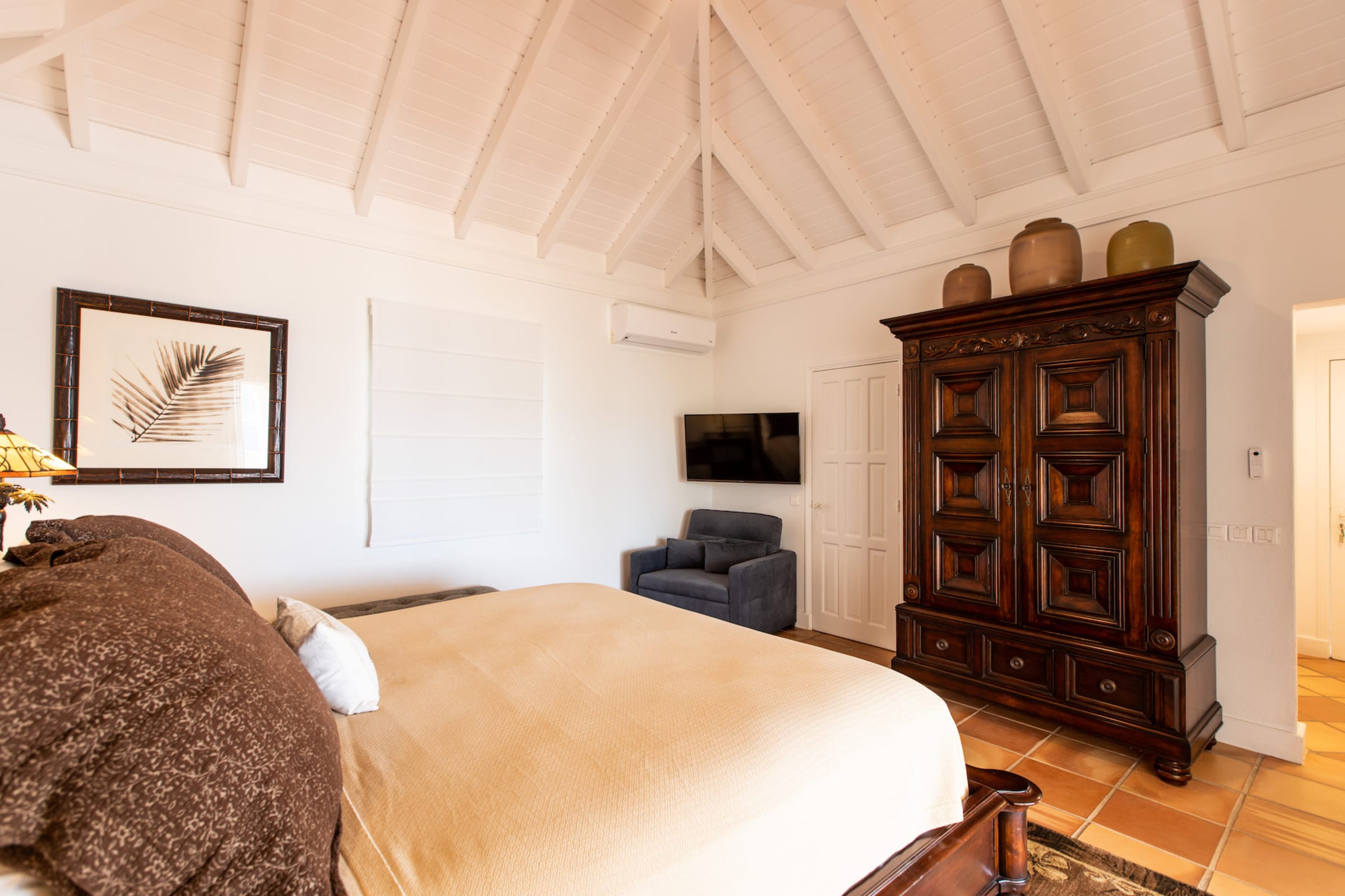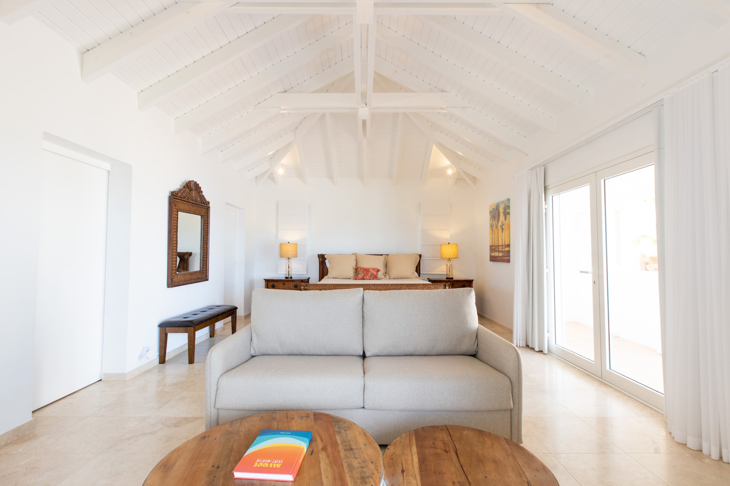 The indoors living quarters commune effortlessly with the ample and elegantly furnished terrace that is the preamble to the stunning outdoor swimming pool. The pool has an inset small pool with a table, allowing guests to spend a carefree day as they soak in the warm Caribbean sun while enjoying the views from its gorgeous setting.