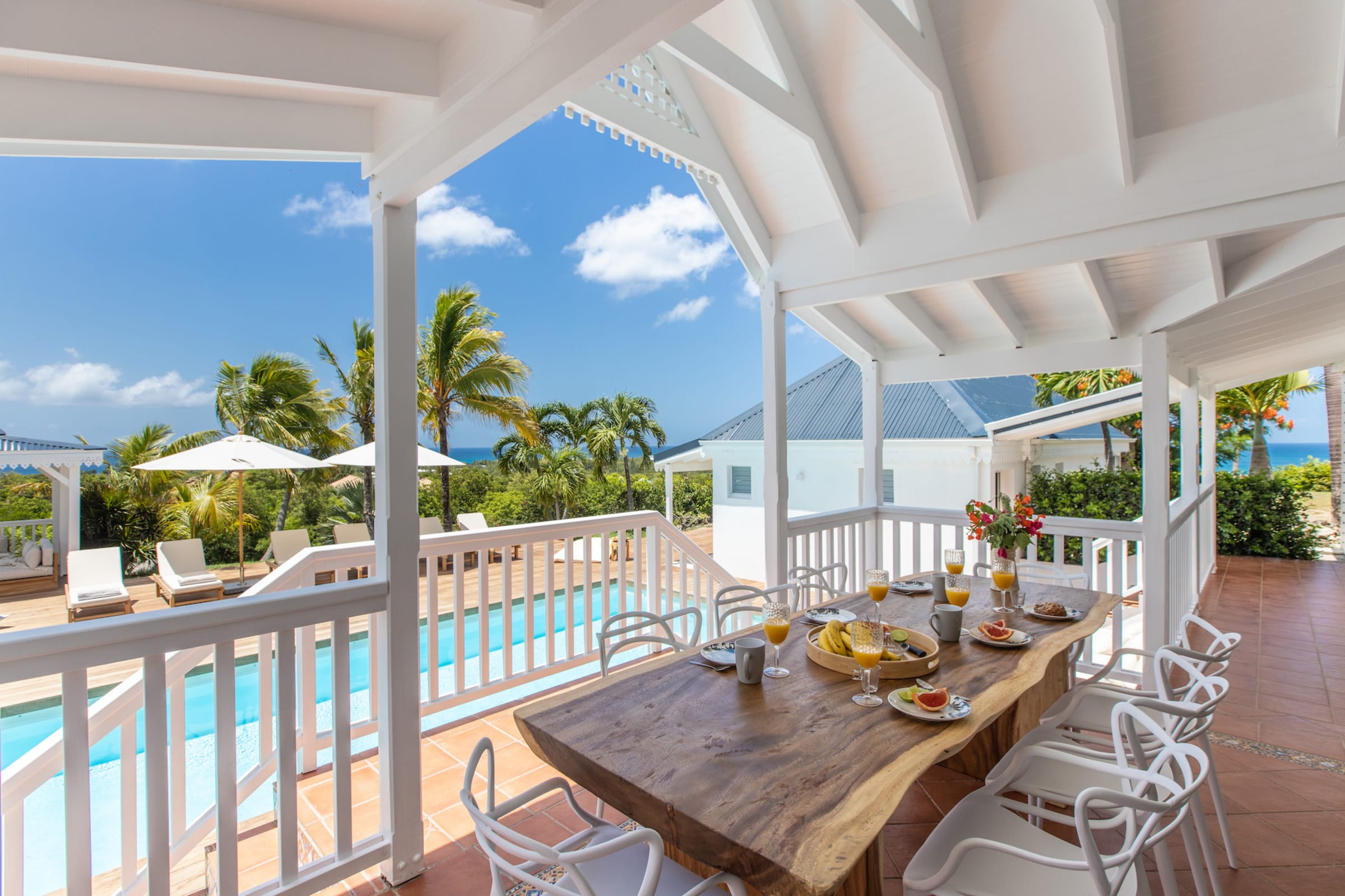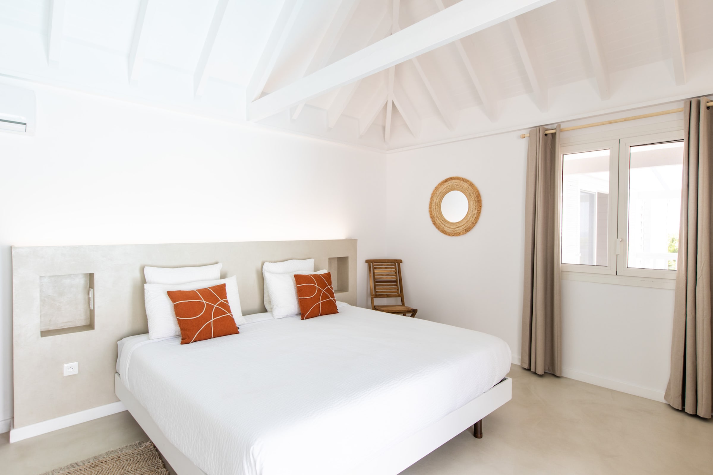 Upon stepping into Villa Coco Paillette, guests are immediately struck by the villa's contemporary Caribbean chic design. The interiors have been meticulously crafted to harmonize with the natural beauty of the surroundings. Vaulted ceilings, an open floor plan, and large glass doors seamlessly blend indoor and outdoor living, inviting the island's gentle breezes and sunlight to permeate every corner.