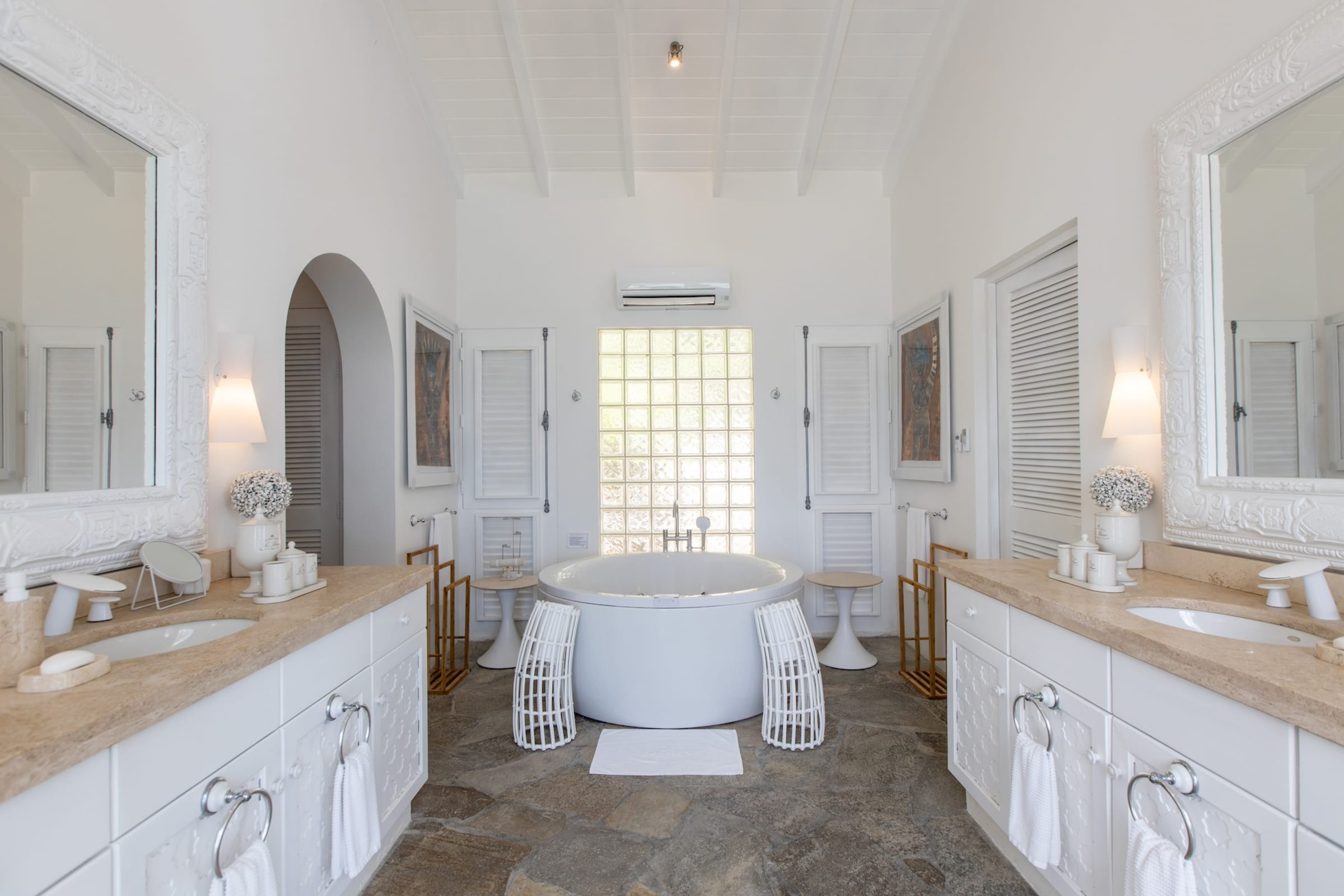 Each of the six spacious bedrooms is a sanctuary of comfort and style, with king-size beds in every room and private terraces overlooking the turquoise waters of the Caribbean. The bathrooms reflect the elegance and modernity of this villa, offering every comfort to its guests, who will have the luxury of indoor and outdoor showers at their convenience.