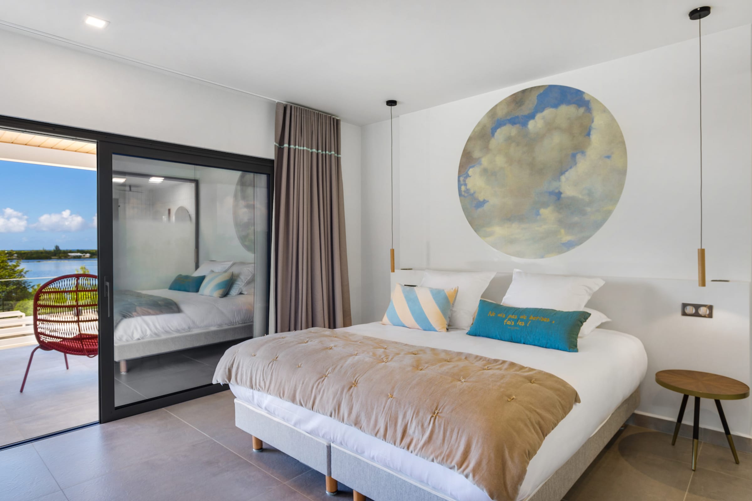 Upon entering this opulent sanctuary, you are greeted by five luxurious bedrooms, each offering a private oasis. The bedrooms are thoughtfully designed with amenities such as private bathrooms, outdoor shower, air conditioning, smart TVs, king-size beds, and secure safes.
