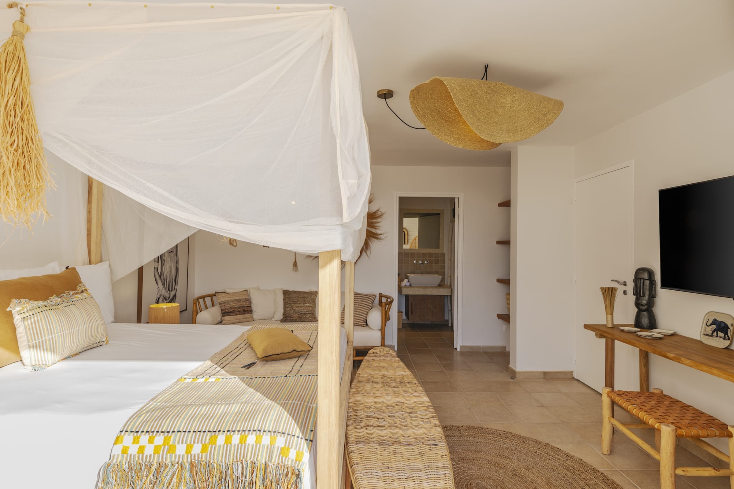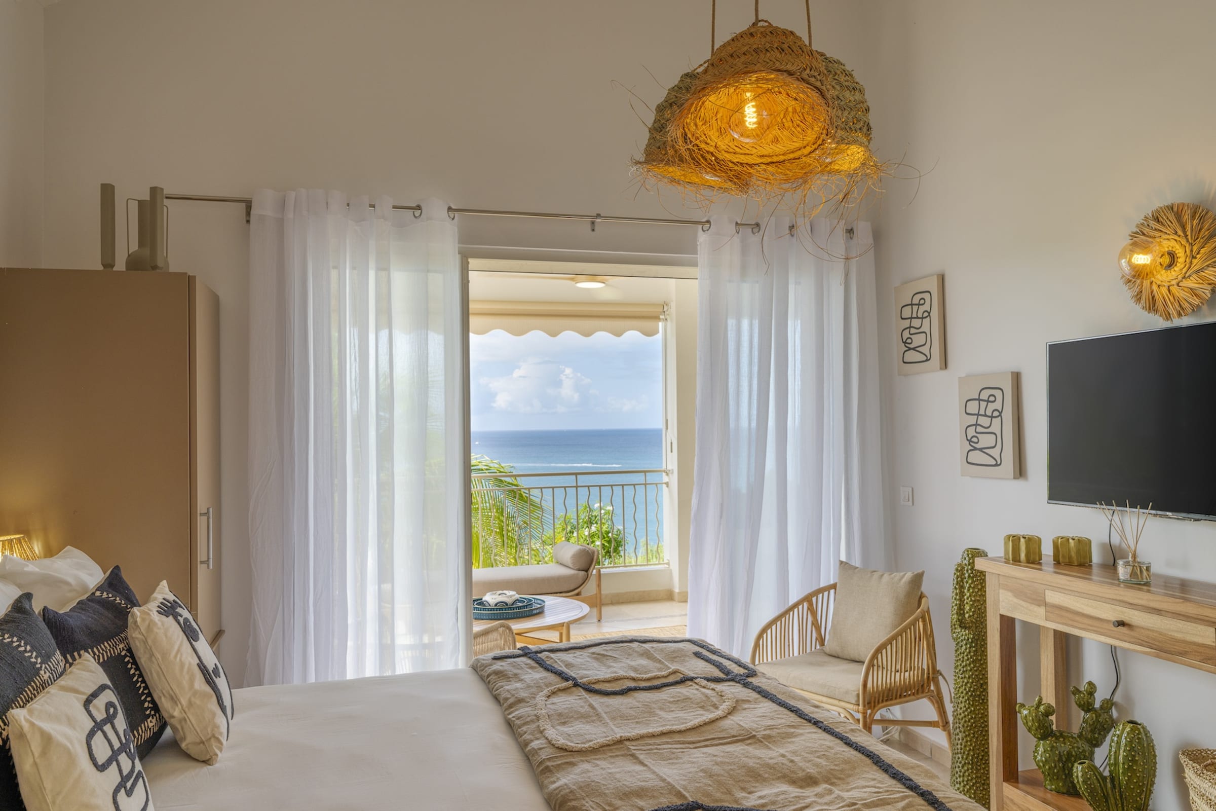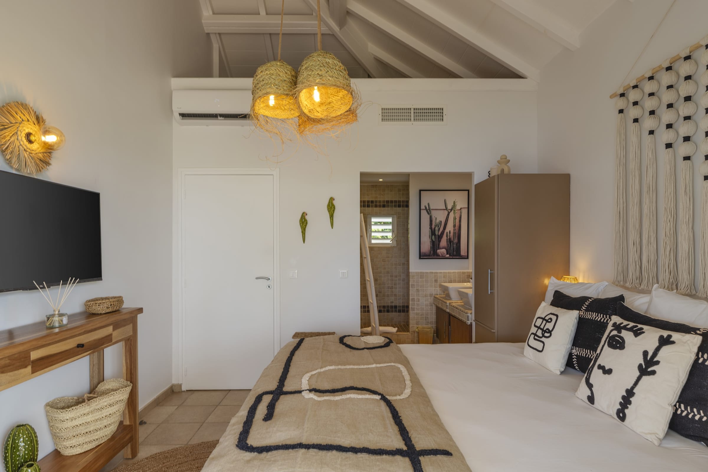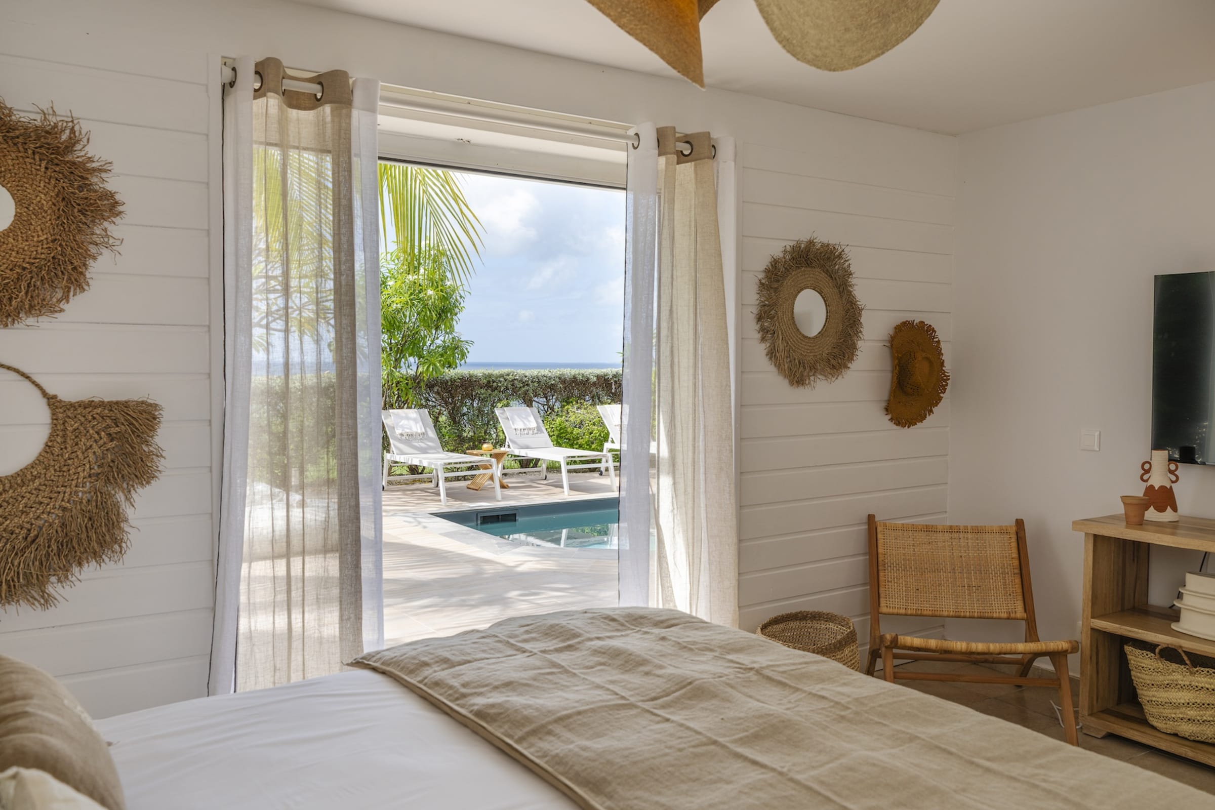 Designed across two levels, Villa Chez Paulette captivates with its contemporary design and spacious layout. Upon arrival, a bright and airy living area opens onto a large terrace, perfect for admiring sunsets or sharing unforgettable moments with family and friends. On this same level, a stylishly appointed bedroom ensures both comfort and convenience, close to the communal living spaces.