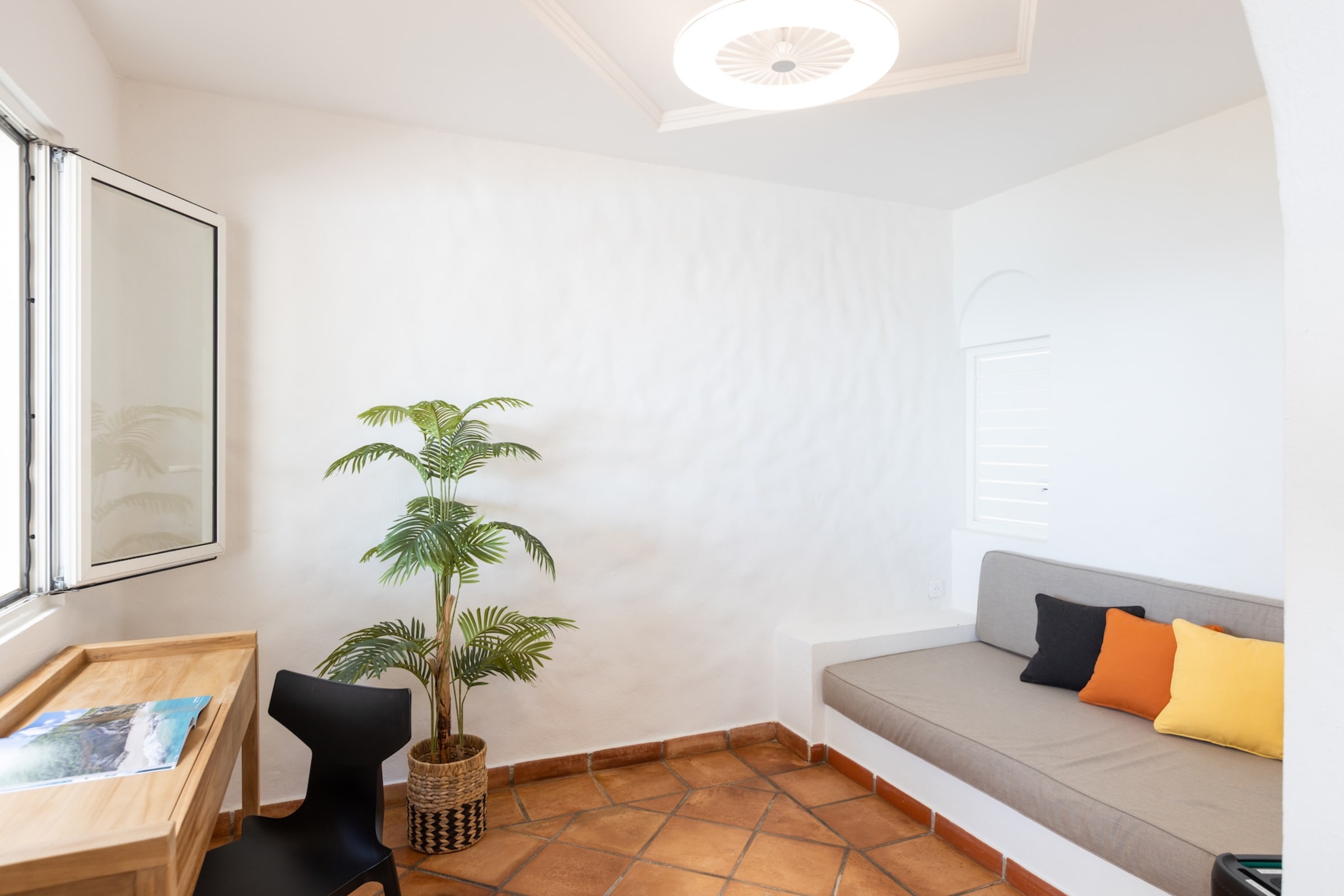 The bright and airy living room is decorated with contemporary furnishings, creating a warm and soothing atmosphere. The open-concept kitchen, fully equipped, allows you to prepare gourmet meals while enjoying the spectacular views that stretch out before you.