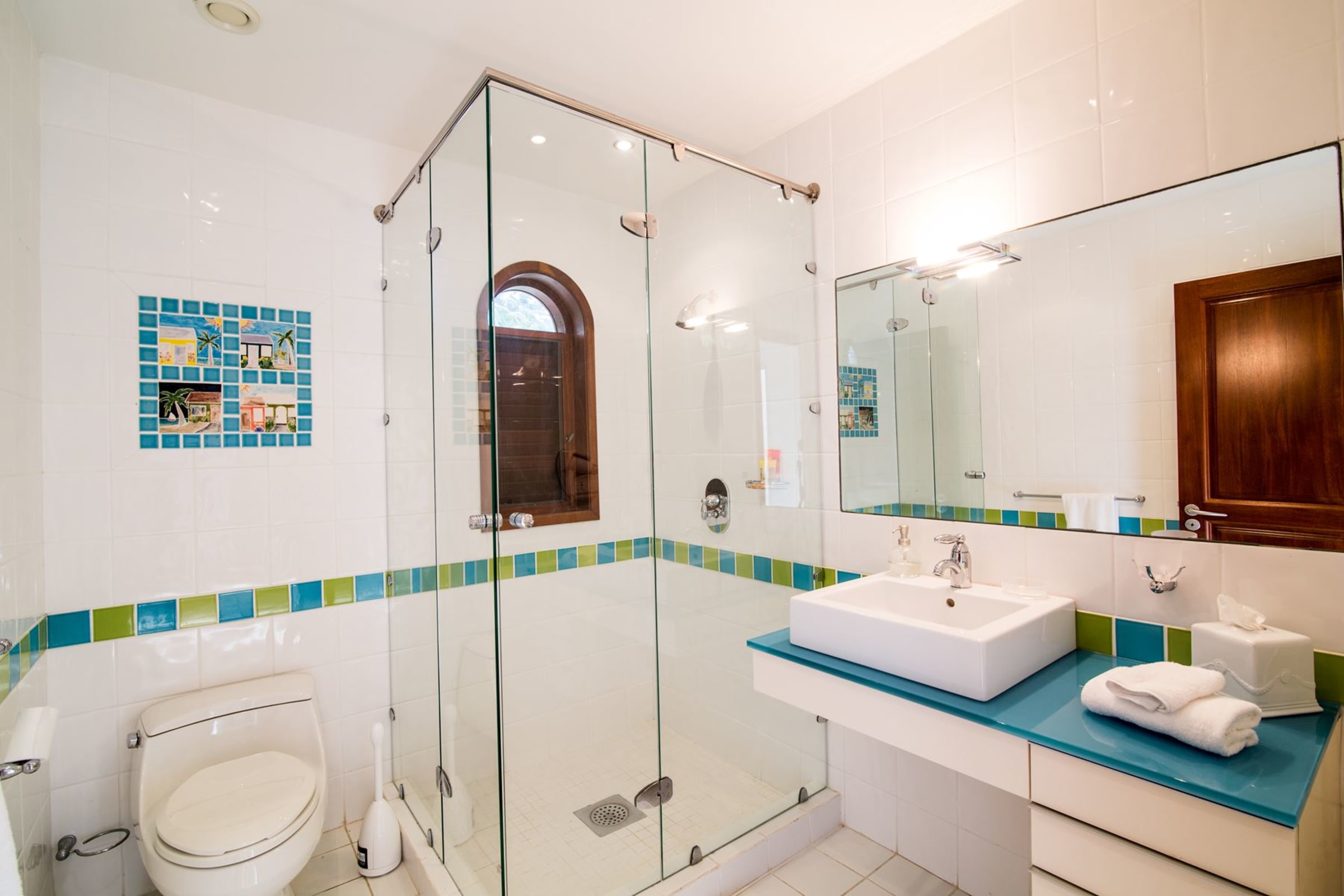 Each of the bedrooms in the villa is accompanied by its own en-suite bathroom, with seven of them also featuring an outdoor shower. This blend of indoor and outdoor living spaces allows guests to fully immerse themselves in the beauty of the surroundings.