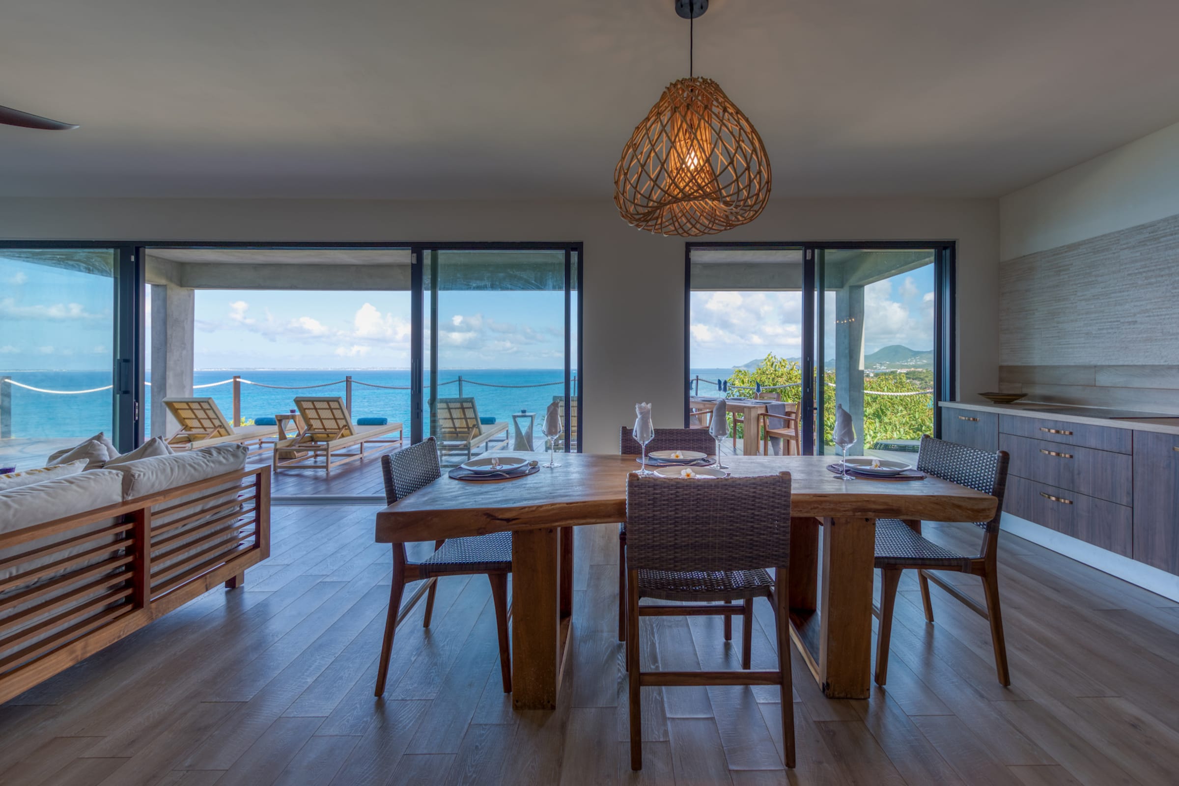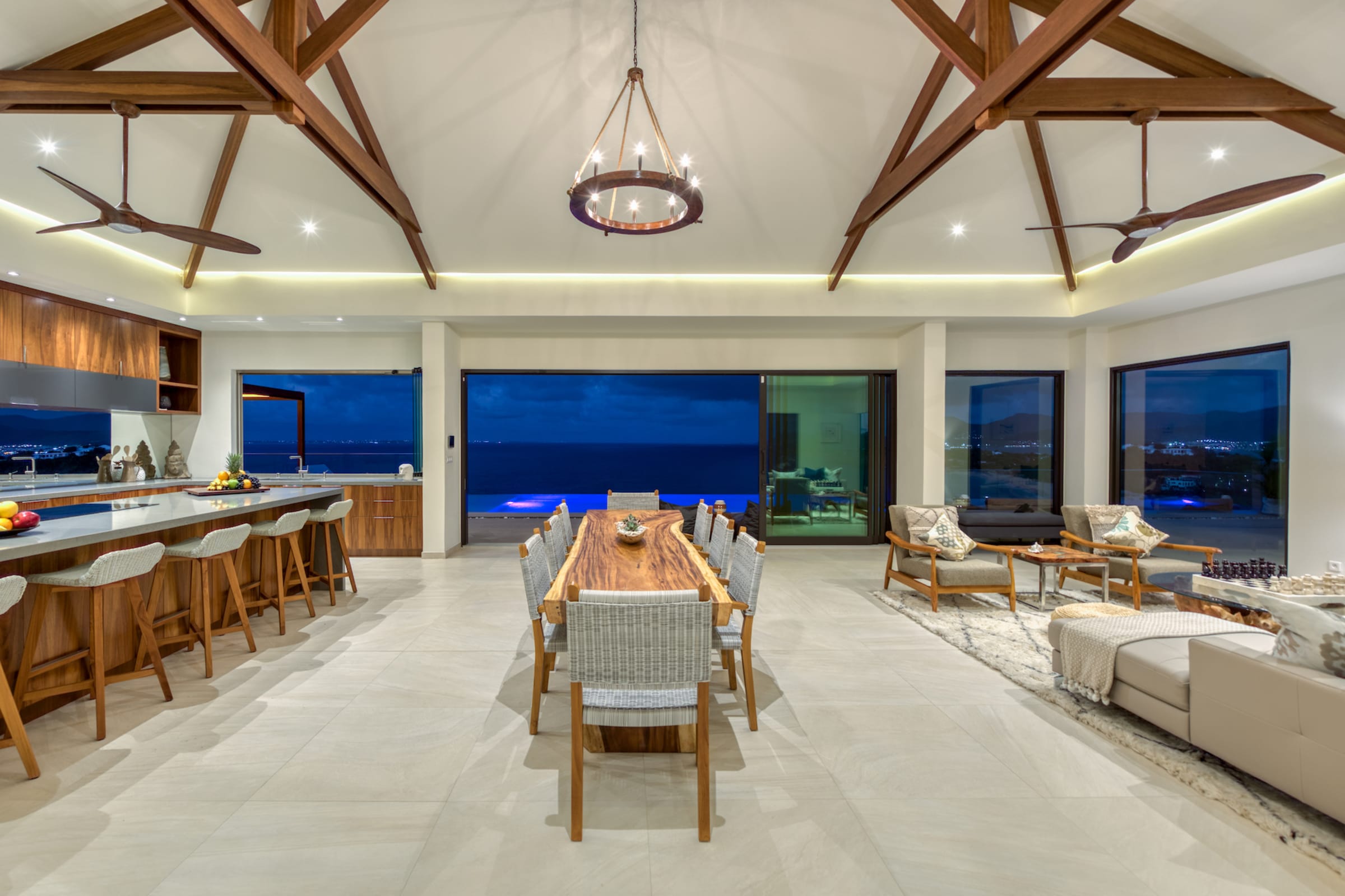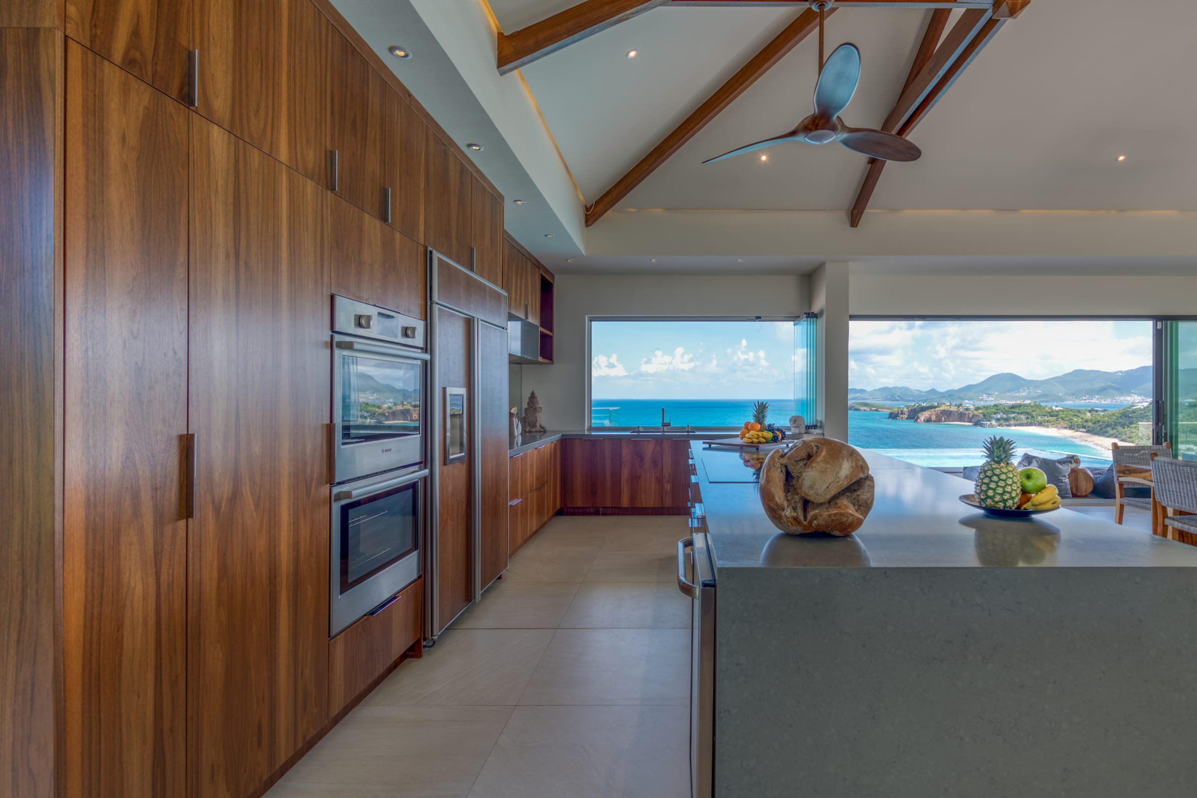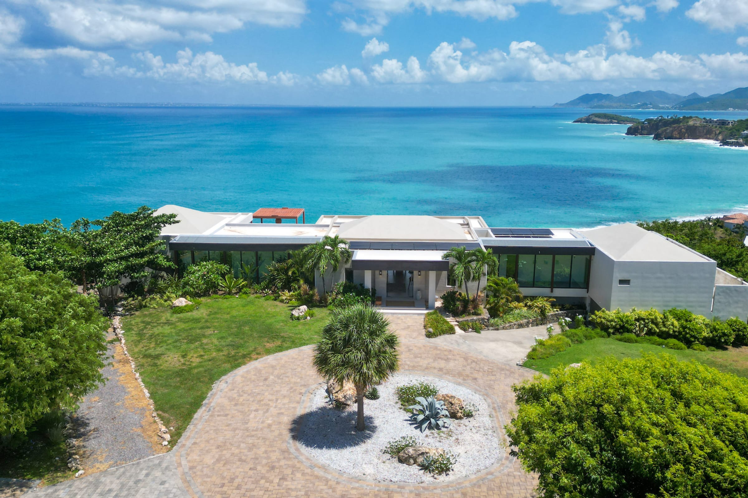 Villa Amandara is a true architectural gem, seamlessly blending modern aesthetics with the island's natural beauty. The use of natural stone, wood, and glass throughout the property creates a harmonious connection between indoor and outdoor spaces. The villa's exterior features sleek lines, lush landscaping, and a dramatic infinity-edge pool that seems to merge with the ocean beyond. Please note that the pool is heated from December 16th to April 15th. Outside of this period, heating the pool is optional and comes with an additional cost of $350 per week.