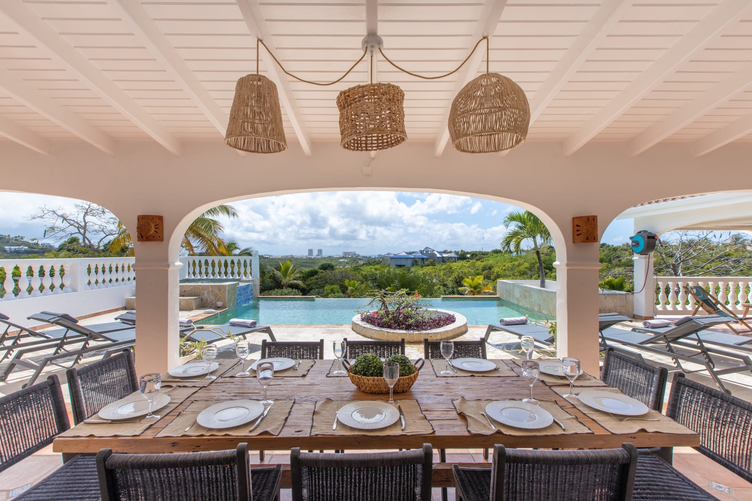 The villa's fully equipped kitchen will delight gourmet enthusiasts, offering them the opportunity to concoct meals to enjoy in the indoor or outdoor dining room. These convivial spaces are perfect for creating unforgettable memories with your loved ones.