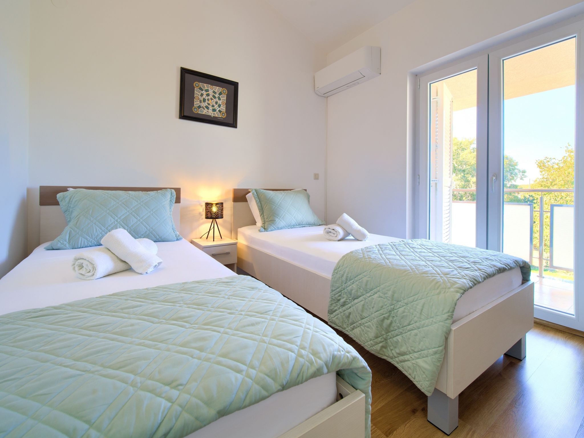 Walking paths partially through the woods all the way to Punat and Krk. Cosy semi-detached house "Bernarda", 2 storeys. 120 m from the centre of Kornić, 3.5 km from the centre of Punat, in a sunny position, 900 m from the sea, 900 m from the beach. Private: property 300 m2 (fenced). Outdoor shower, hot tub. In the house: internet access, washing machine, tumble dryer. Parking (for 2 cars) at the house on the premises. Shop 110 m, restaurant, café 100 m, bus stop 1.3 km, pebble beach, public bathing area 900 m. Marina 2.5 km, walking paths from the house, cycle lane 200 m. Nearby attractions: Wakeboard Cable Krk 1.5 km, Diving club 1.5 km, Biserujka cave, Franciscan monastery island Košljun 3 km, The Frankopan castle Krk 8 km. Groups of teenagers on request only.