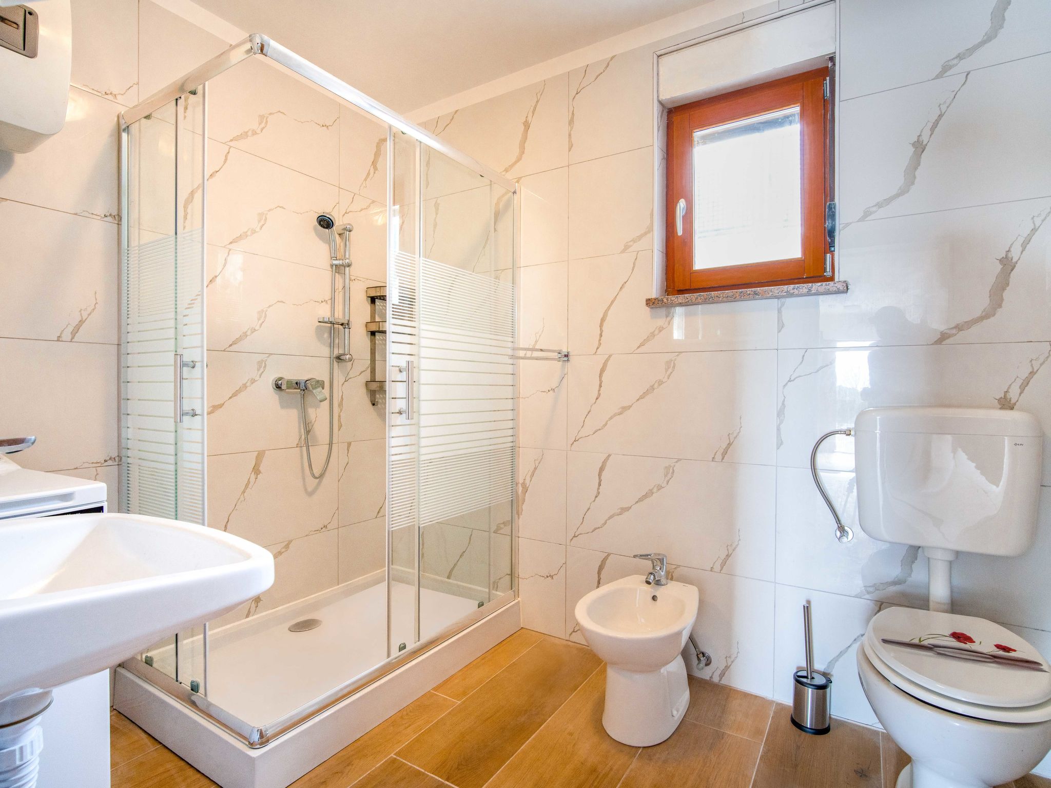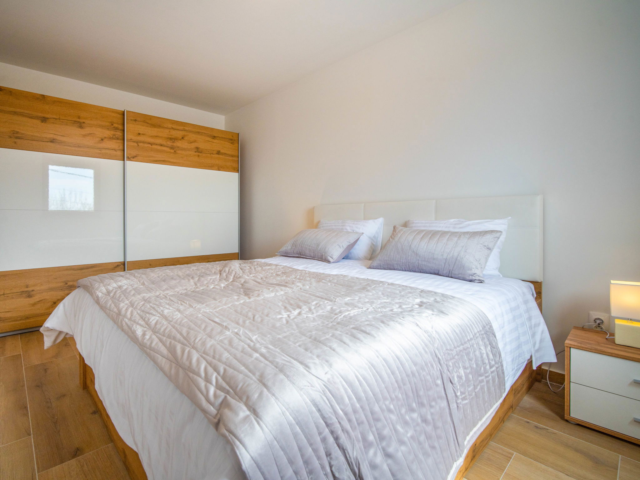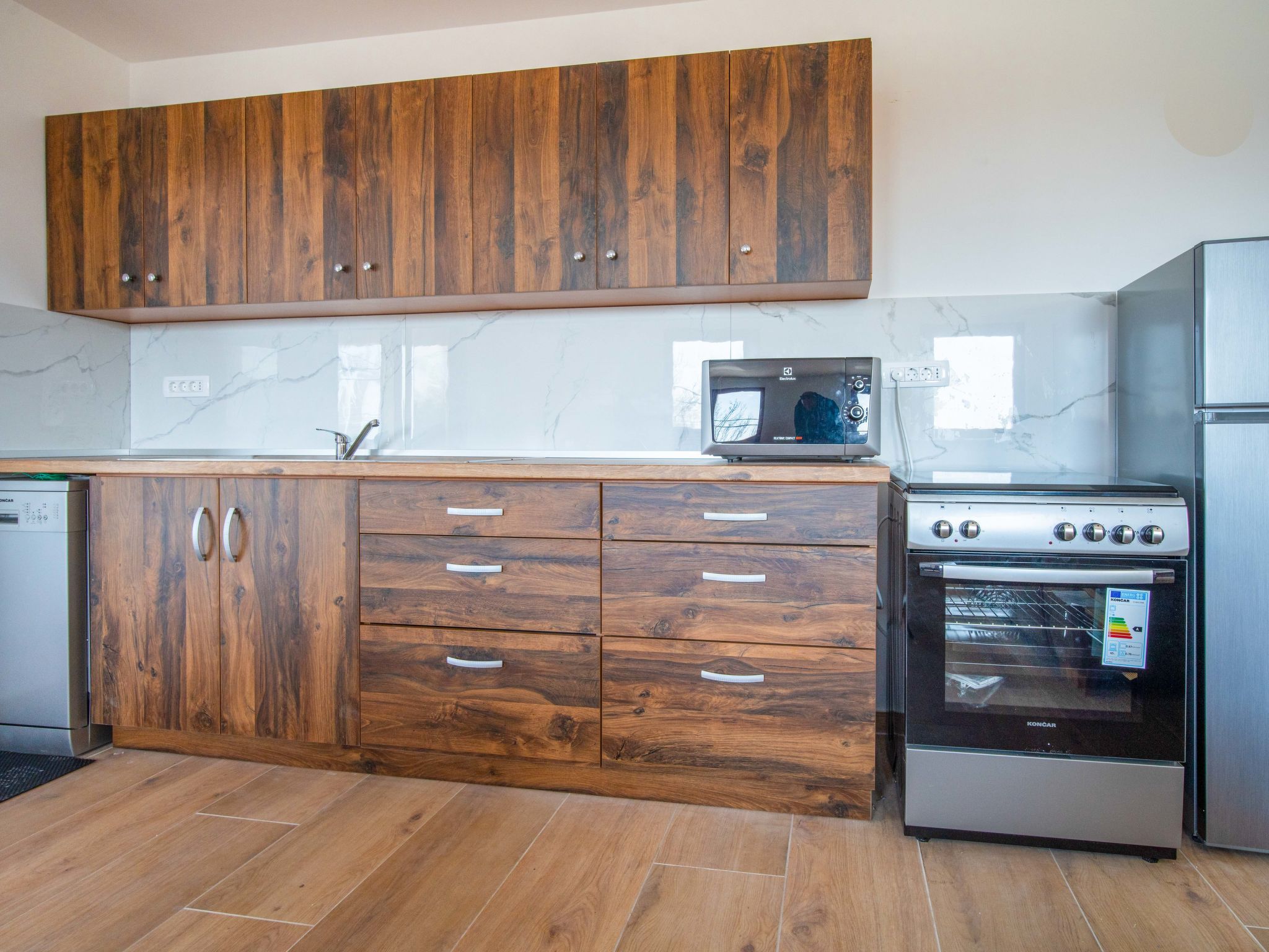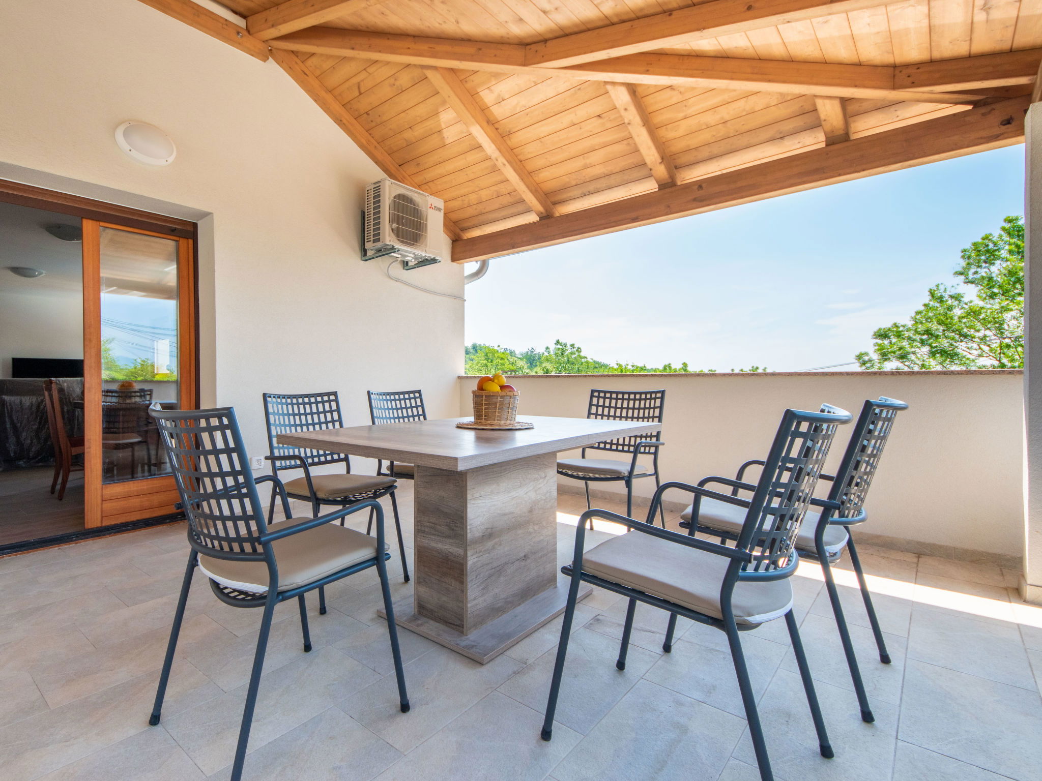 Kastav 7 km from Opatija: Cosy single-family house "Nola", 2 storeys, built in 2023. In the hamlet Marčelji 6 km from the centre of Kastav, 10 km from the centre of Rijeka, 13 km from the centre of Opatija, in a sunny, elevated position, 11 km from the sea, 11 km from the beach, in the countryside. Private: property 860 m2 (fenced), swimming pool angular, heated (6 x 3 m, depth 140 cm, seasonal availability: 01.May. - 15.Oct.) with internal staircase. Outdoor shower, terrace (60 m2), barbecue, pool maintenance by the owner/gardener. In the house: internet access, washing machine, tumble dryer. Parking (for 4 cars) at the house on the premises. Shop 900 m, supermarket 2.2 km, restaurant 1.9 km, bus stop 500 m, pebble beach 11 km, public bathing area 11 km, concrete beach 11 km.