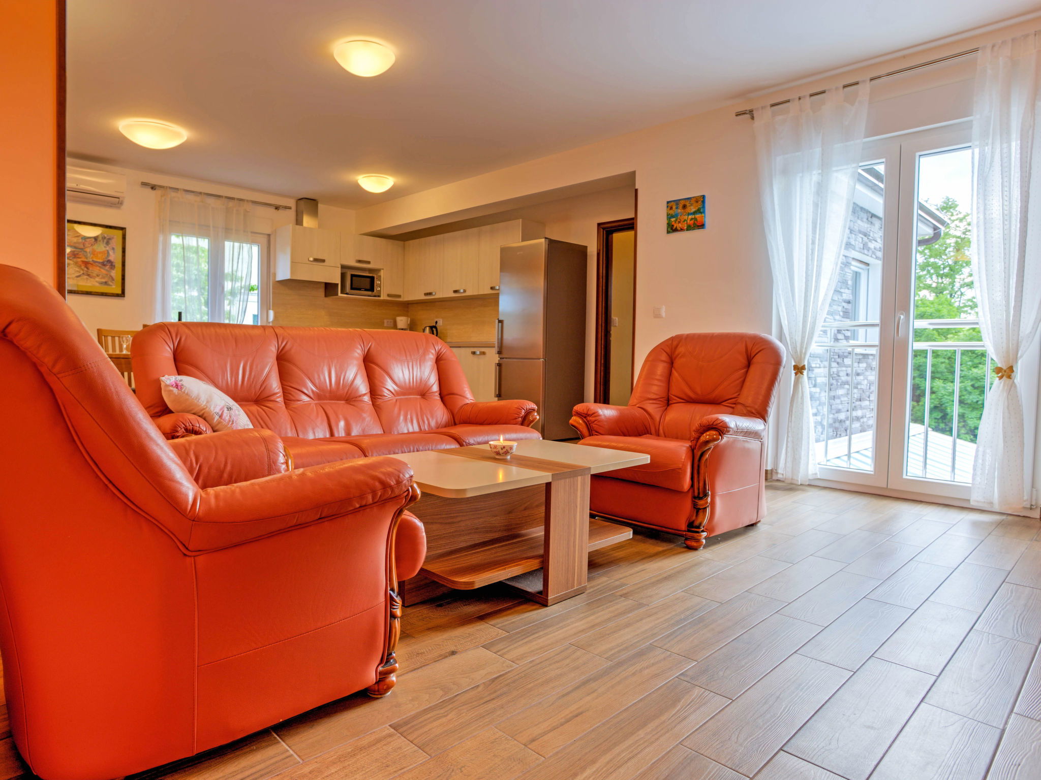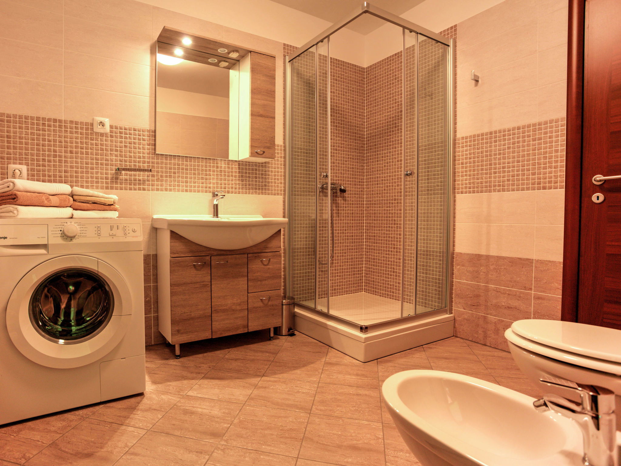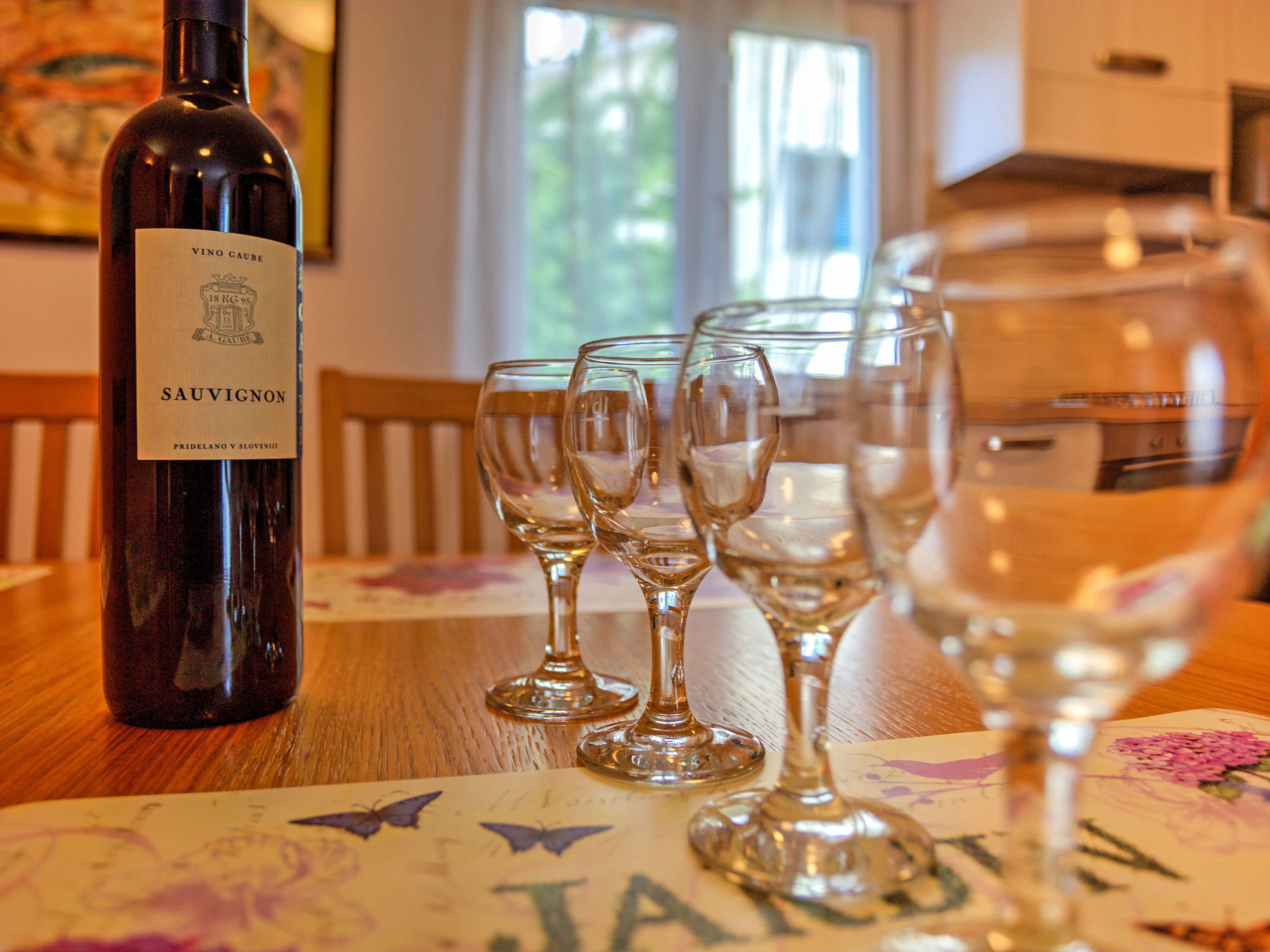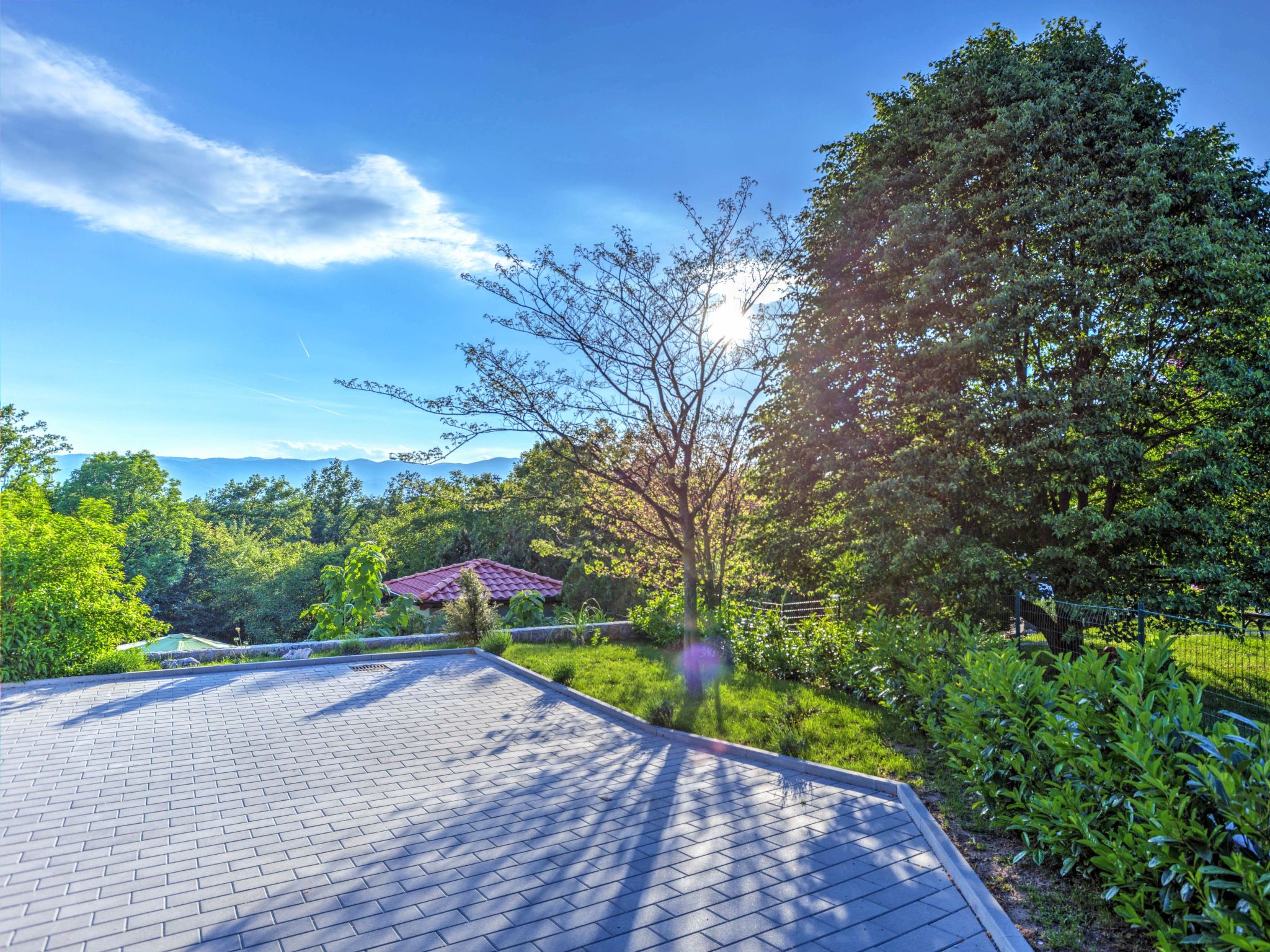 Kastav 7 km from Opatija: Single-family house "Dante", 2 storeys. In the hamlet Marčelji 6 km from the centre of Kastav, 10 km from the centre of Rijeka, 12 km from the centre of Opatija, in a quiet, sunny position, 11 km from the sea, in the countryside. Private: property 1'600 m2 (fenced), swimming pool angular, heated (7 x 3 m, 24 m2, depth 140 cm, seasonal availability: 18.Apr. - 10.Oct.) with salt-electrolysis pool-cleaning system. Outdoor shower, terrace (100 m2), garden furniture, barbecue. In the house: internet access, sauna, washing machine. Parking (for 4 cars) at the house on the premises, single garage. Shop 150 m, restaurant 1.7 km, bus stop 300 m, pebble beach 11 km.