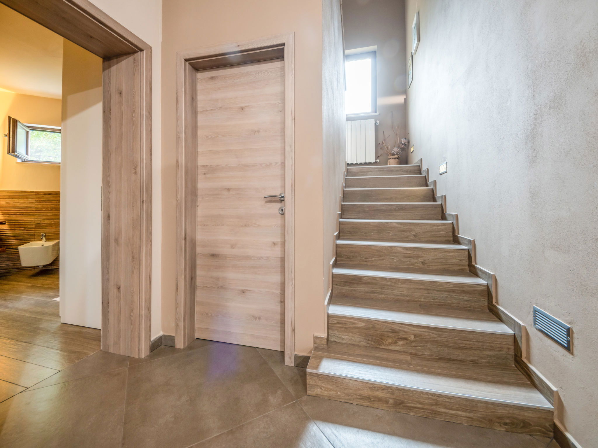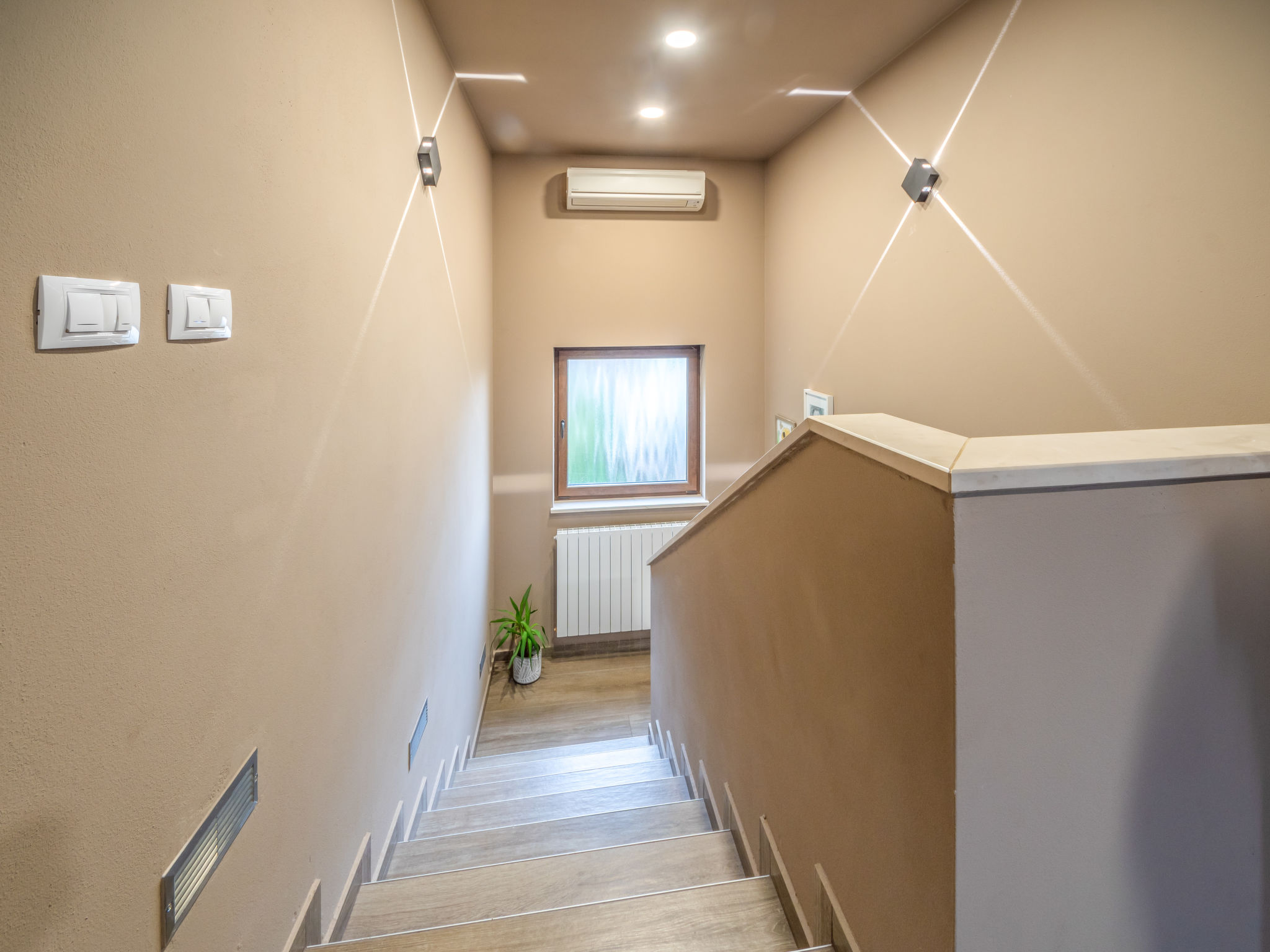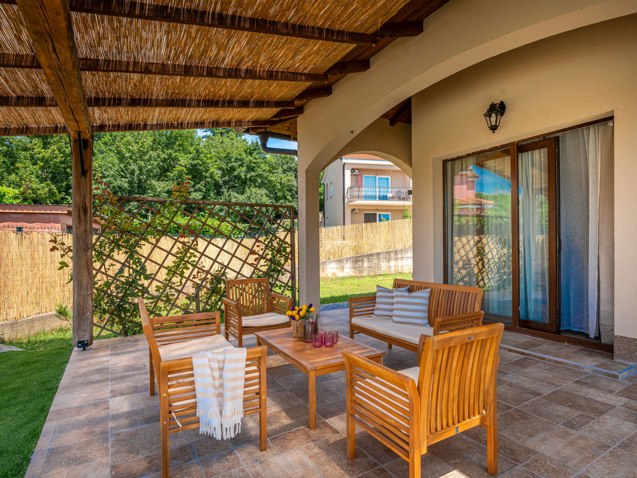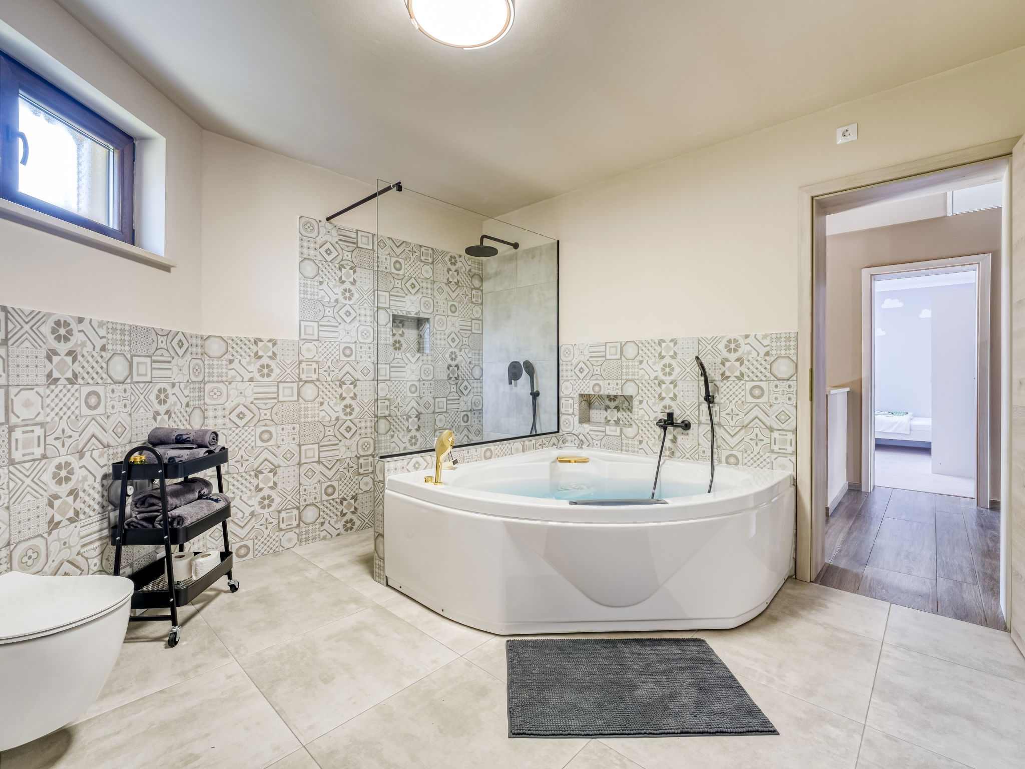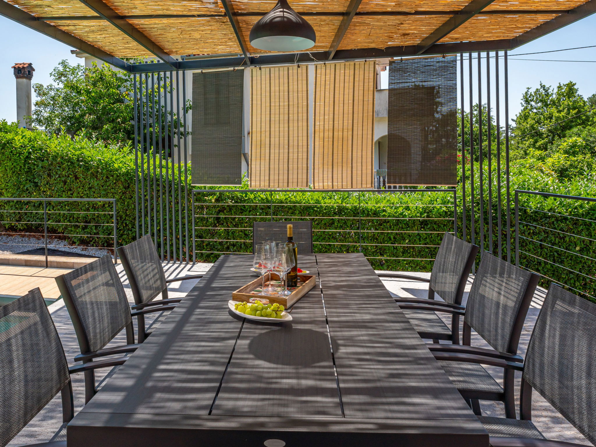Kastav 6 km from Opatija: Comfortable single-family house "Campanero", 2 storeys, built in 2023. In the hamlet Kudeji 2.4 km from the centre of Viškovo, 3.7 km from the centre of Kastav, 9 km from the centre of Opatija, in a sunny, elevated position, 8 km from the sea, 8 km from the beach, in a cul-de-sac. Private: property 900 m2 (fenced), garden with lawn 300 m2, swimming pool angular (6 x 6 m, depth 140 cm, seasonal availability: 01.Jun. - 30.Sep.). WC in the pool area, outdoor shower, terrace, garden furniture. In the house: internet access. Parking at the house on the premises. Supermarket 2.4 km, shopping centre 2.4 km, restaurant 1.8 km, bakery 2.4 km, café 2.4 km, bus stop 160 m, pebble beach 8 km (small), outdoor swimming pool 10 km, indoor swimming pool 10 km, public bathing area 10 km, concrete beach 8 km. Nearby attractions: Kuća halubajskega zvončara UNESCO 2 km. Groups of teenagers on request only. Part of the house is closed and unoccupied. The owner runs dry dock marine services. By groups of young people double deposit is requested on arrival.