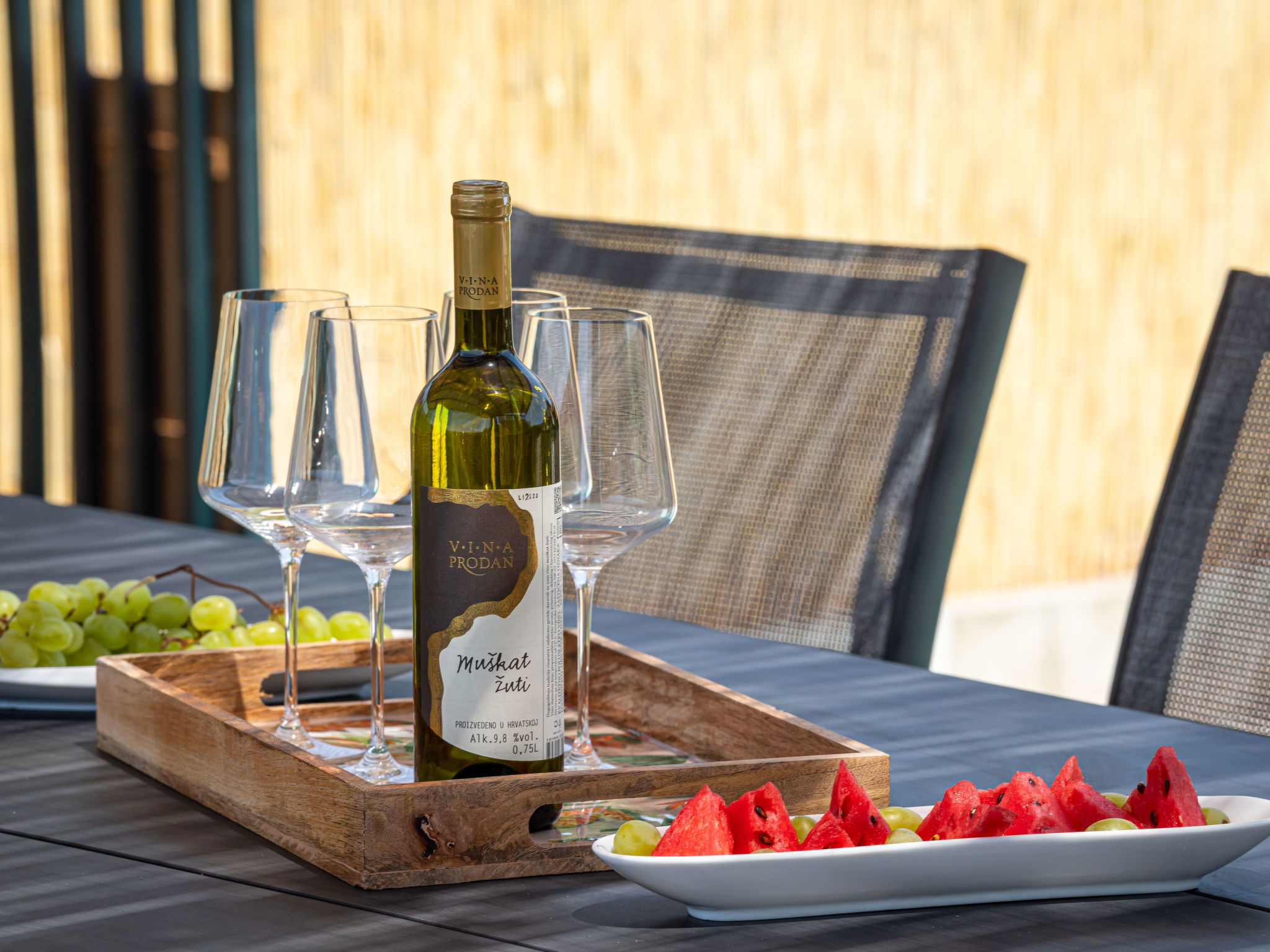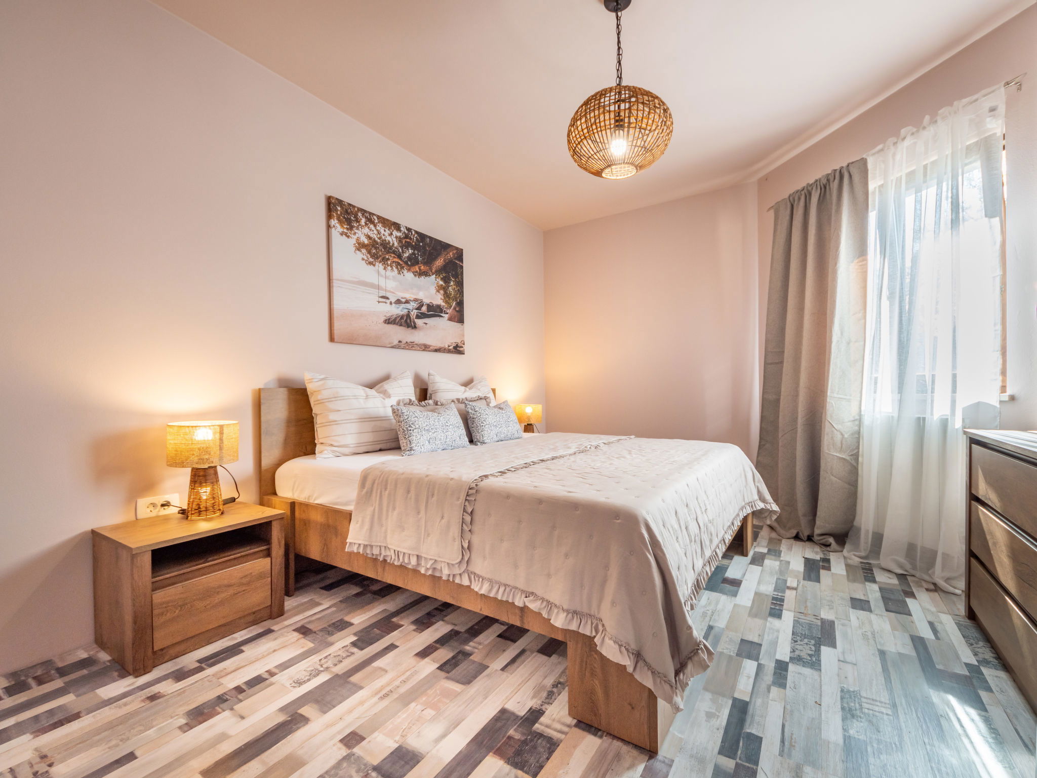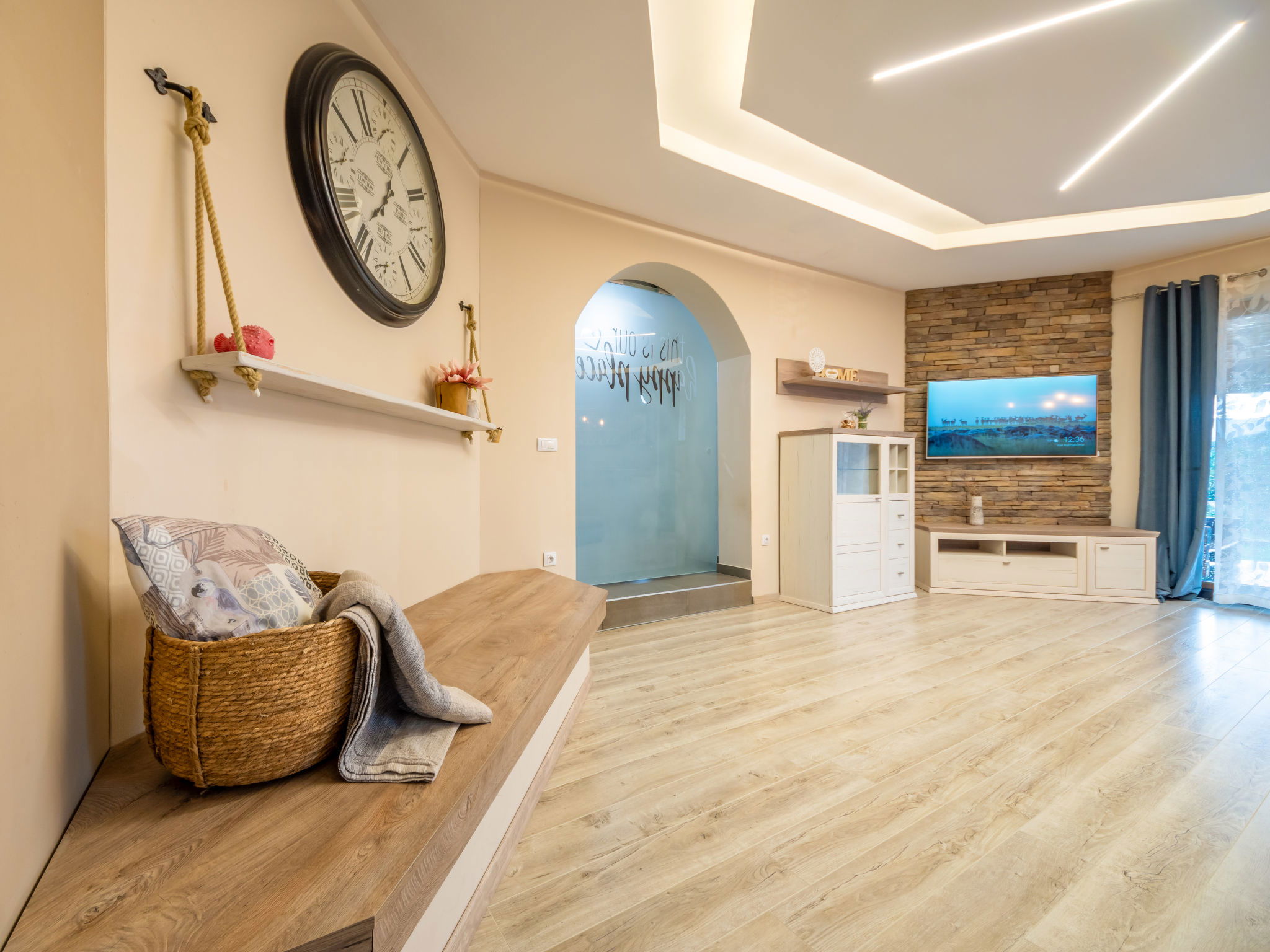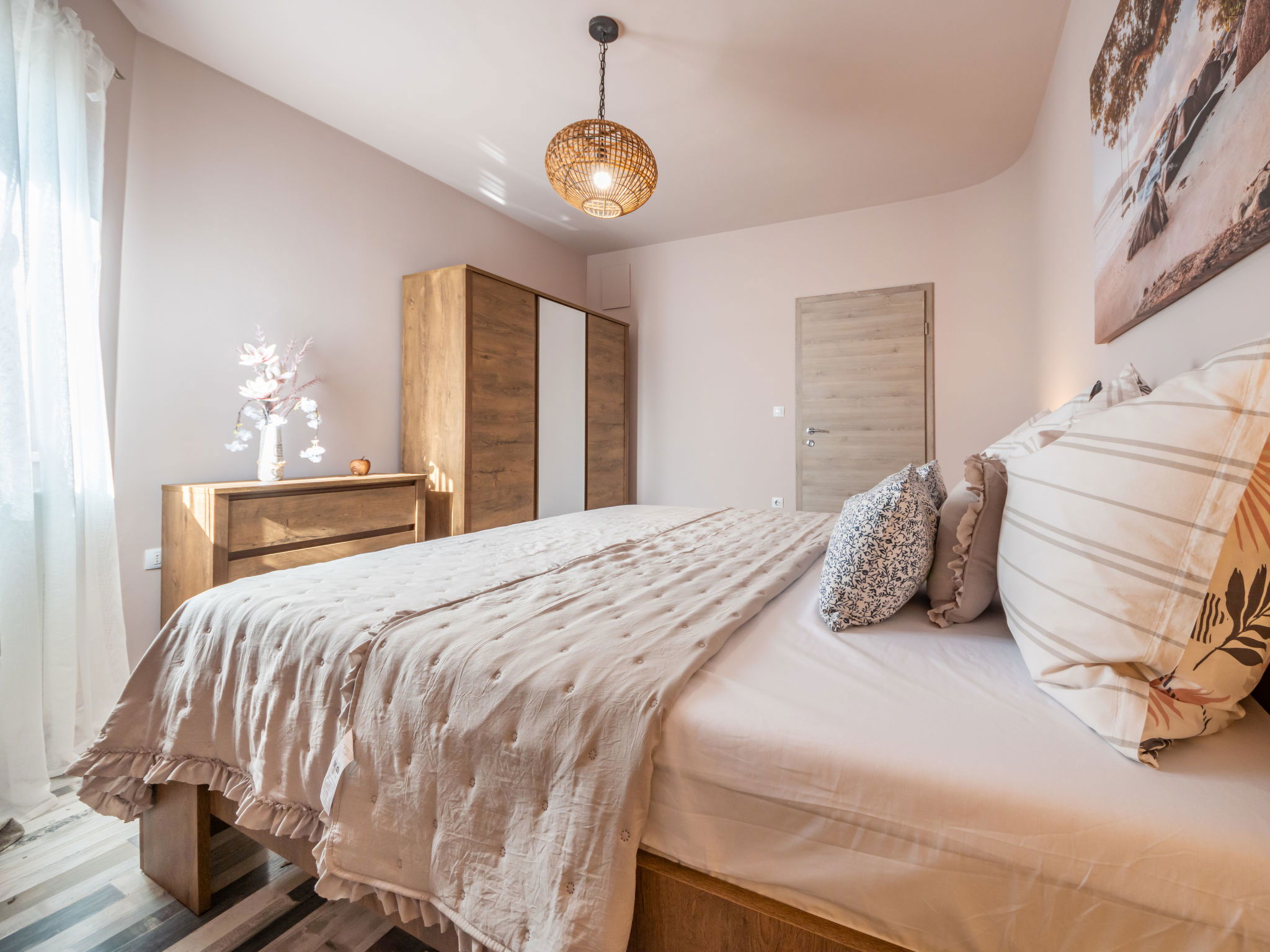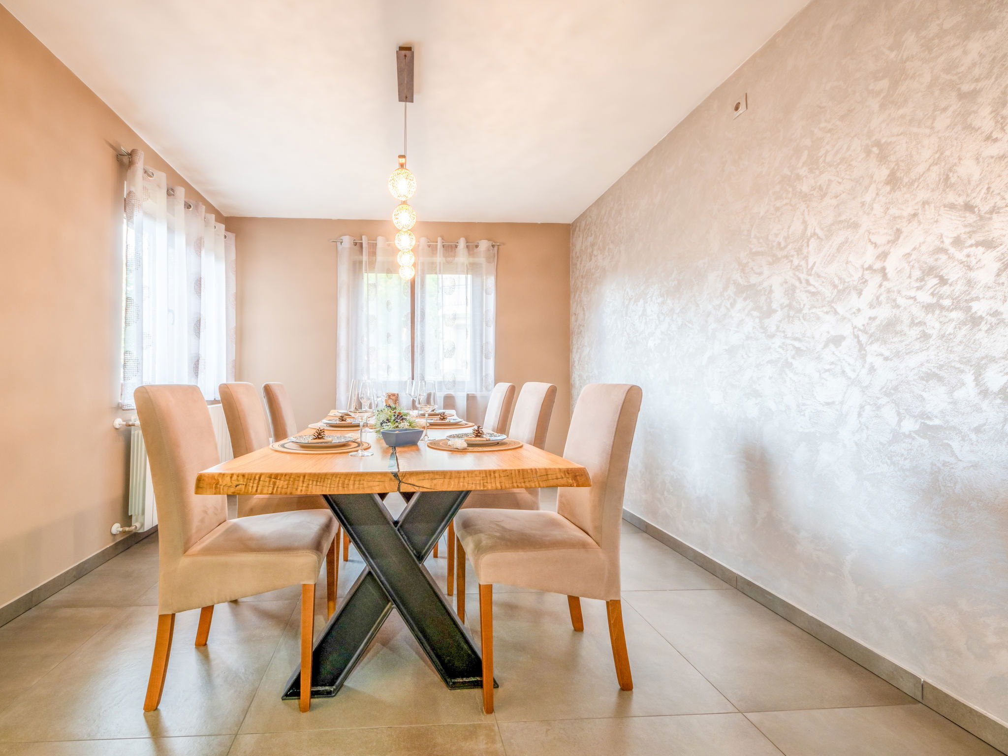 Kastav 6 km from Opatija: Comfortable single-family house "Campanero", 2 storeys, built in 2023. In the hamlet Kudeji 2.4 km from the centre of Viškovo, 3.7 km from the centre of Kastav, 9 km from the centre of Opatija, in a sunny, elevated position, 8 km from the sea, 8 km from the beach, in a cul-de-sac. Private: property 900 m2 (fenced), garden with lawn 300 m2, swimming pool angular (6 x 6 m, depth 140 cm, seasonal availability: 01.Jun. - 30.Sep.). WC in the pool area, outdoor shower, terrace, garden furniture. In the house: internet access. Parking at the house on the premises. Supermarket 2.4 km, shopping centre 2.4 km, restaurant 1.8 km, bakery 2.4 km, café 2.4 km, bus stop 160 m, pebble beach 8 km (small), outdoor swimming pool 10 km, indoor swimming pool 10 km, public bathing area 10 km, concrete beach 8 km. Nearby attractions: Kuća halubajskega zvončara UNESCO 2 km. Groups of teenagers on request only. Part of the house is closed and unoccupied. The owner runs dry dock marine services. By groups of young people double deposit is requested on arrival.