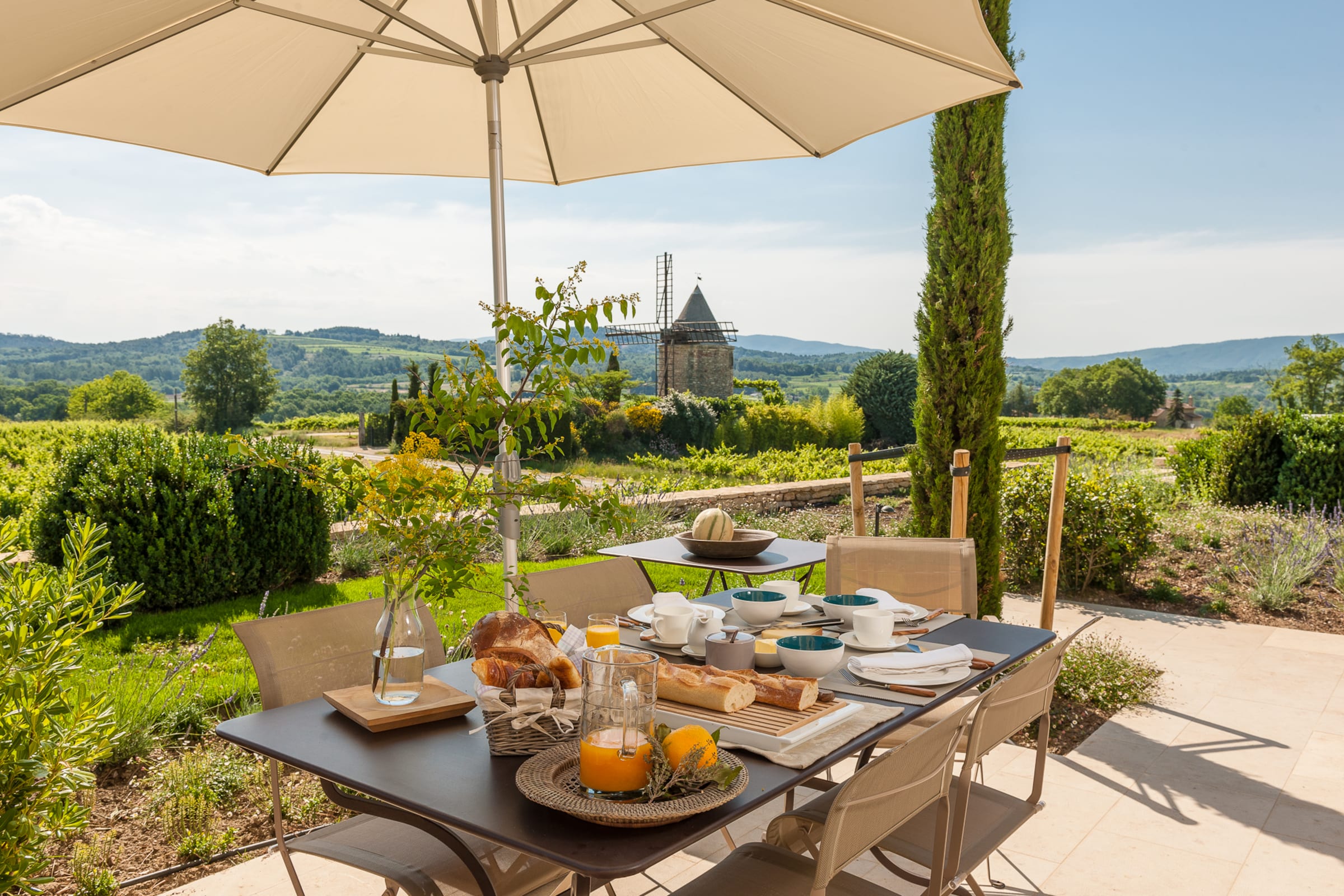 Magnificent panoramic view of the Luberon from the large terraces and the swimming pool