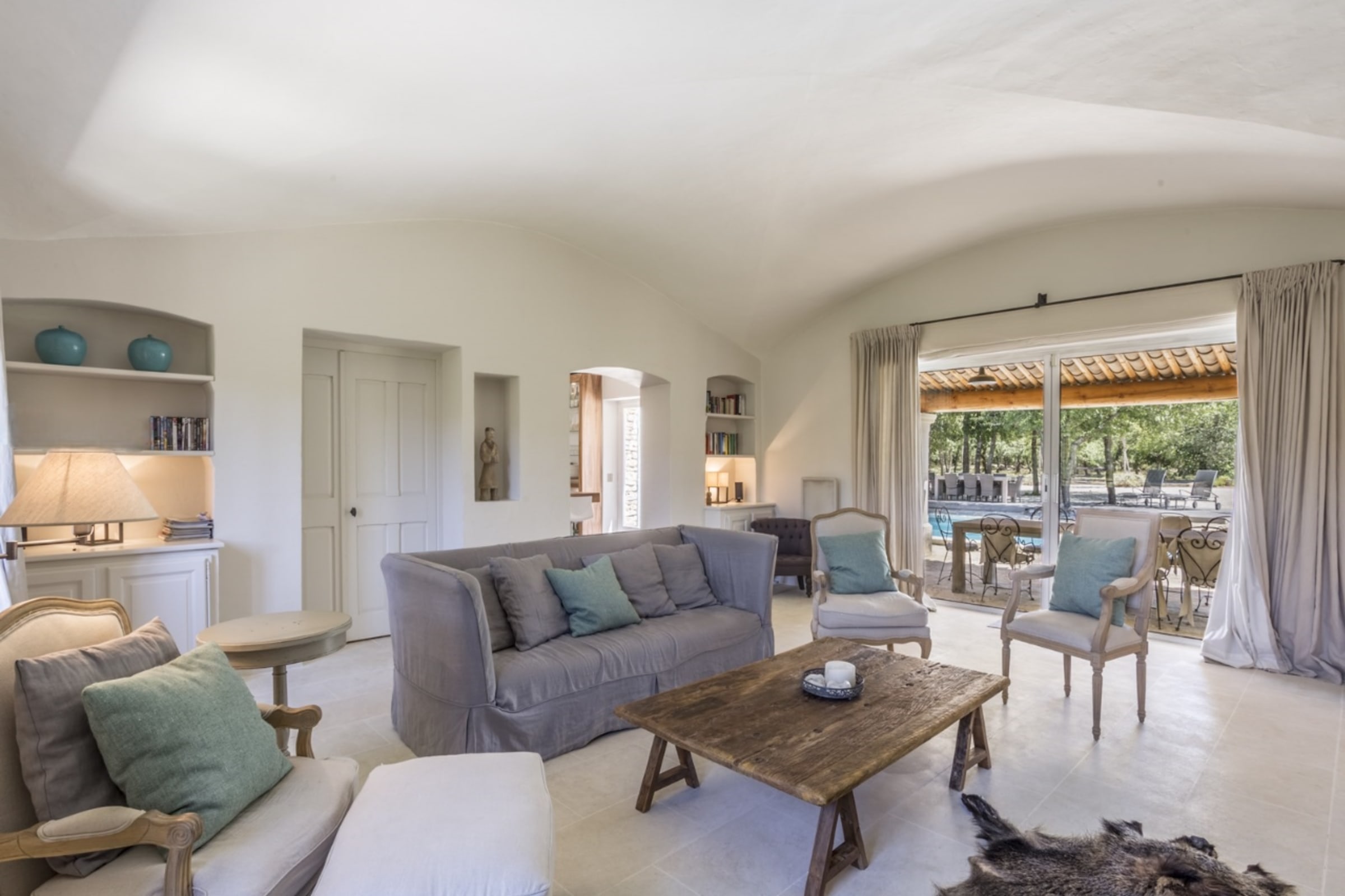. Summer lounge with view over the garden and the pool.
