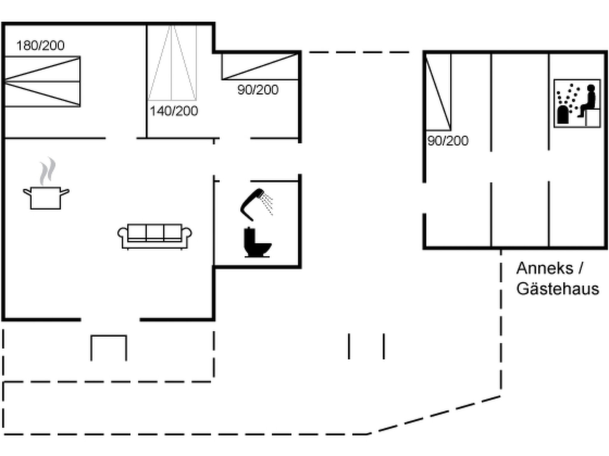 Single-family house, built in 1976. 200 m from the sea. Private: property 800 m2, well-kept garden. Barbecue (swing). In the house: sauna, washing machine. Parking at the house. Grocery 4 km. Golf course 10 km. The owner does not accept any youth groups.