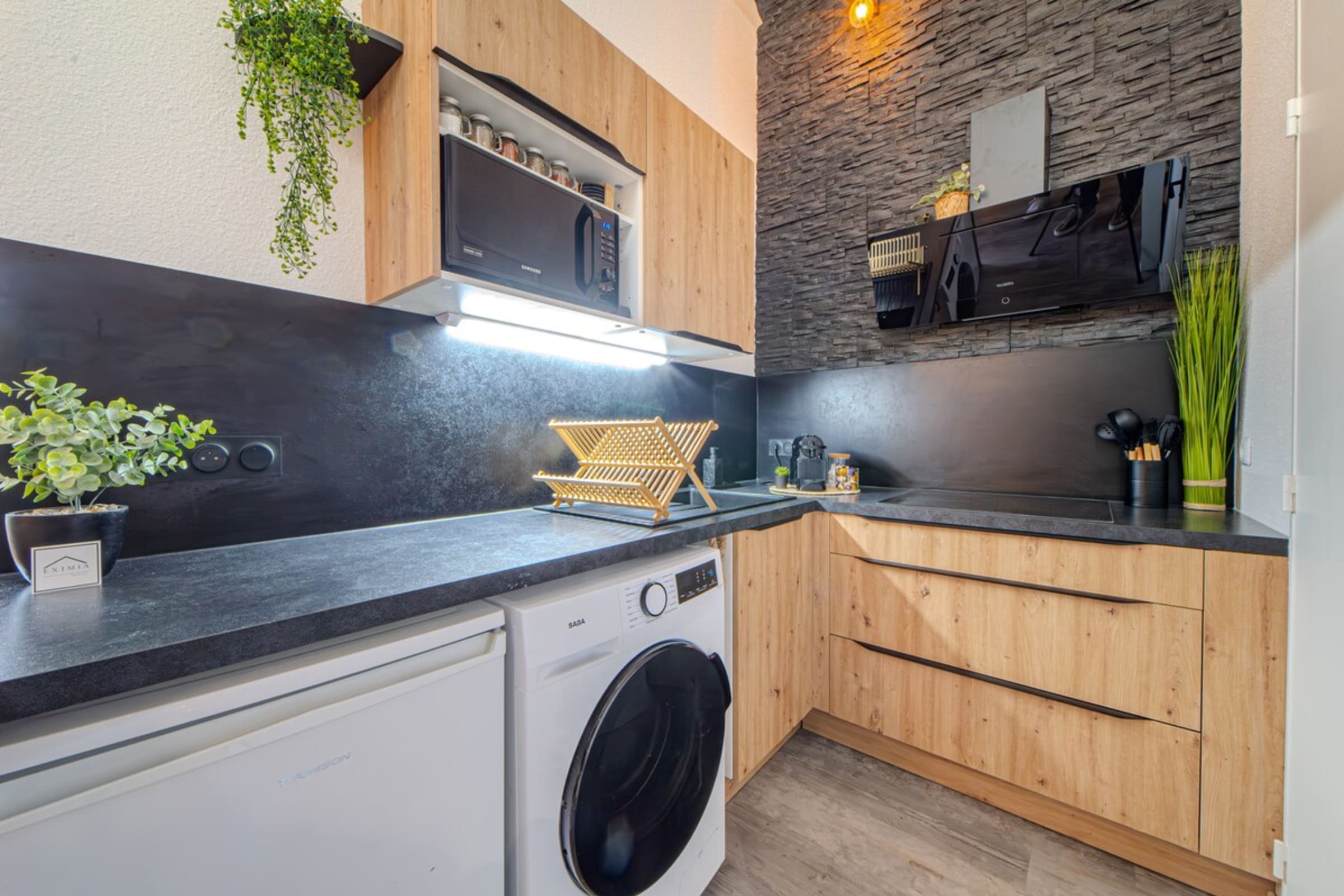 Upon entering, you'll discover a bright living space with a fully equipped kitchen, perfect for preparing your meals with ease. The living room opens onto a private terrace, where a plancha grill is available for you to enjoy delicious moments.