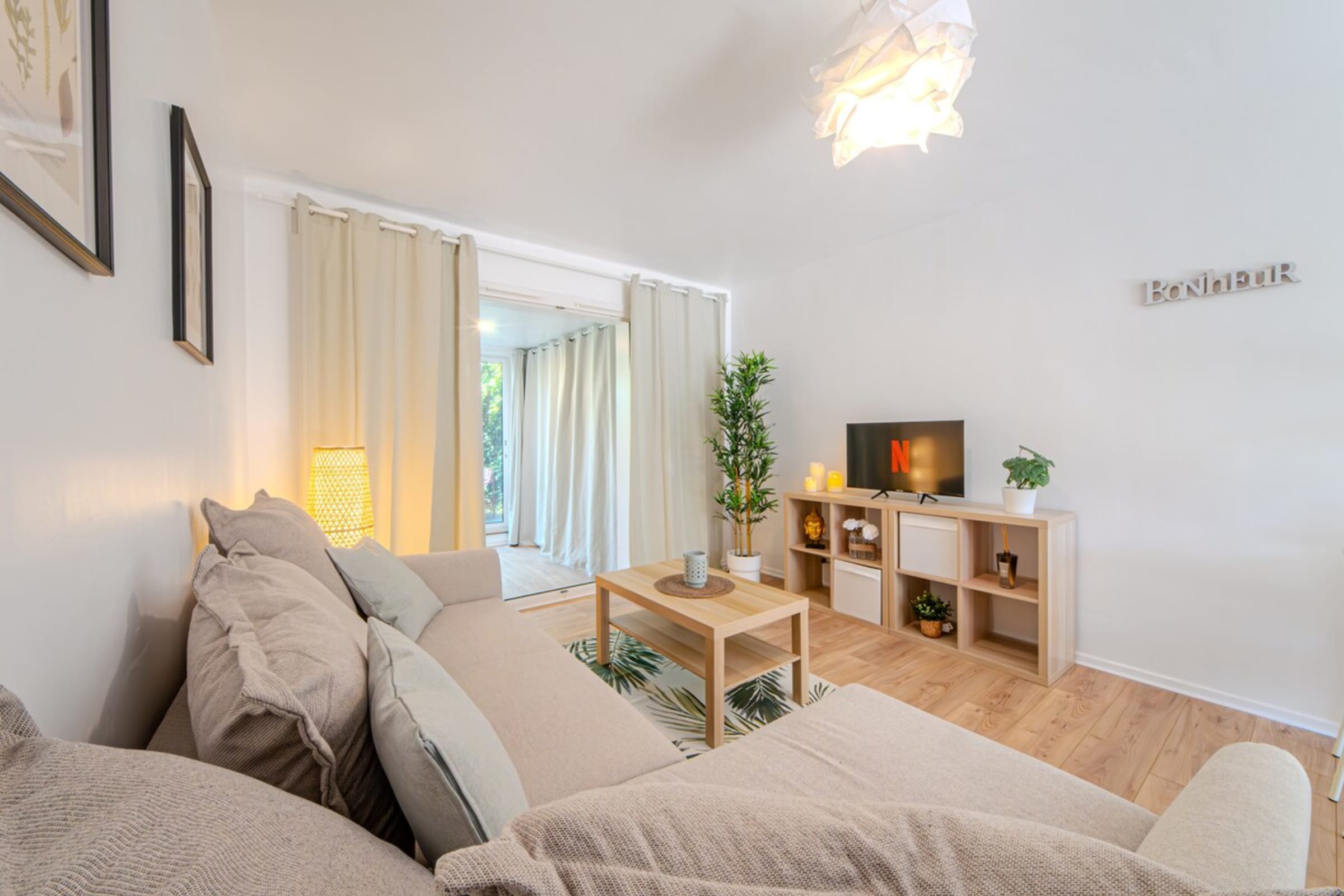 Located outside the historic center, the apartment offers a peaceful, green setting while remaining perfectly connected.