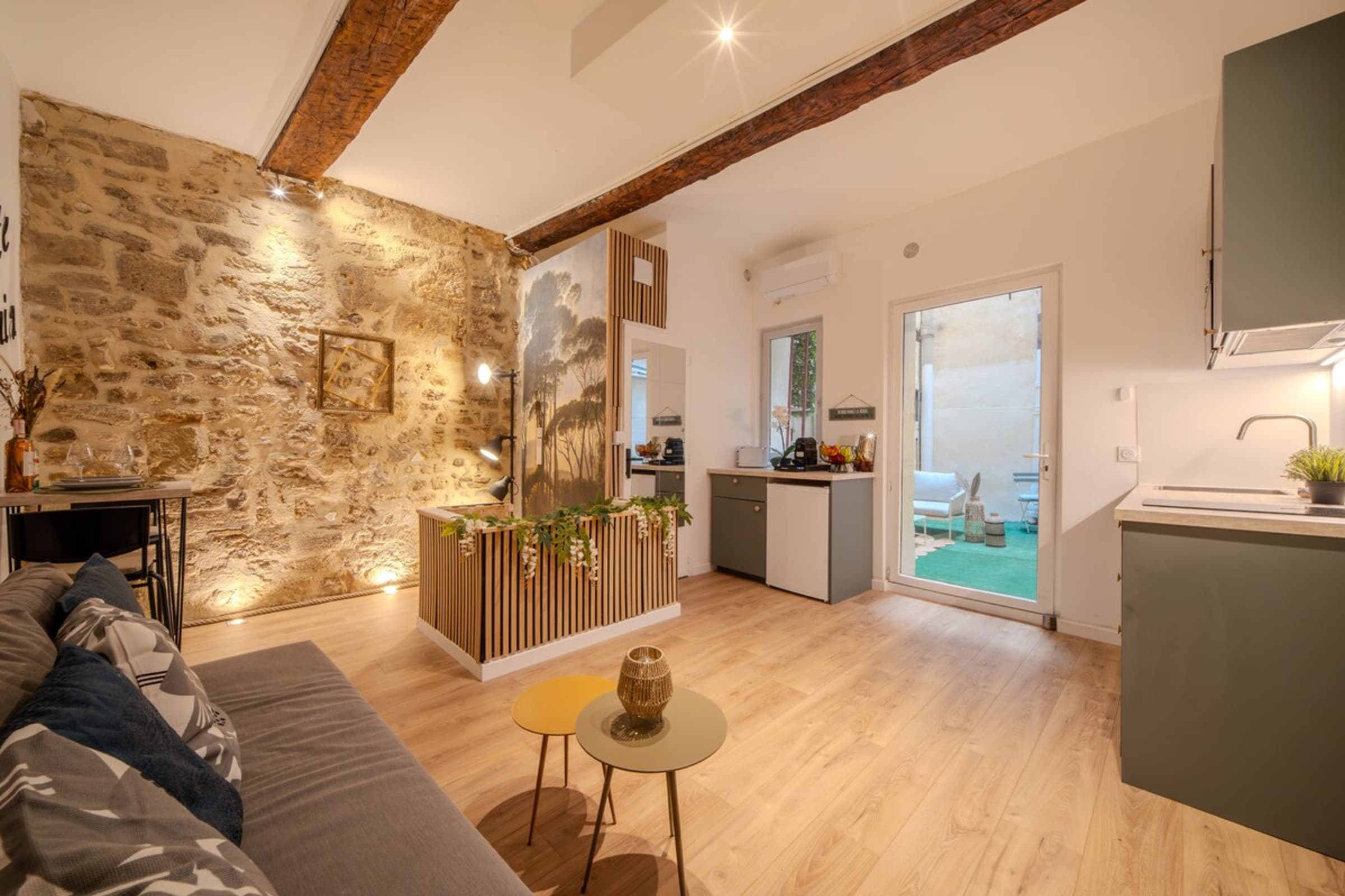 Nestled in the historic Ecusson district, this 40 m² suite elegantly blends period stone with contemporary comfort for an intimate, warm, and unique experience.