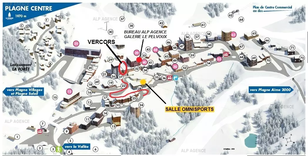 LE VERCORS: small 2-story residence located in the heart of the resort and at the foot of the slopes, directly connected to the shopping mall.